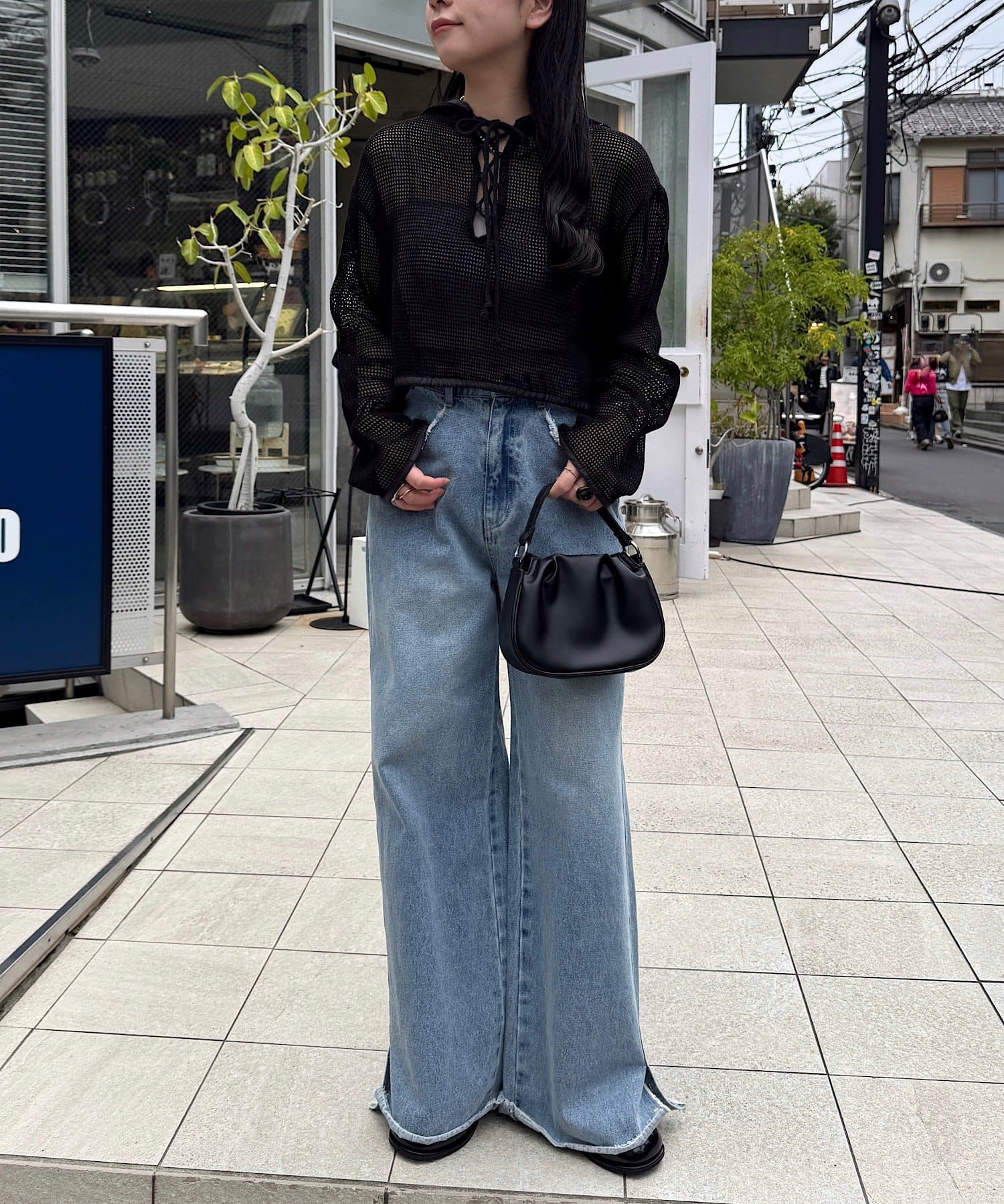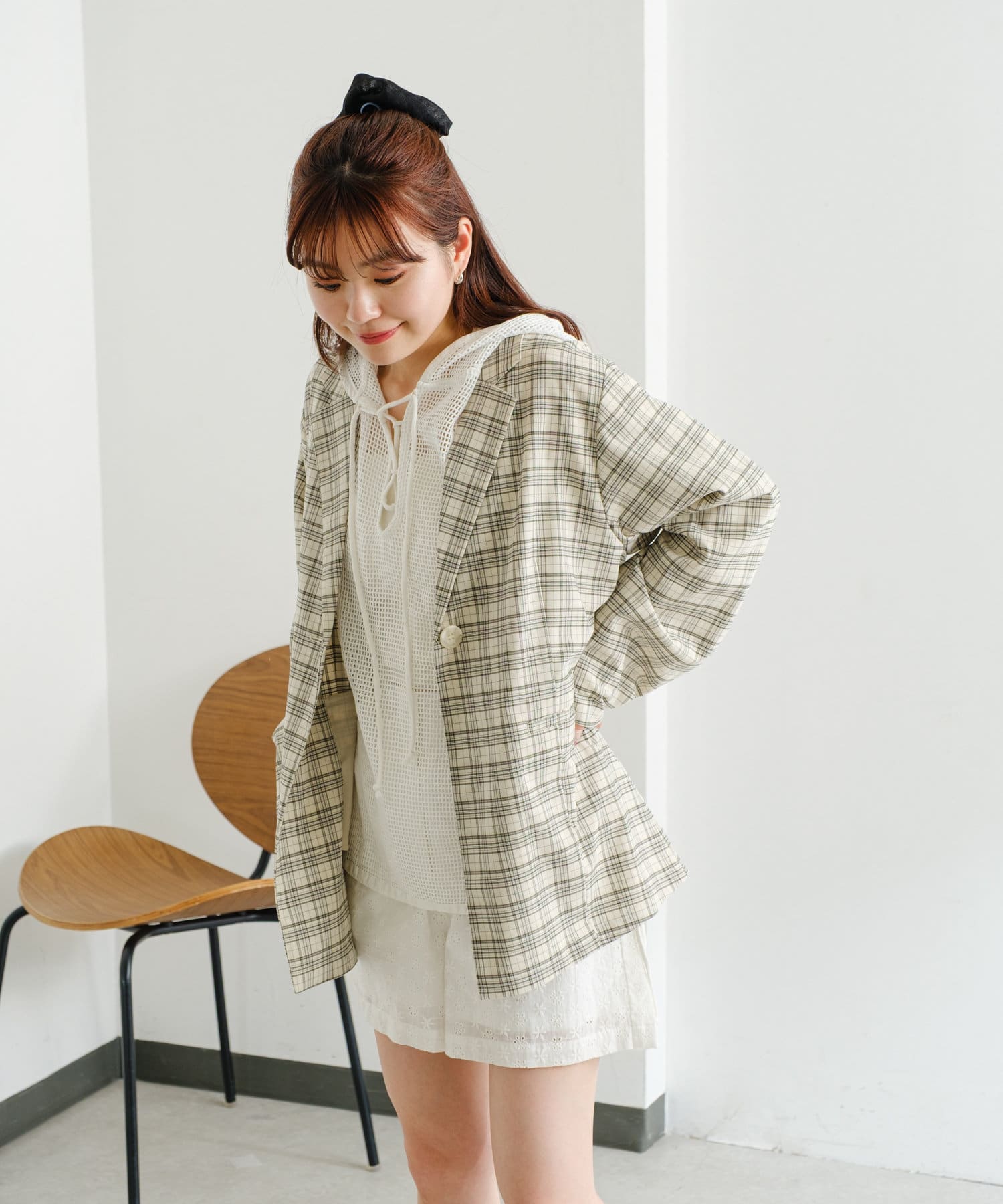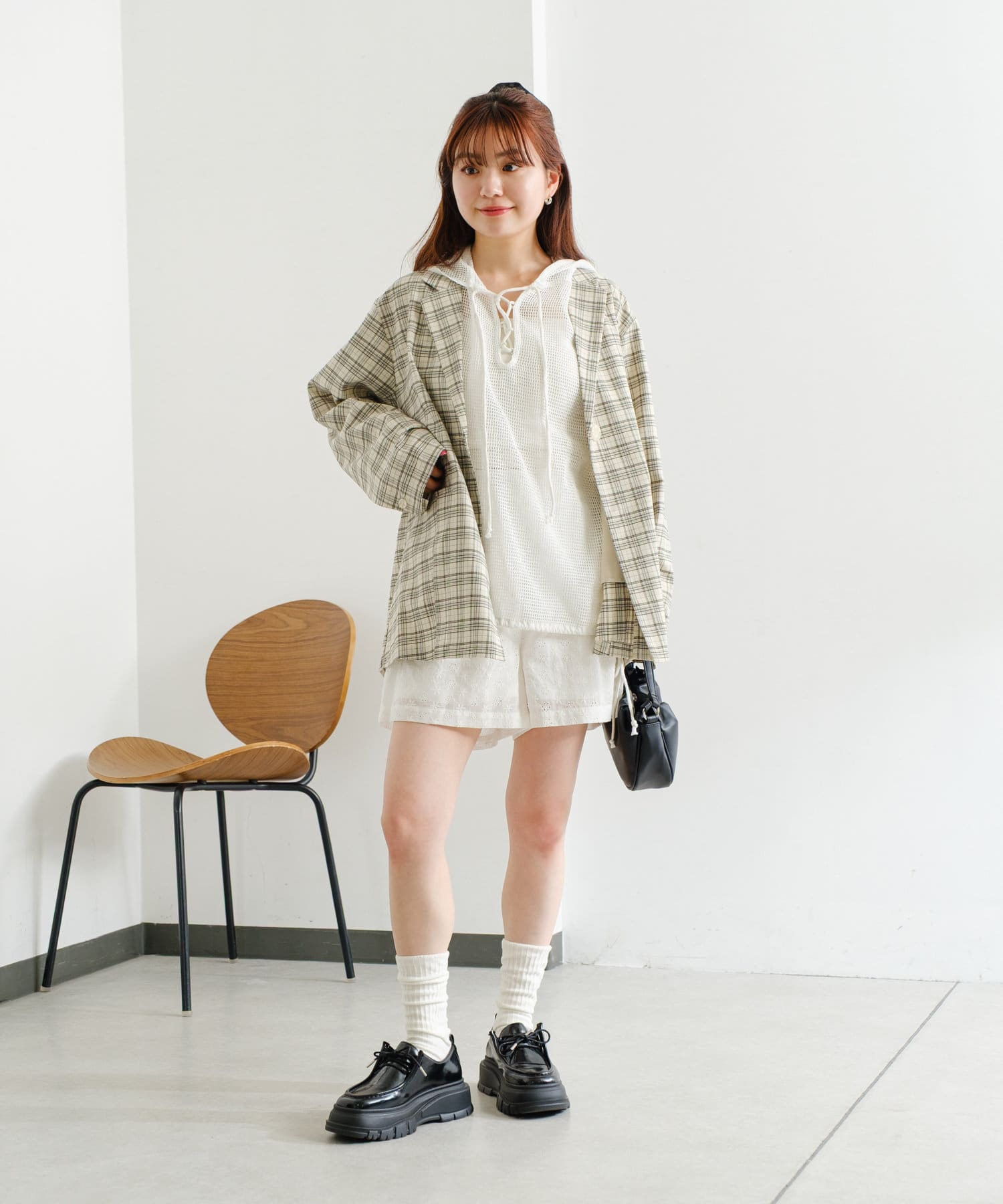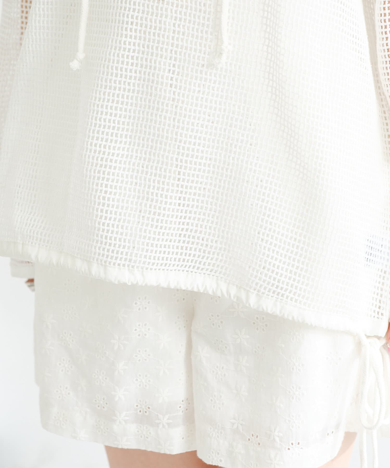 首元の紐を結んだり、垂らしたりして雰囲気を変えられるのも嬉しいポイント。