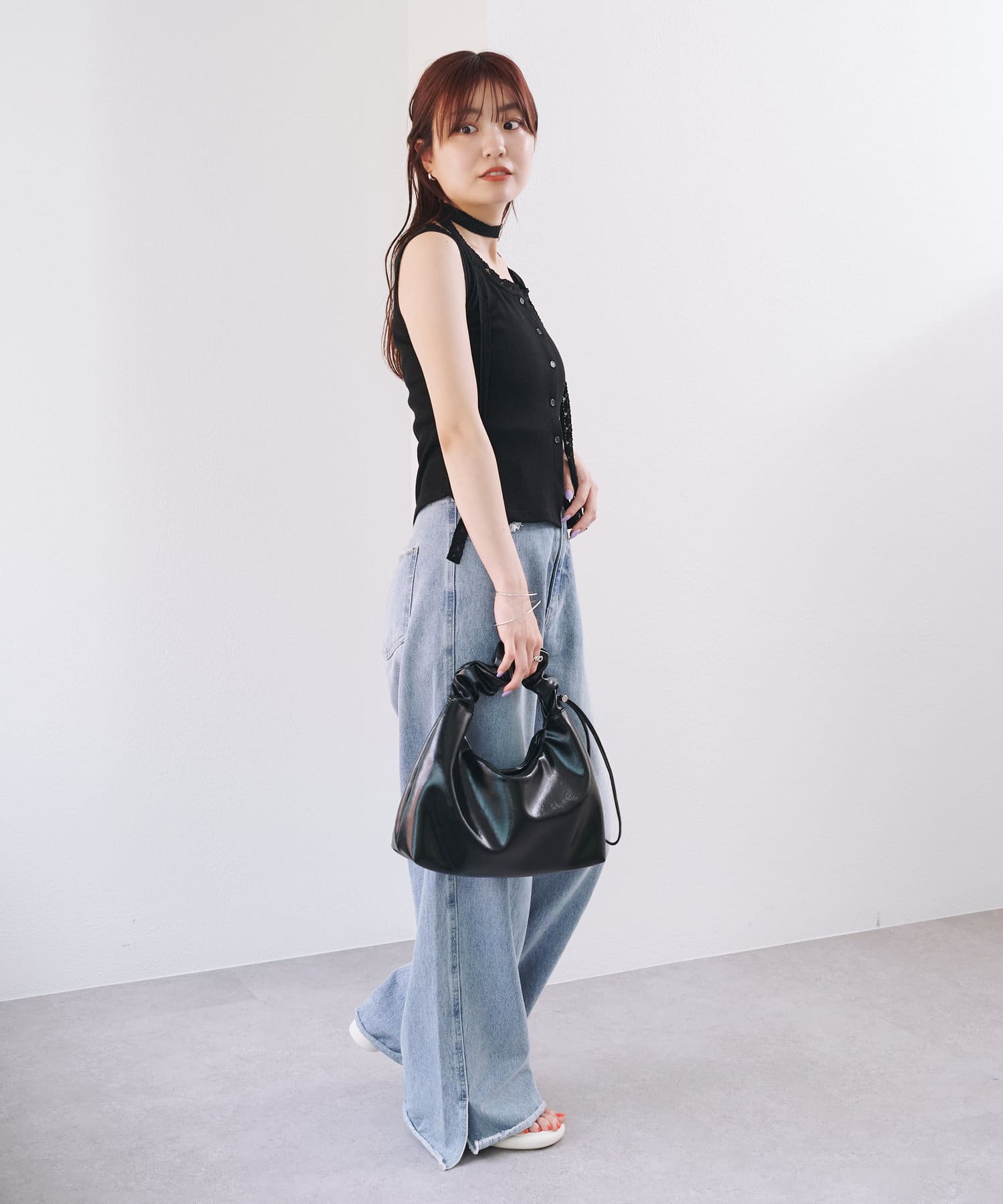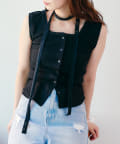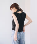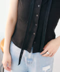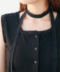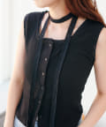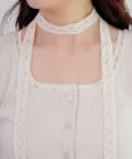 首元のレースタイは、巻き方次第で印象チェンジが楽しめます。