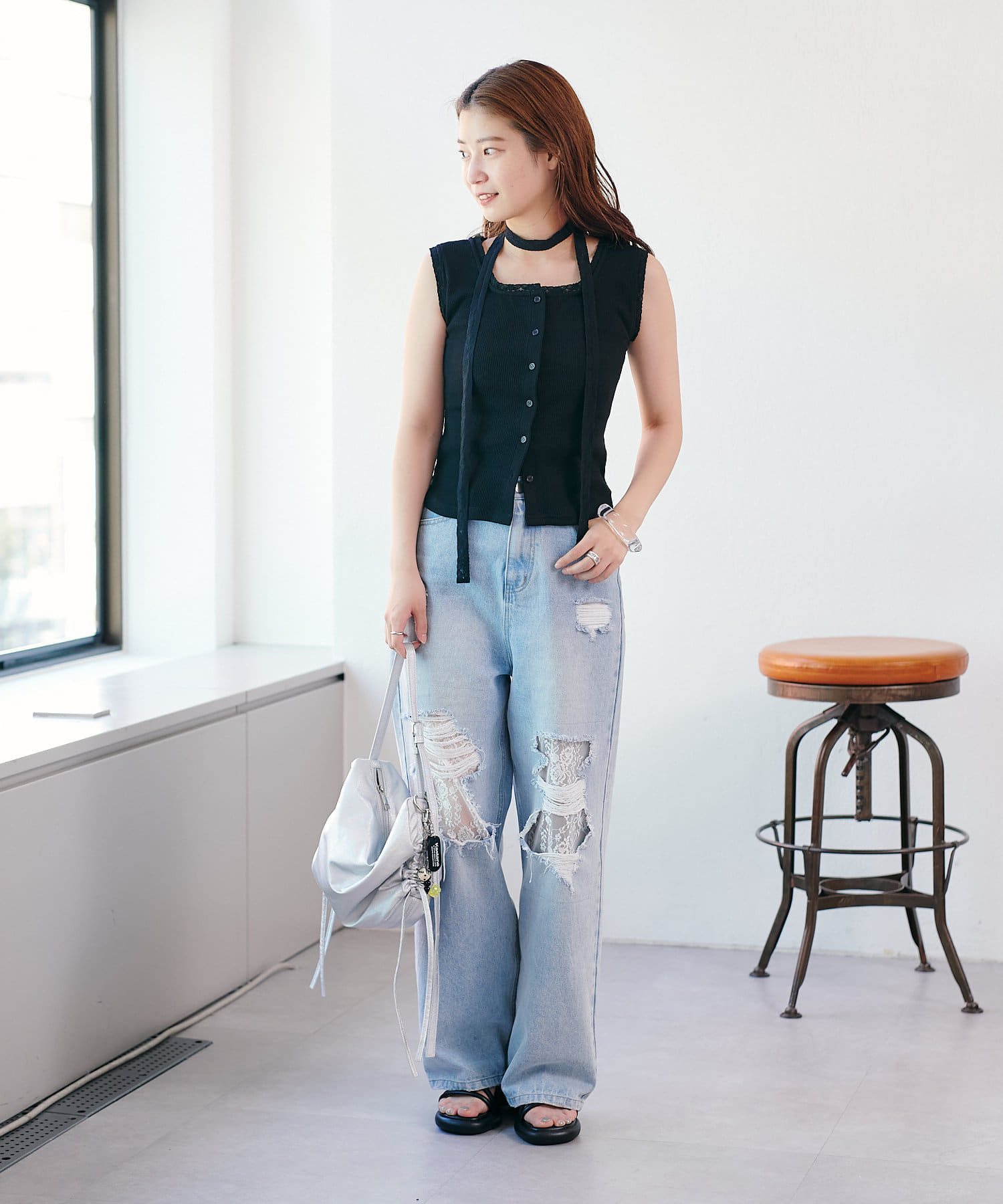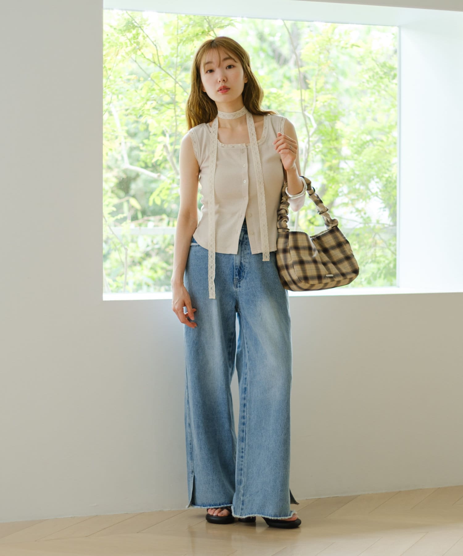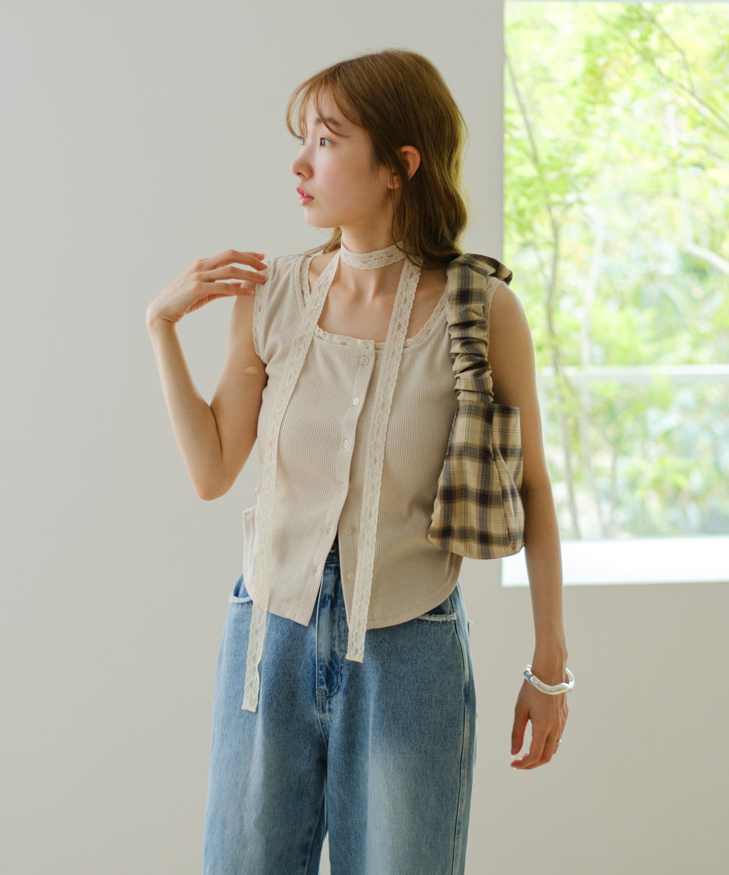 やわらかくフィットするリブ素材と、繊細なレース使いが絶妙なバランスで、大人の抜け感を演出します。