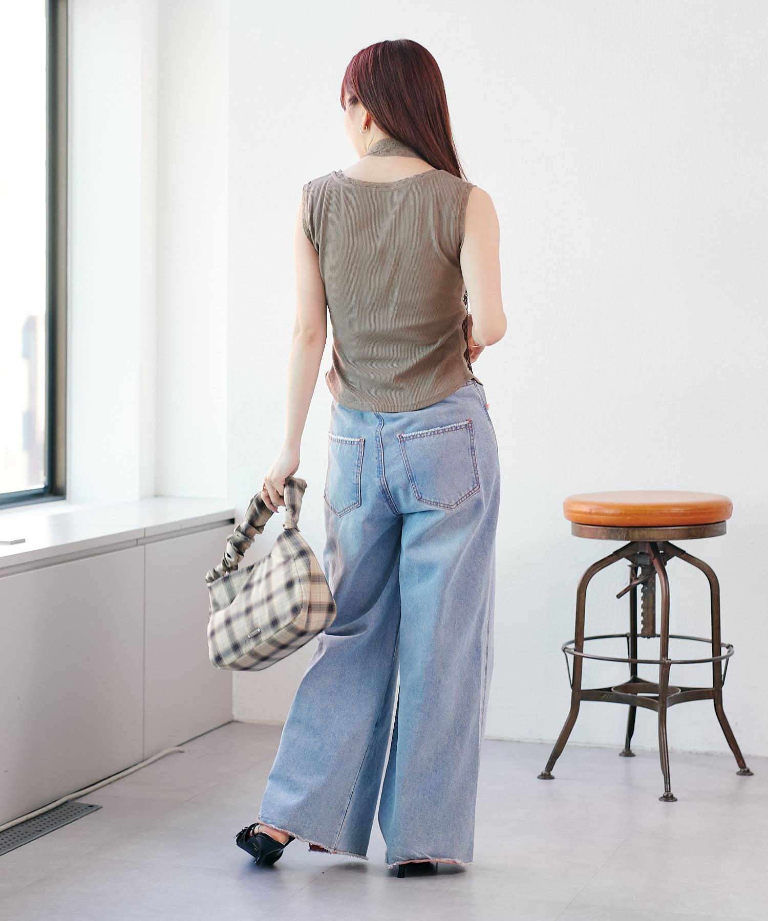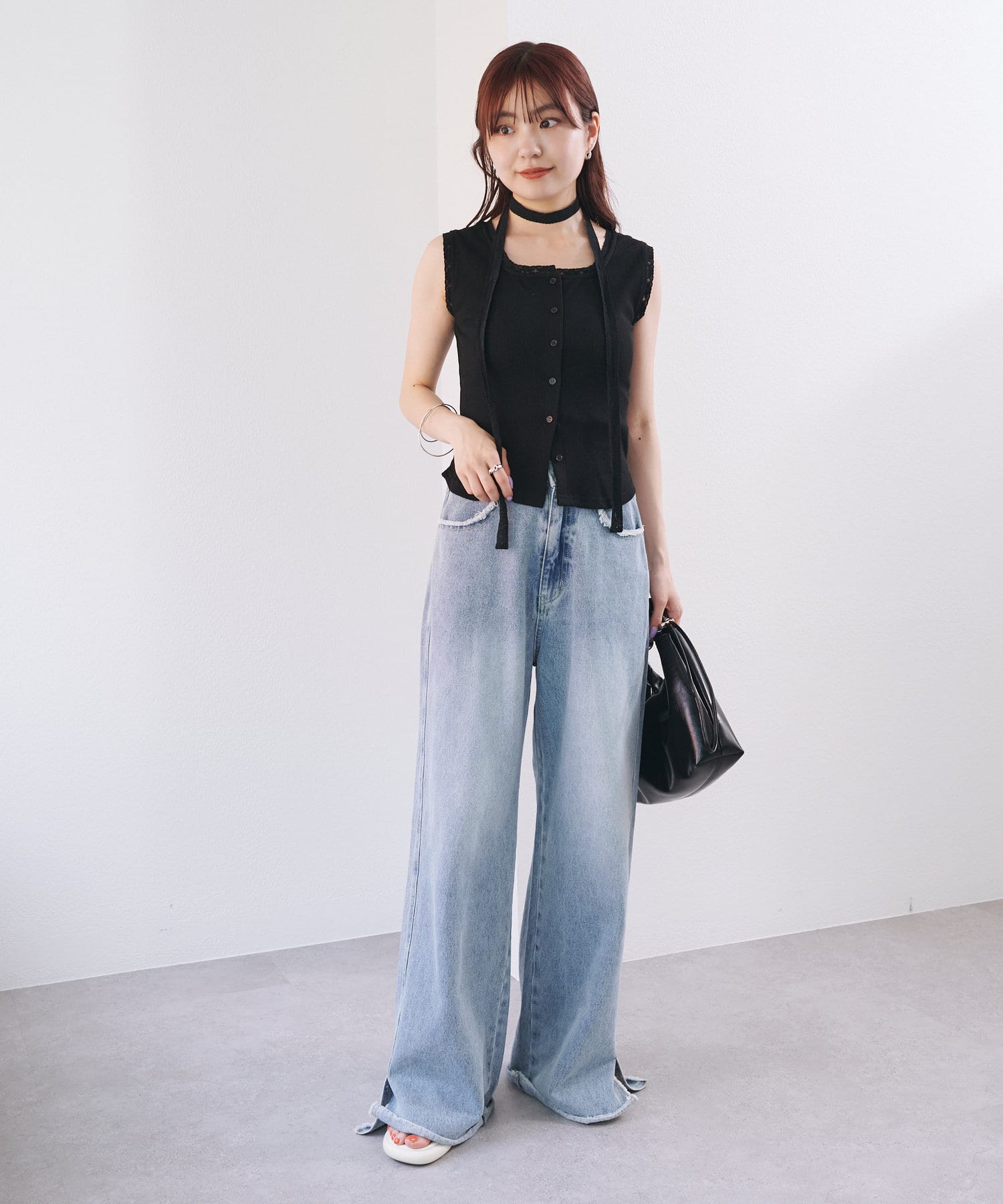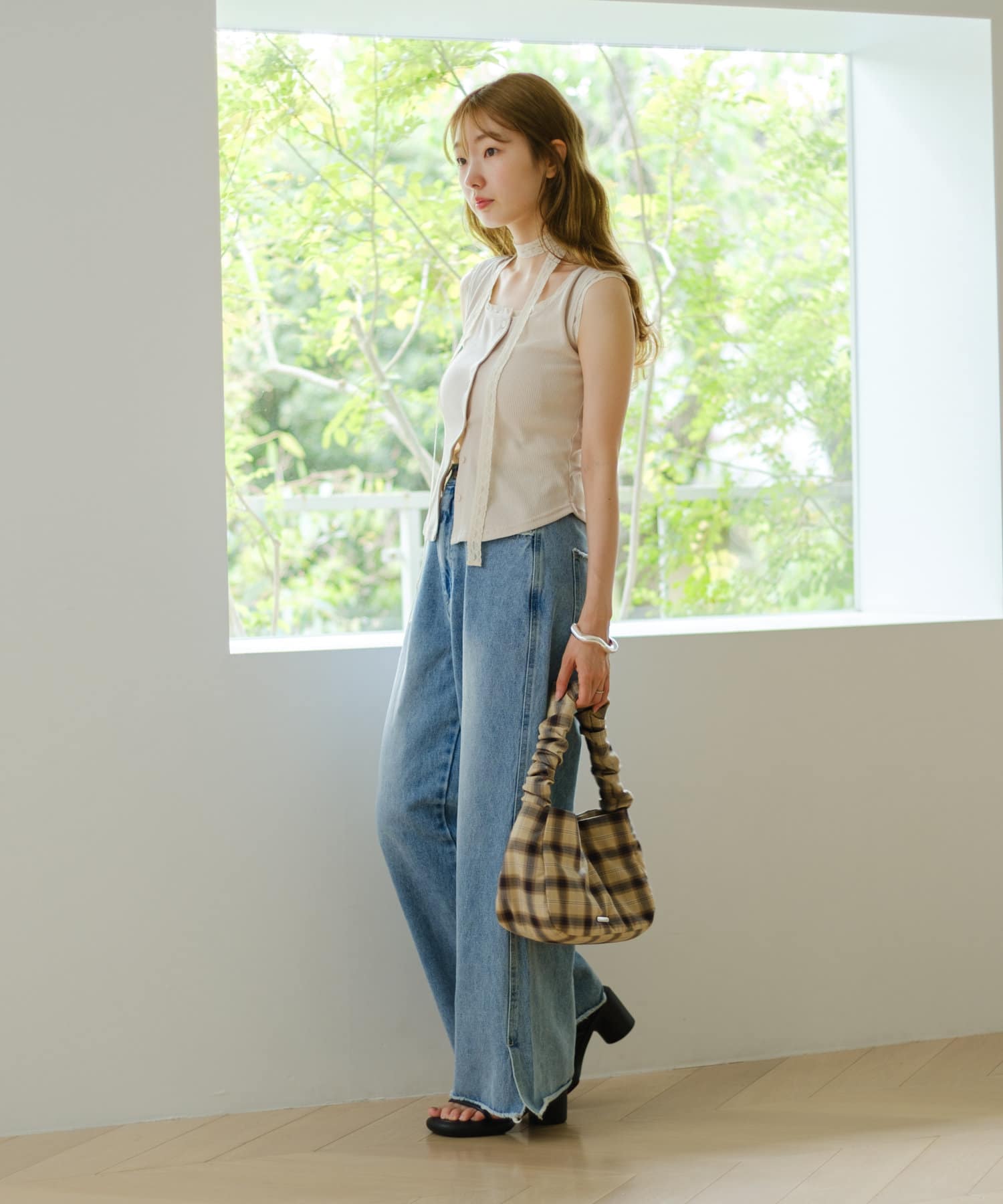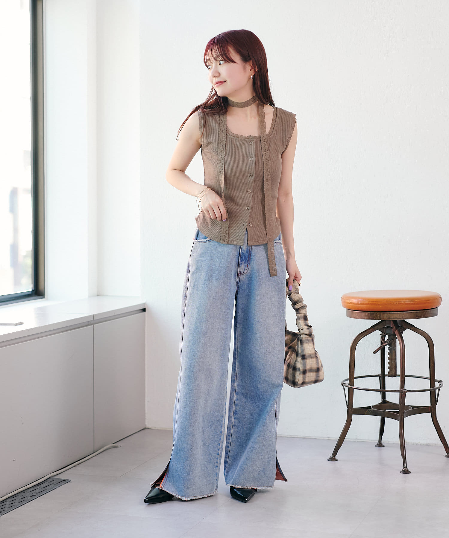 やわらかくフィットするリブ素材と、繊細なレース使いが絶妙なバランスで、大人の抜け感を演出します。