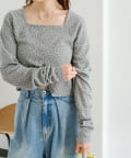スクエアネックがデコルテをきれいに見せて、女性らしい印象を引き立ててくれます。