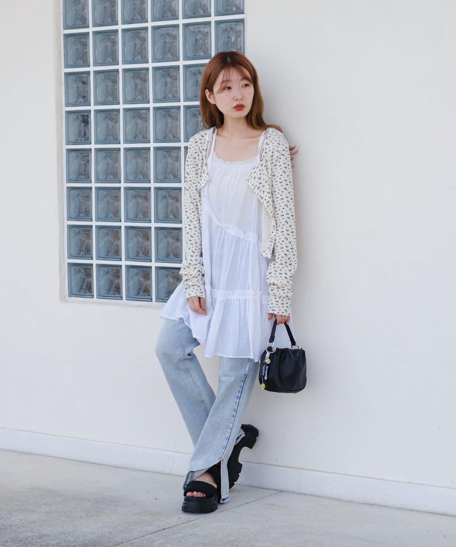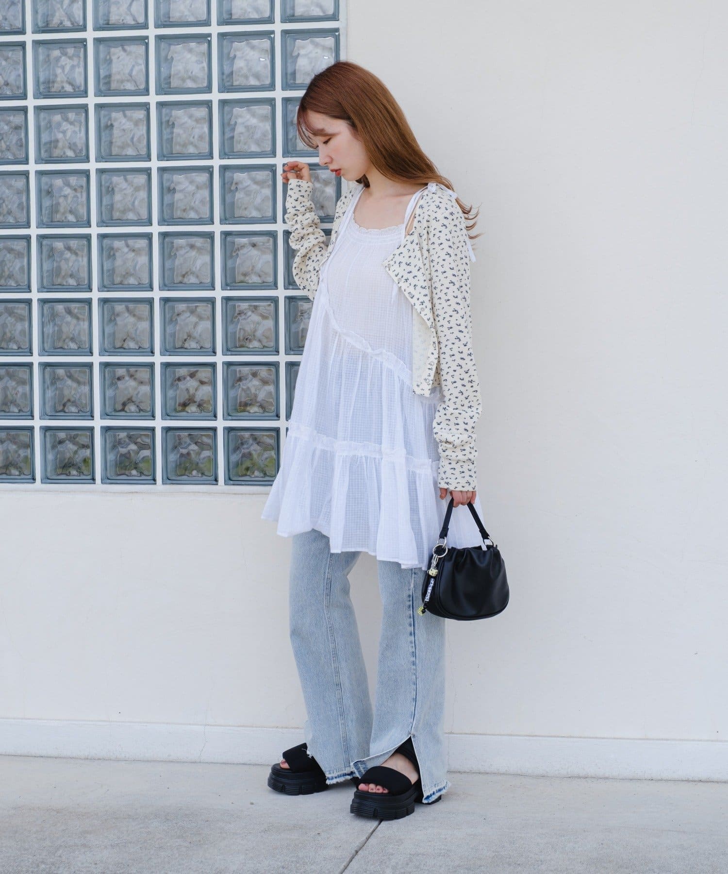 1枚で着ても、中にブラキャミ等を着て前を開けて着ても可愛いです。