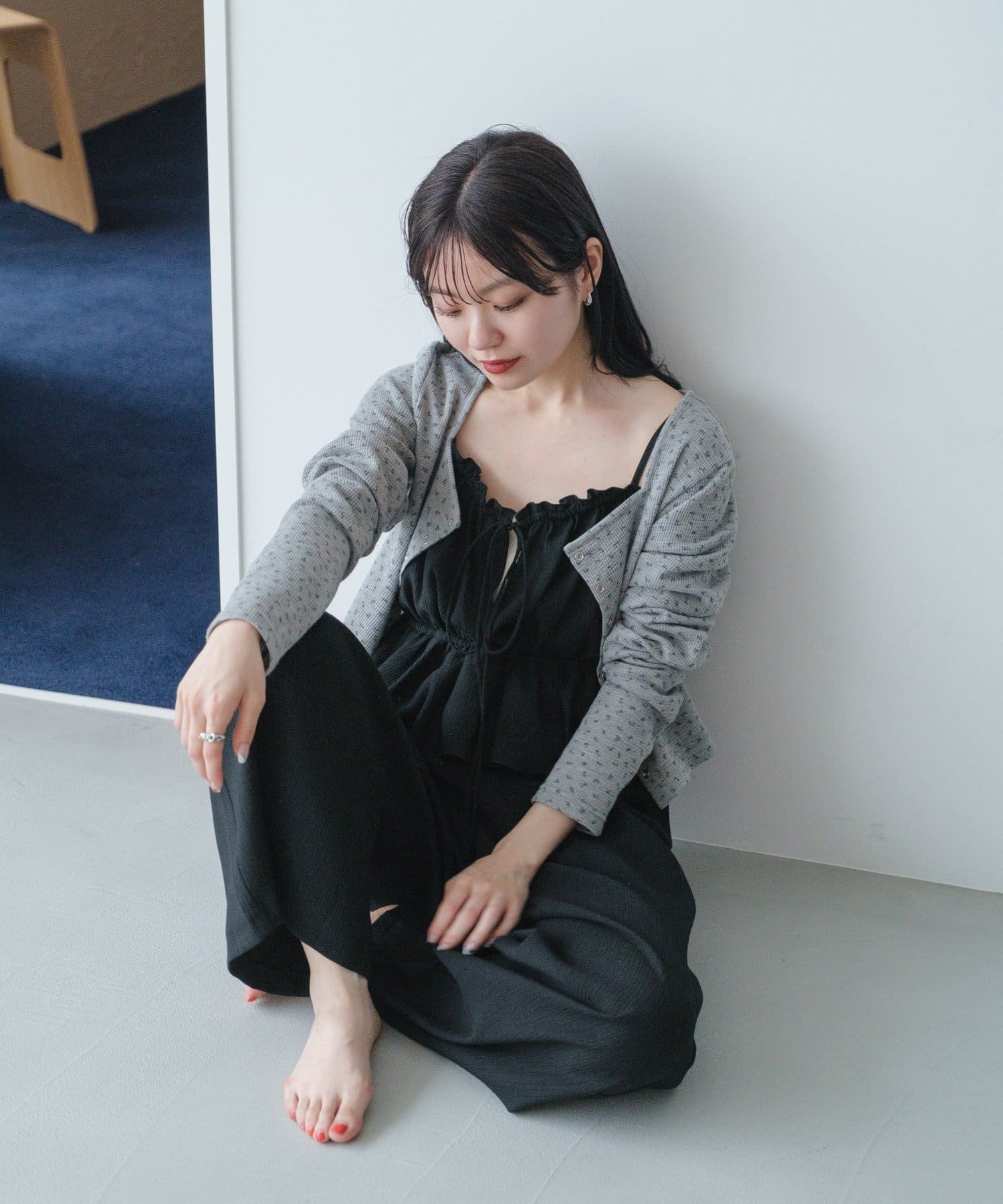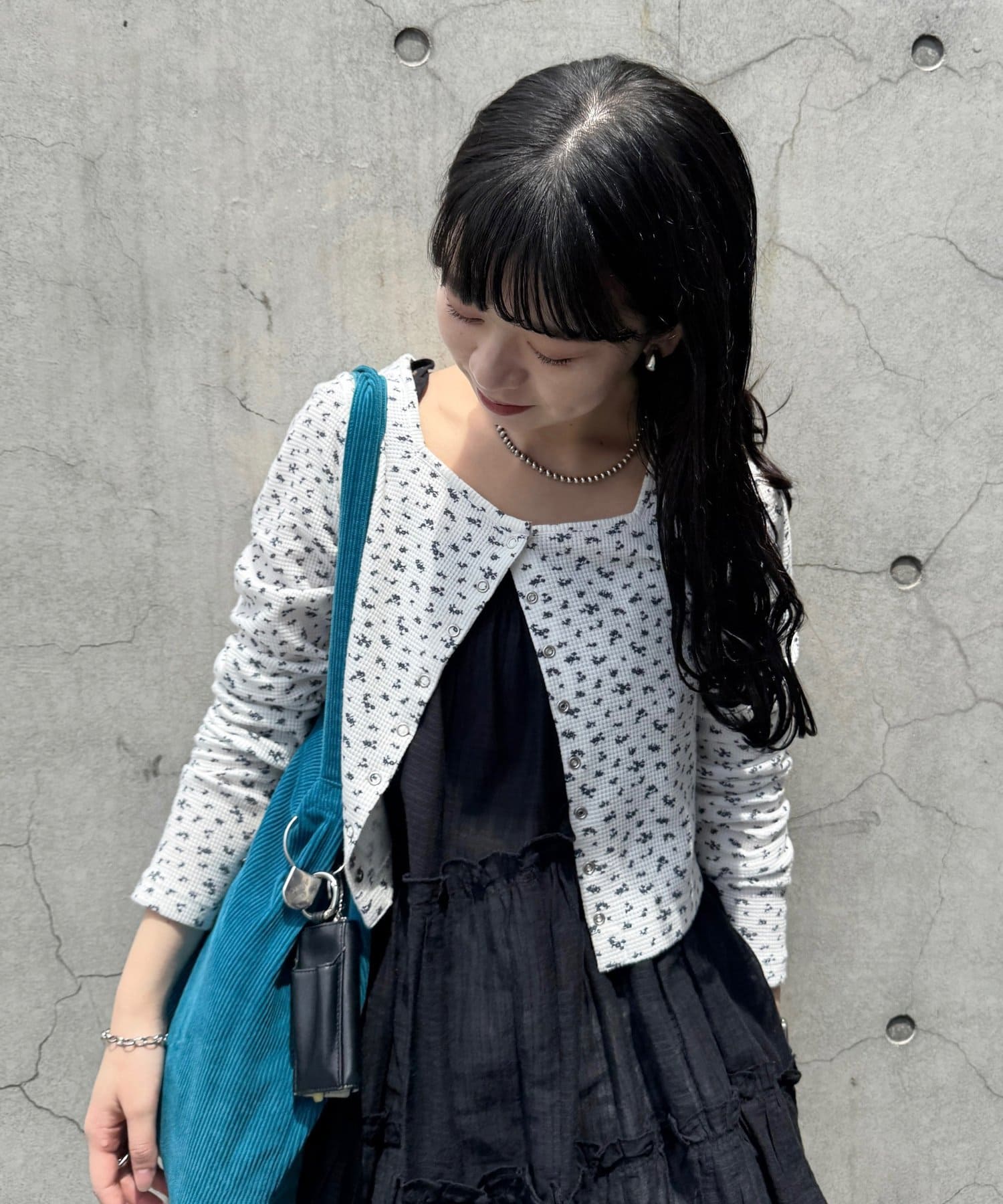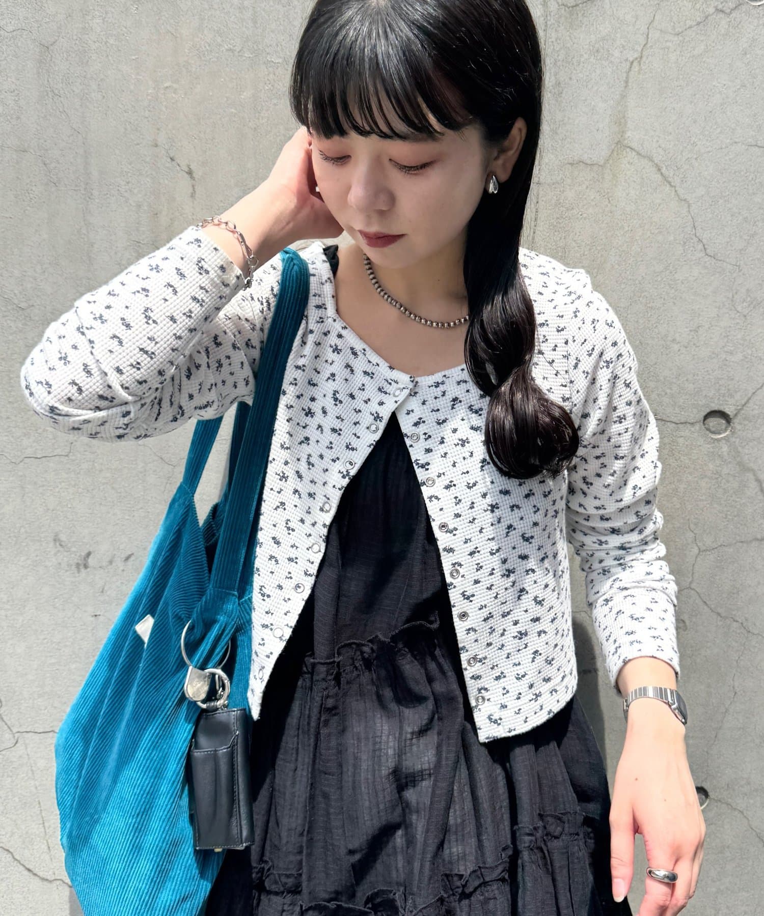コンパクトなシルエットは、フロントを閉じてトップス風にも着こなせる優れもの◎