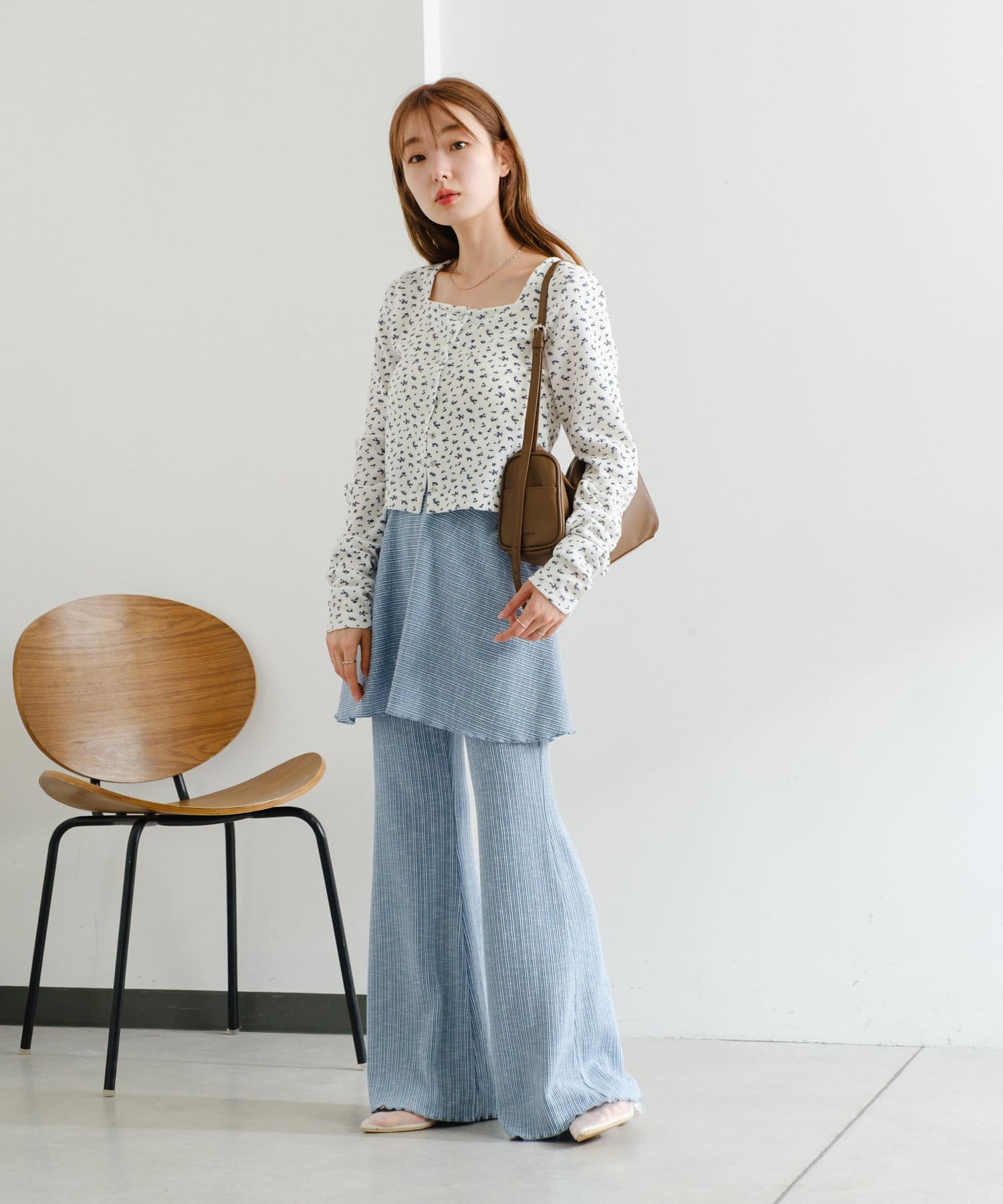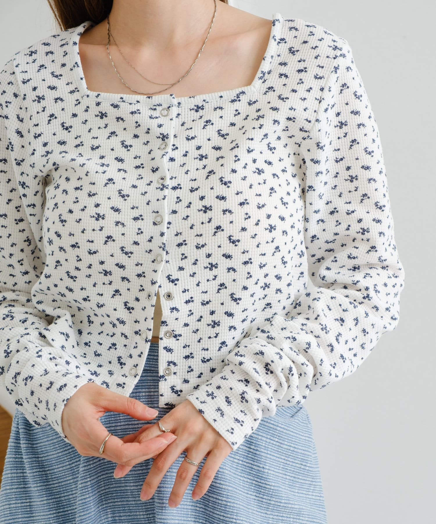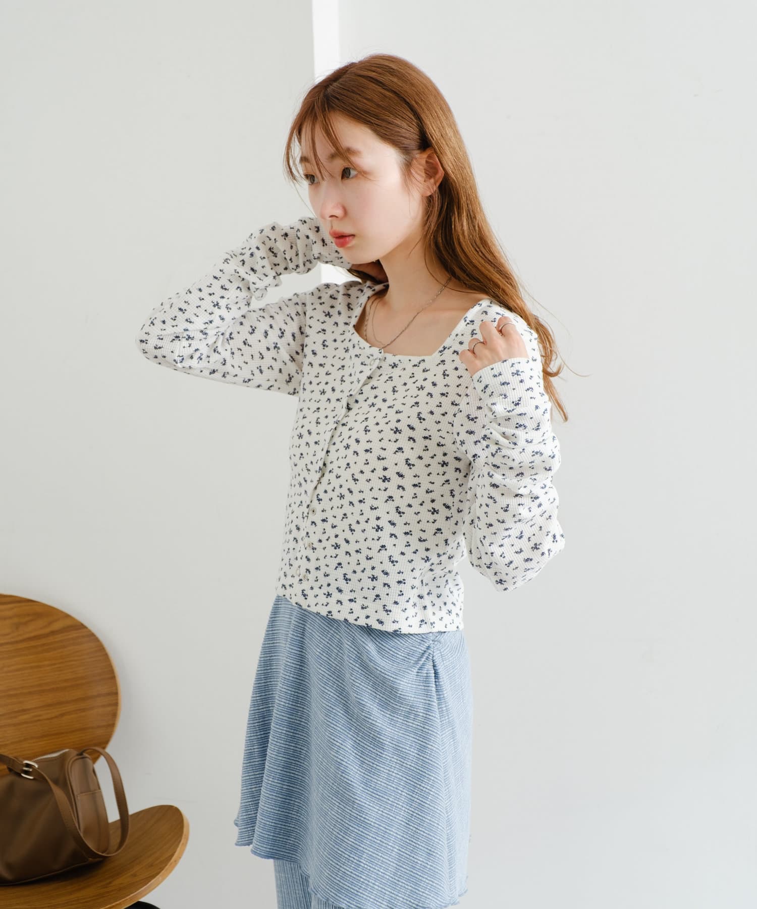 購入場所:パルクローゼットデコルテ部分が開いているので、骨格ストレートの私でも着膨れせずに綺麗に着用することができました。小花柄デザインもお気に入りです。