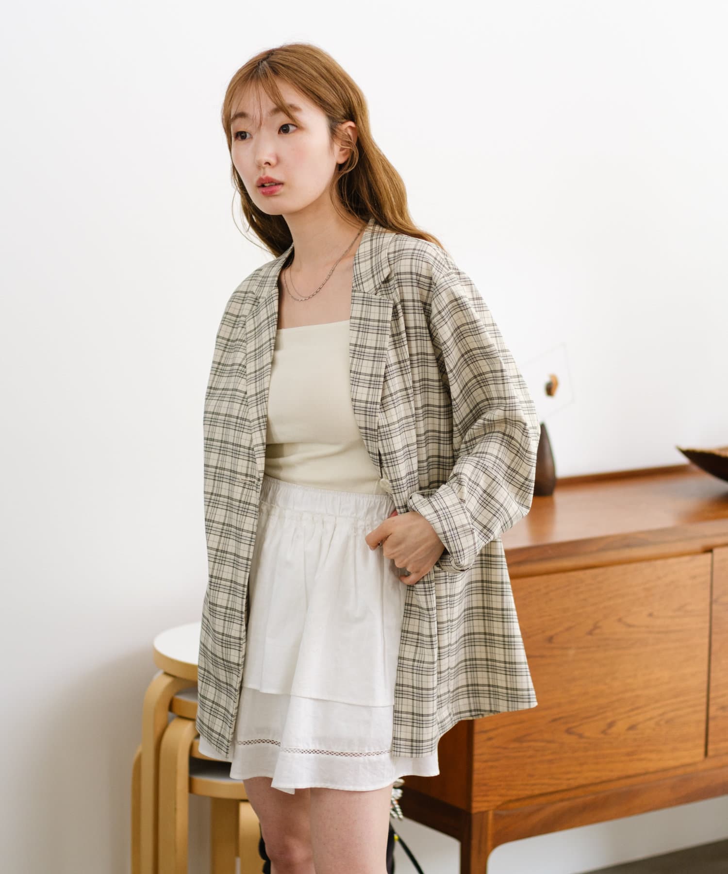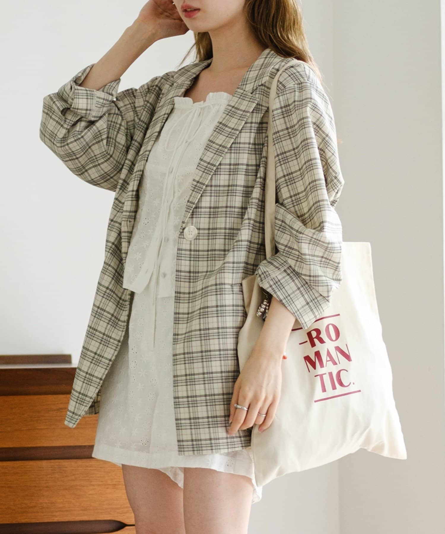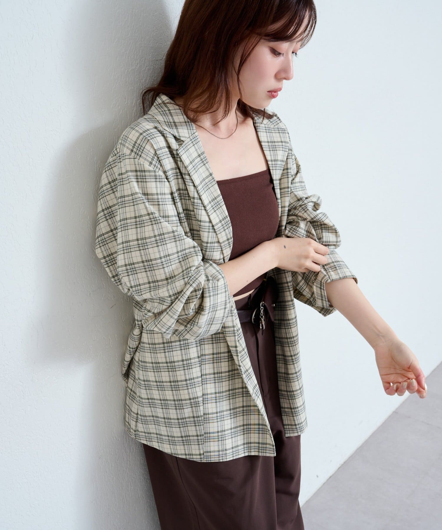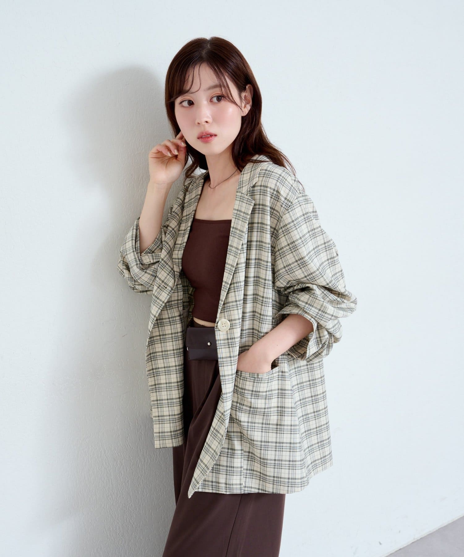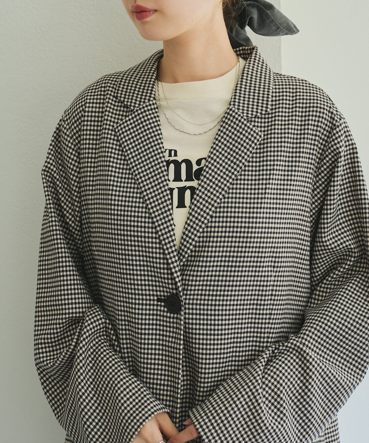 トレンド感のあるオーバーサイズのチェックジャケット。