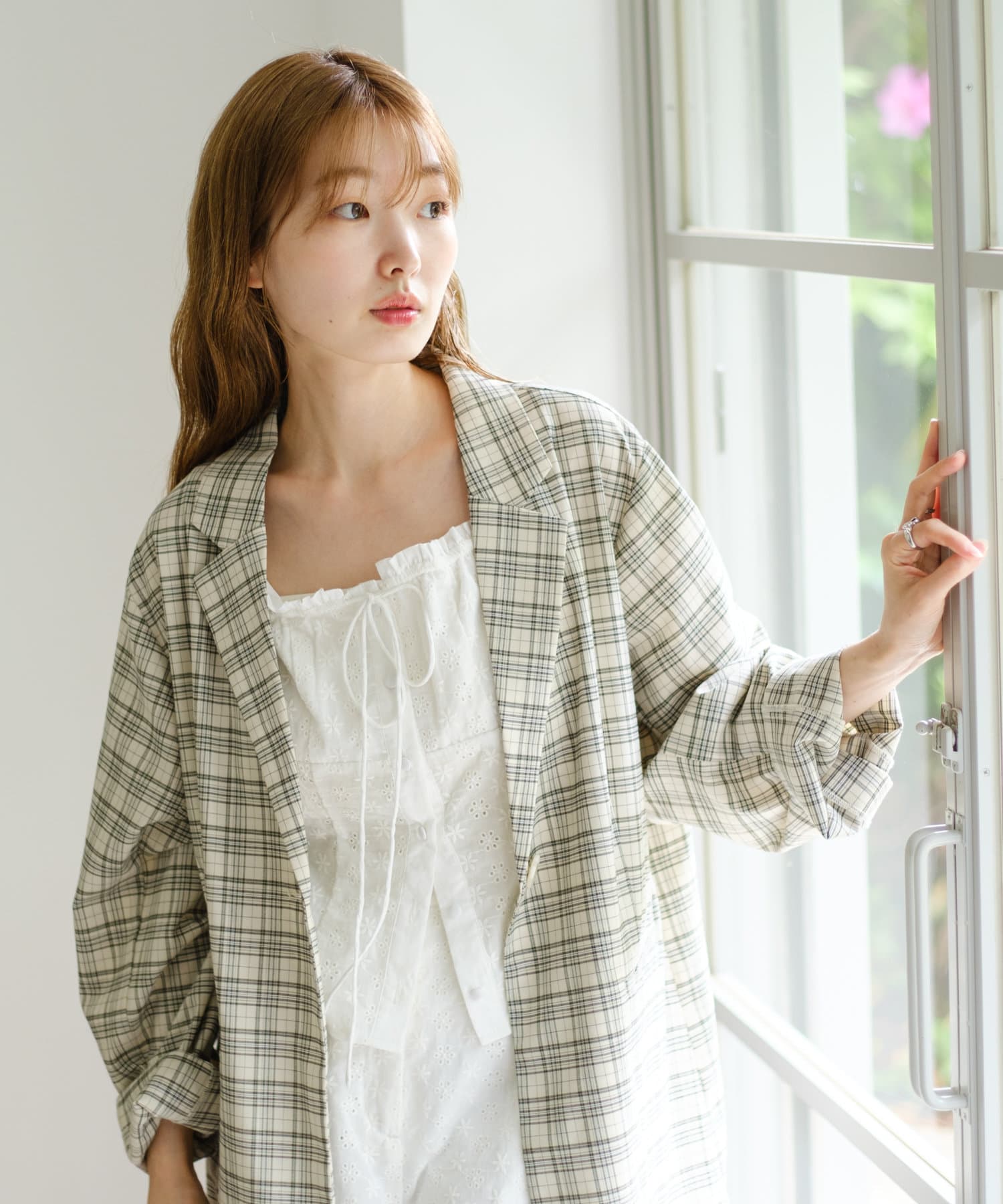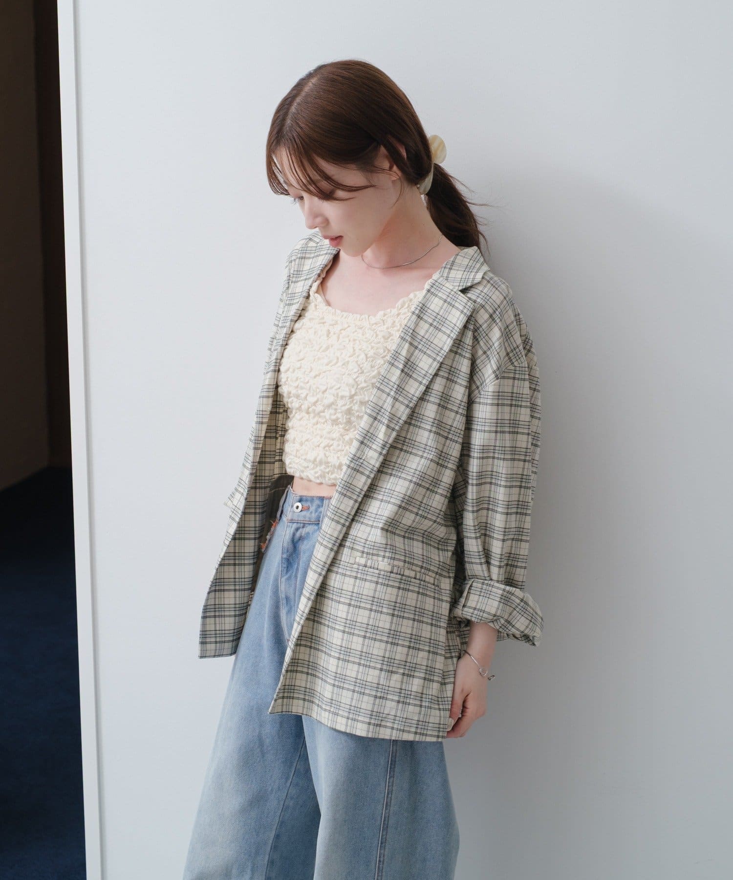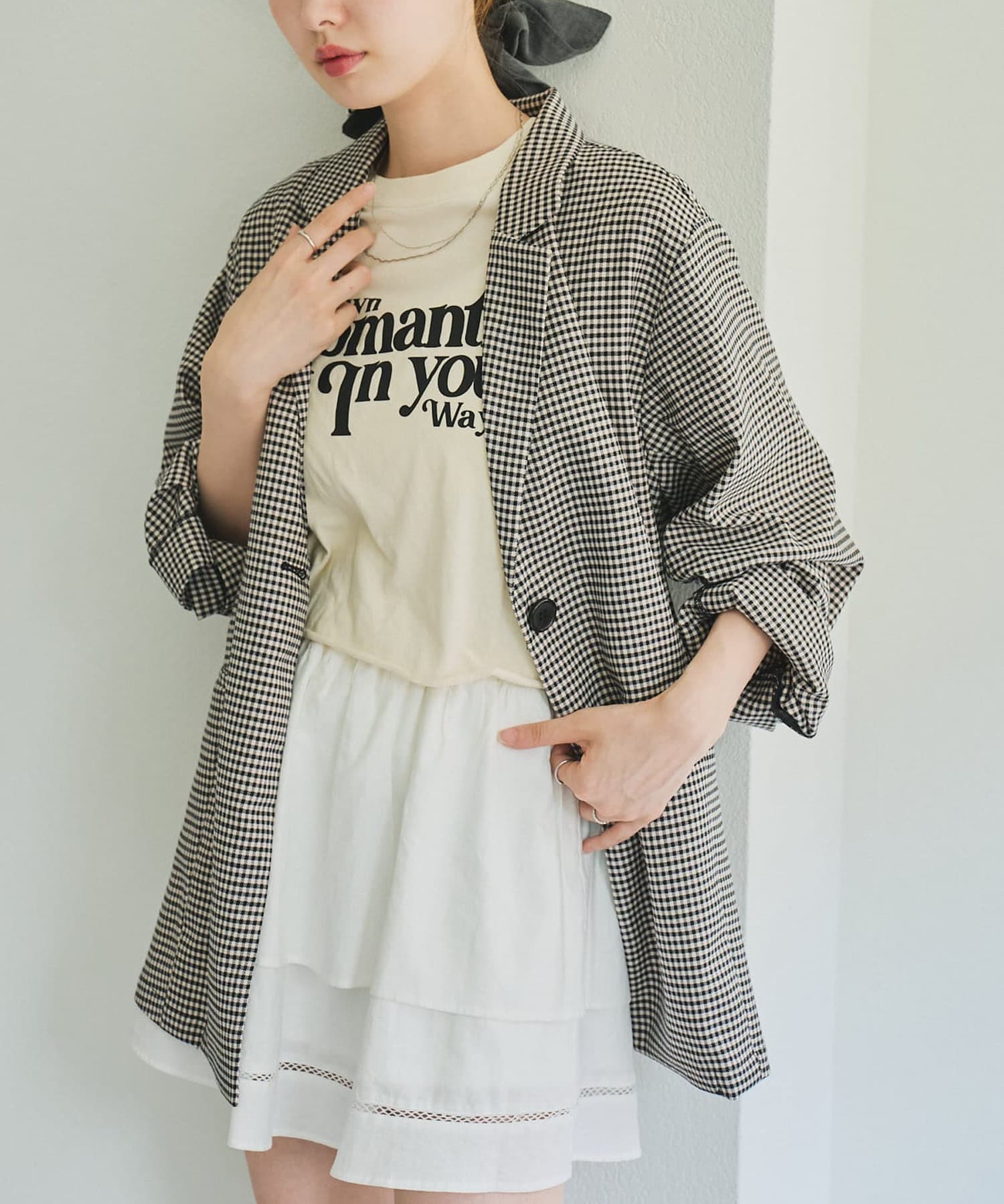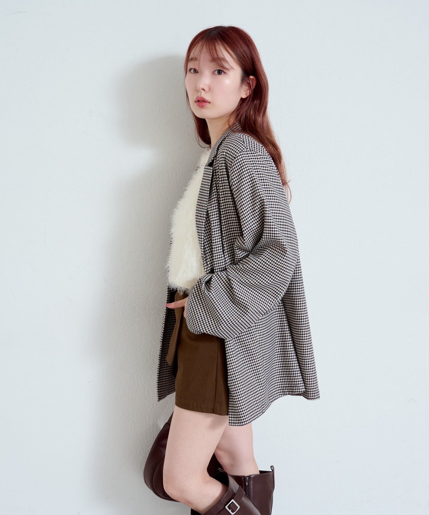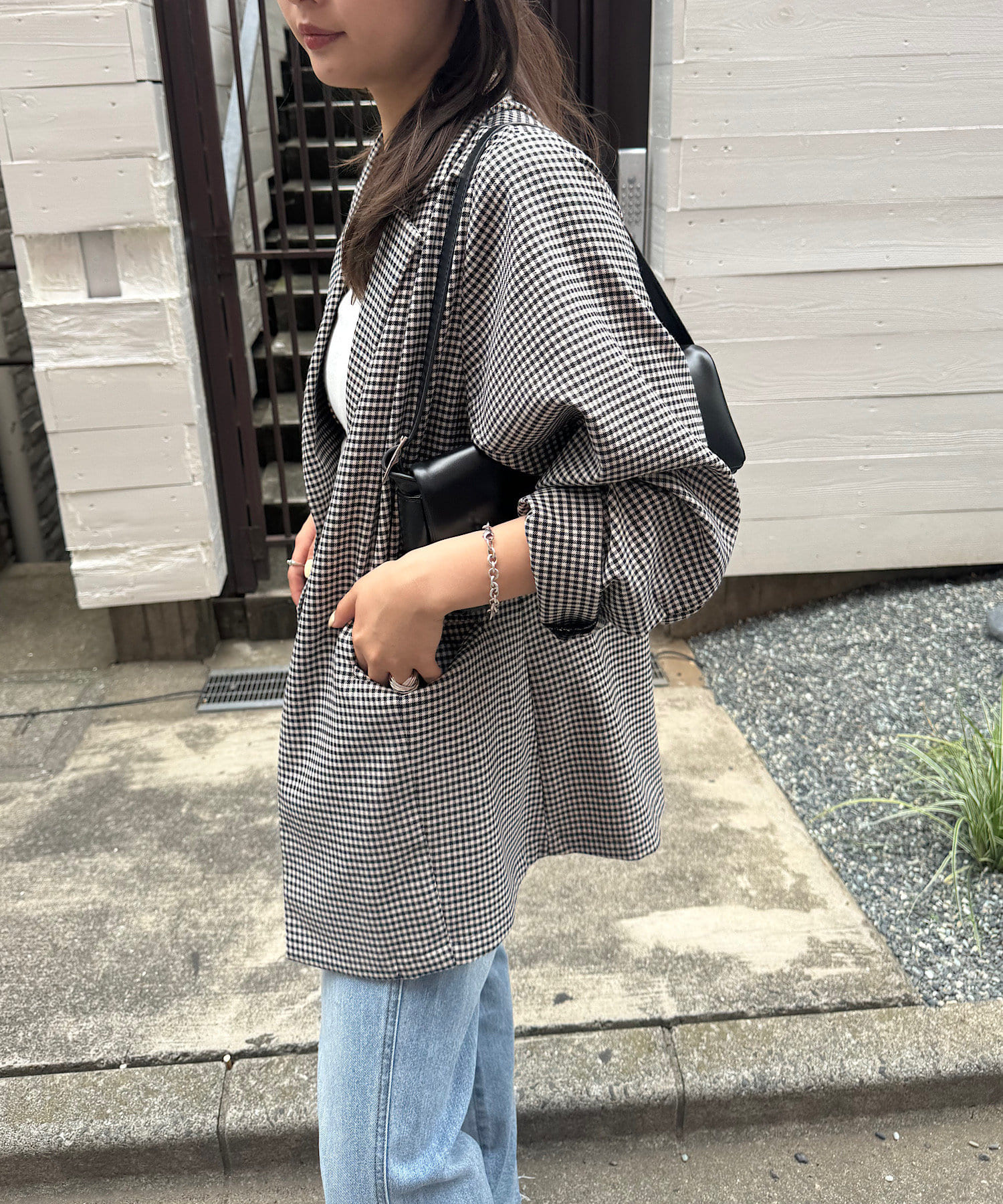 トレンド感のあるオーバーサイズのチェックジャケット。