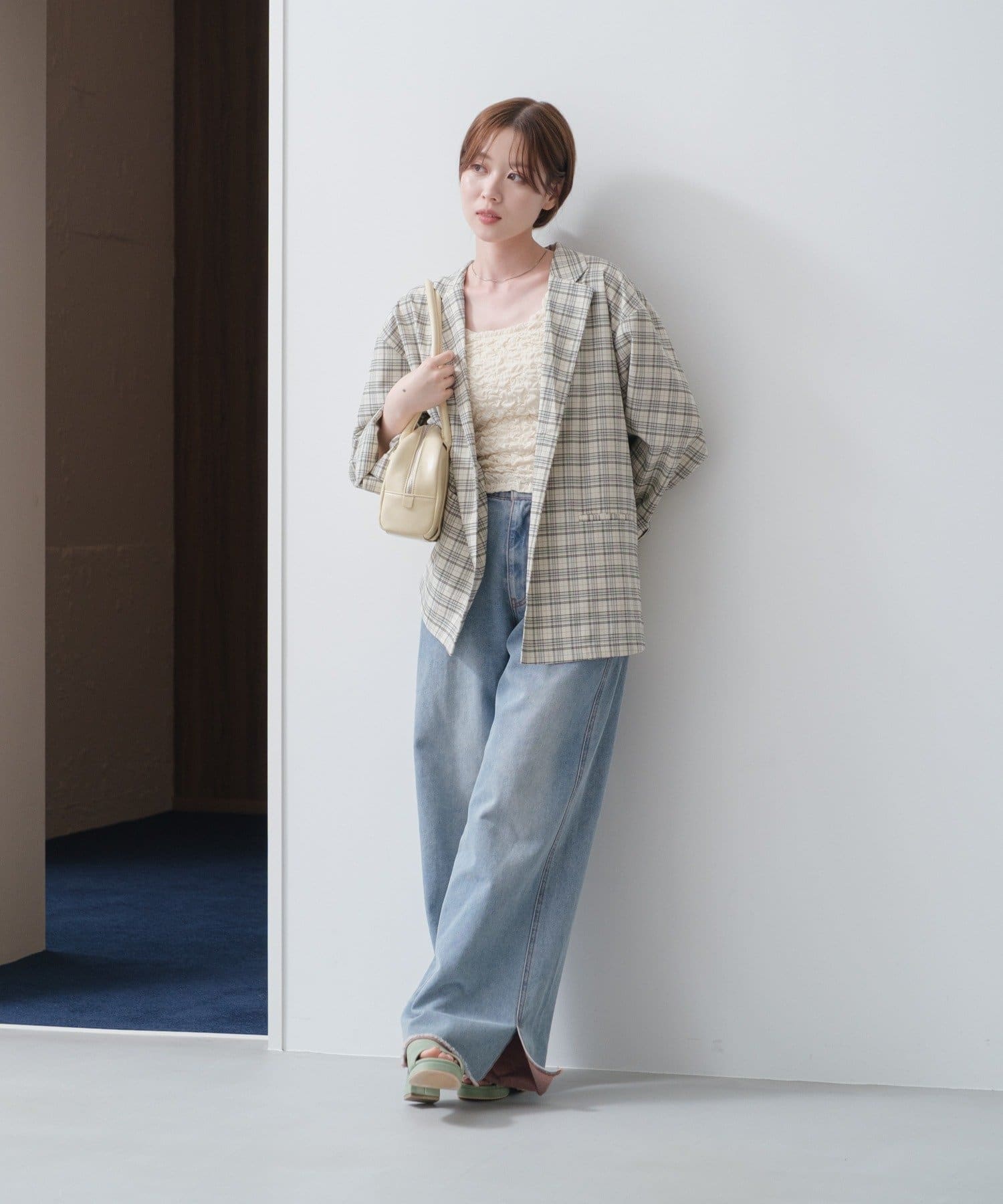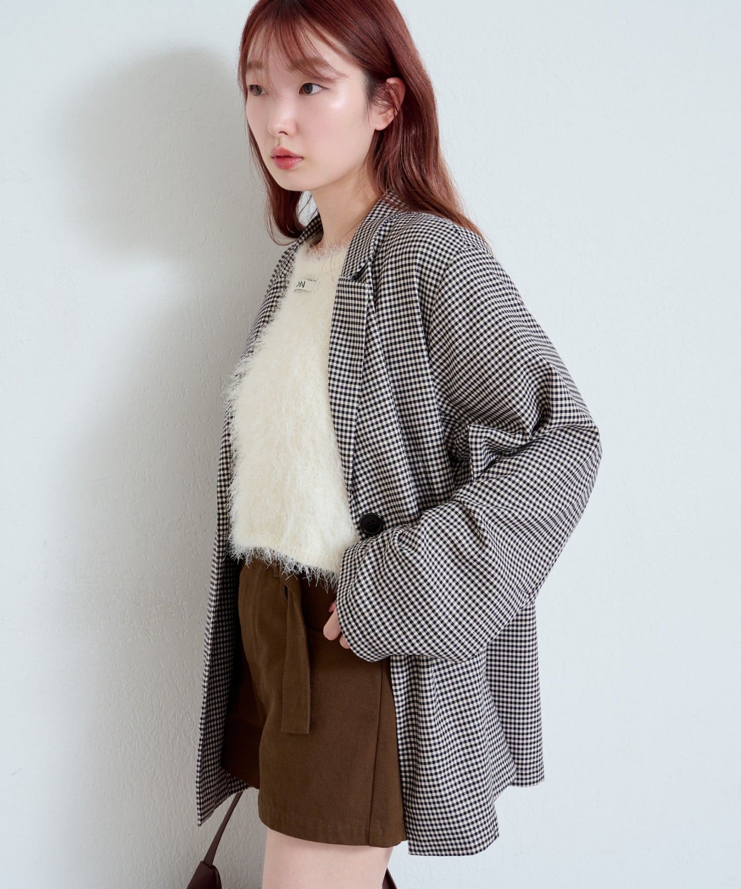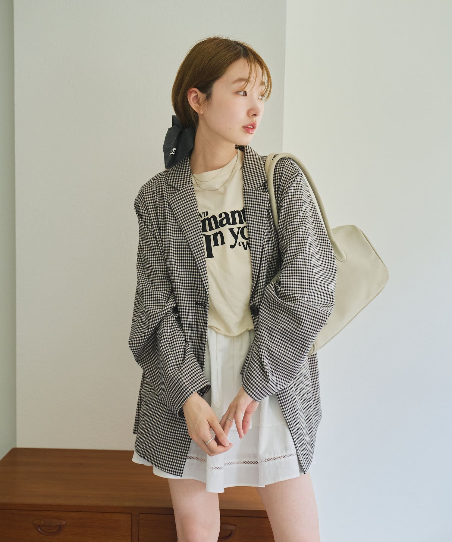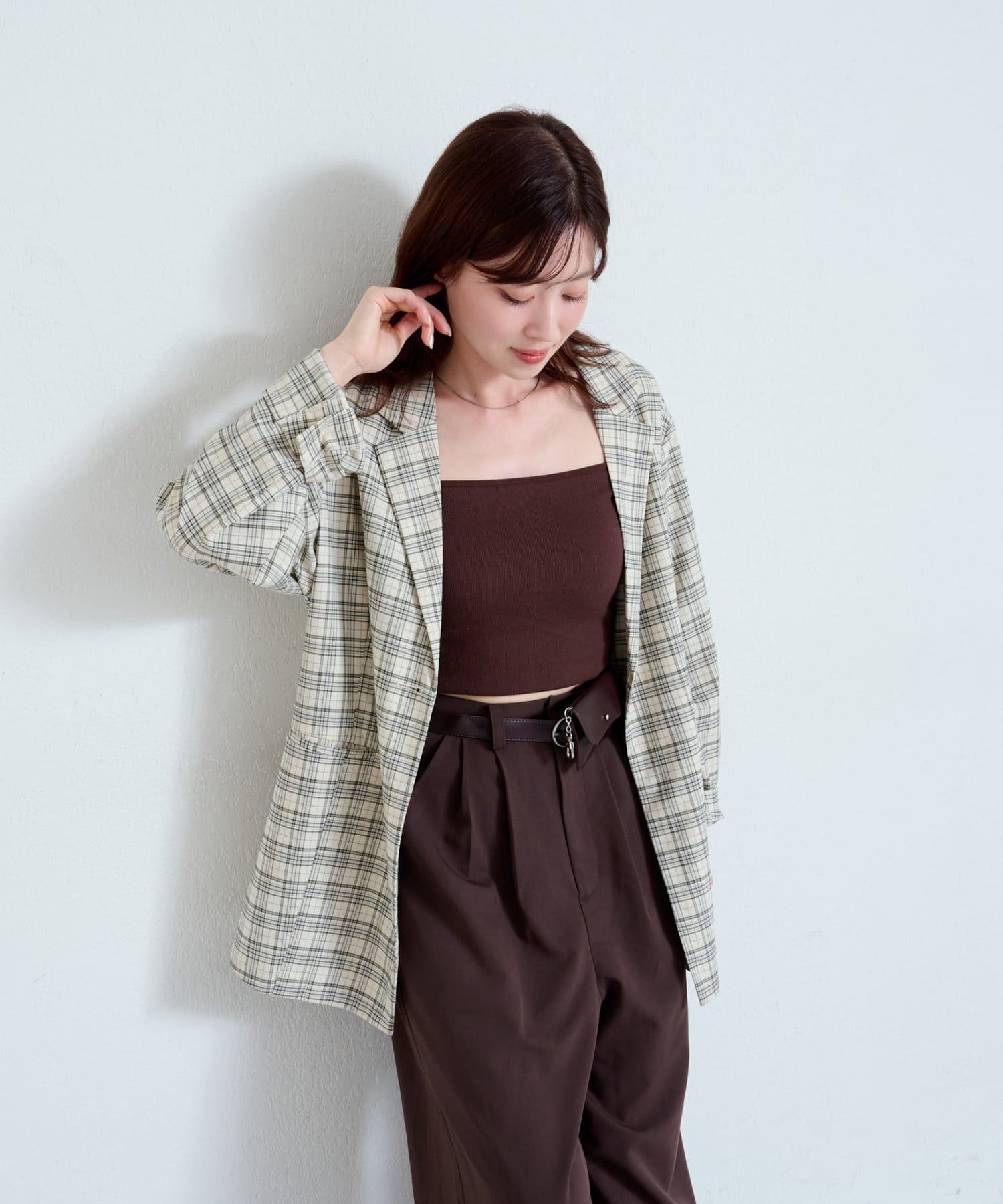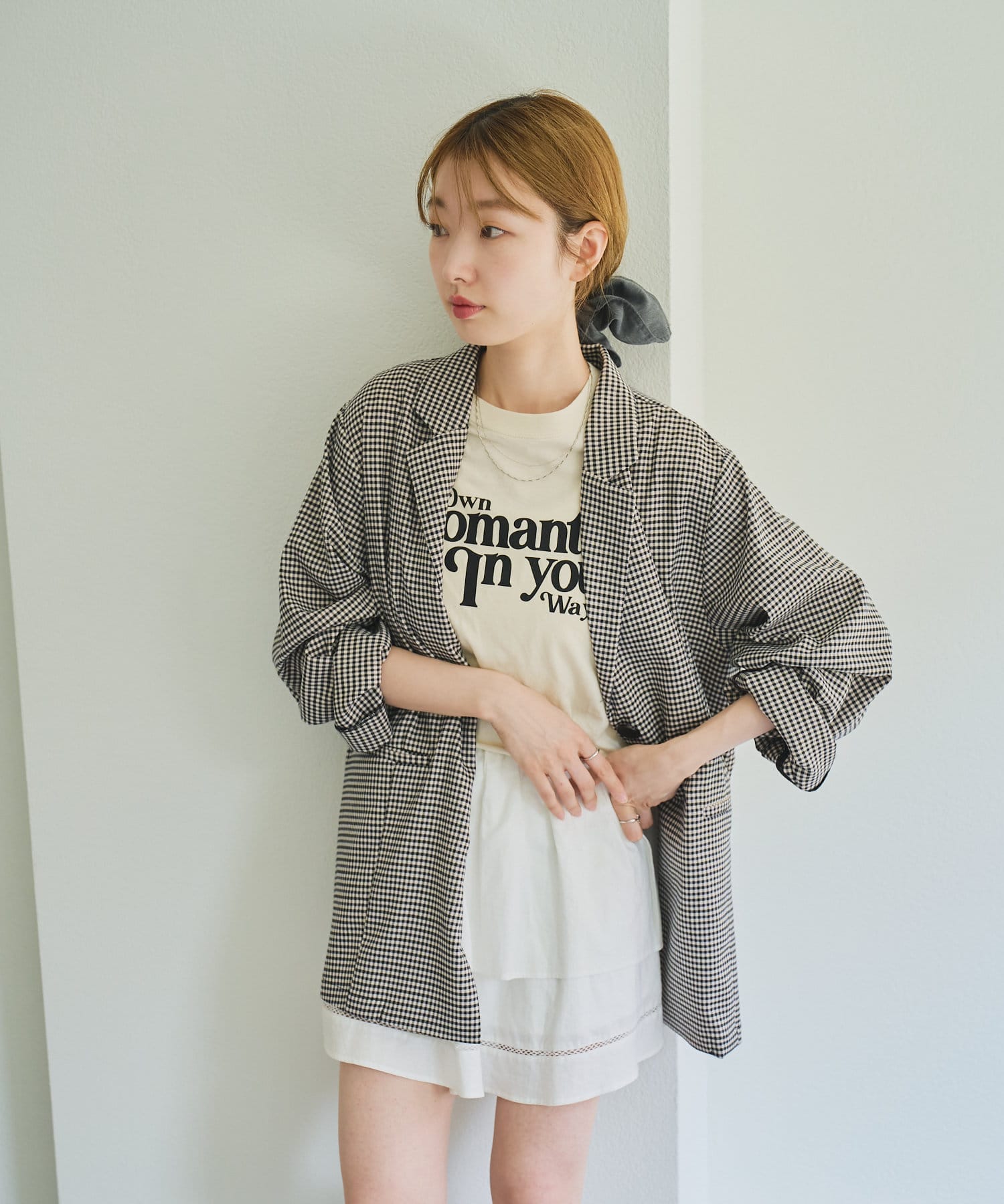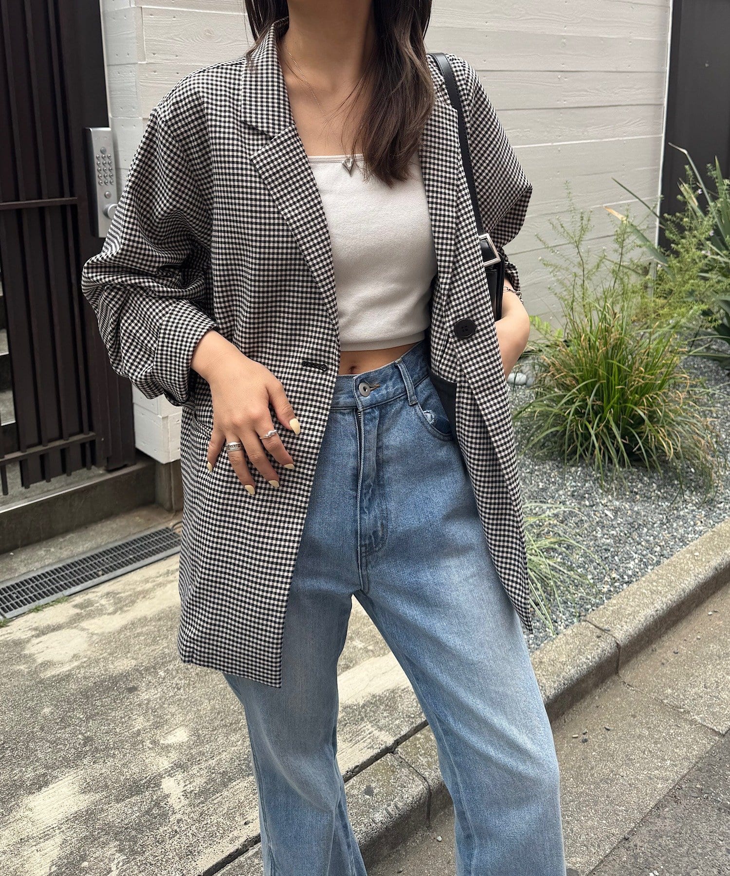 トレンド感のあるオーバーサイズのチェックジャケット。