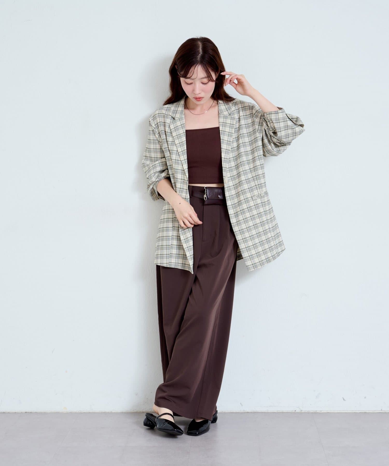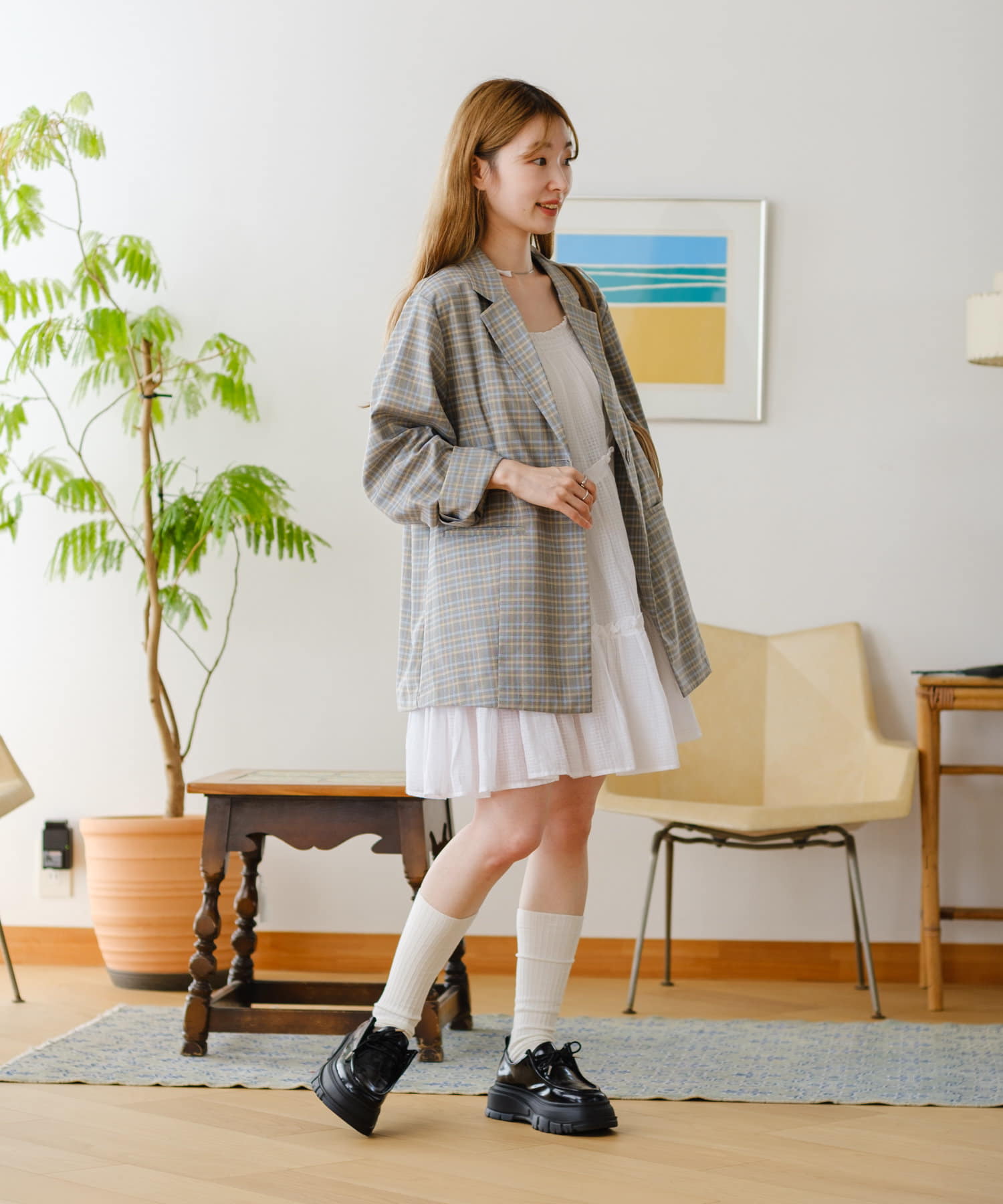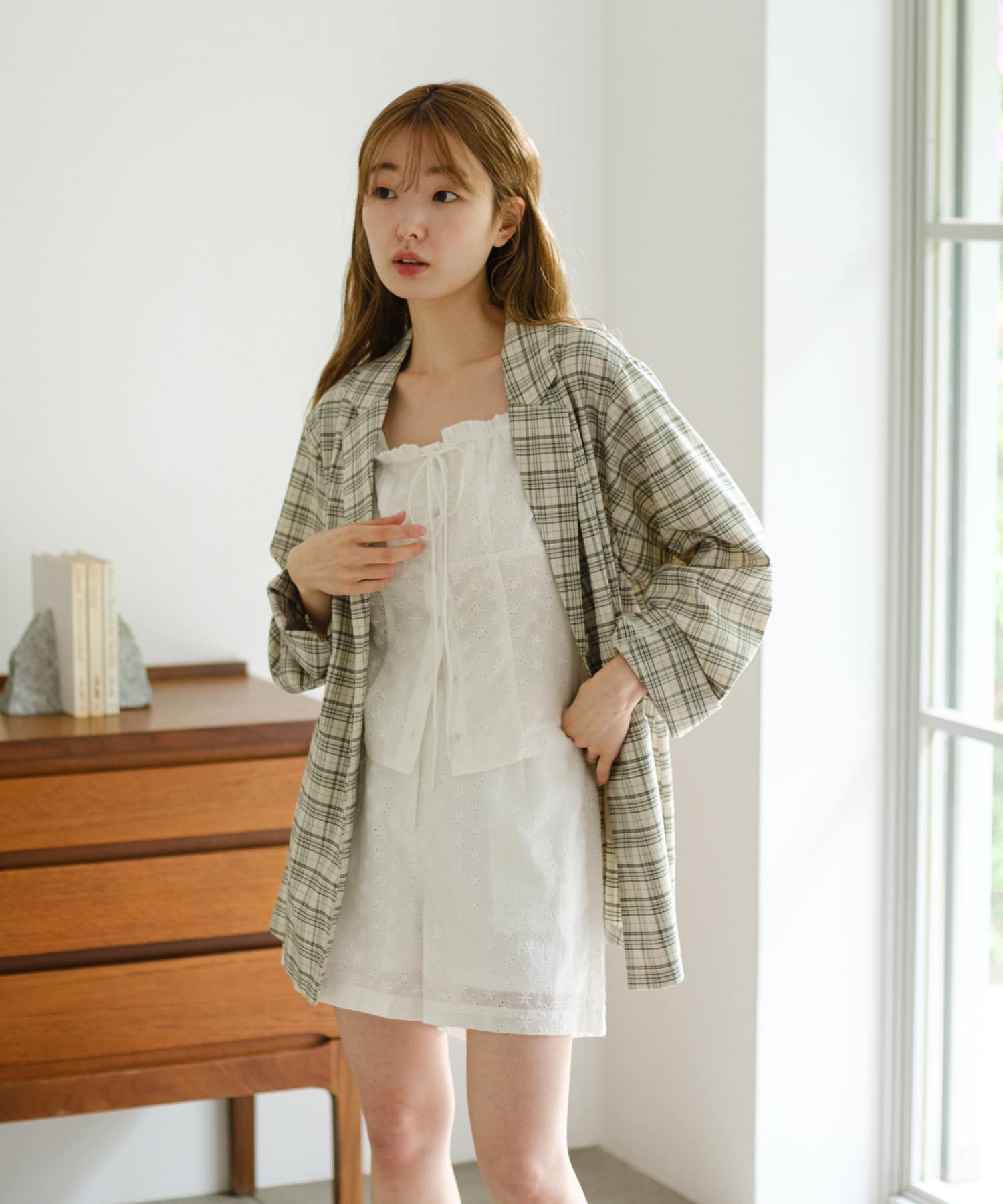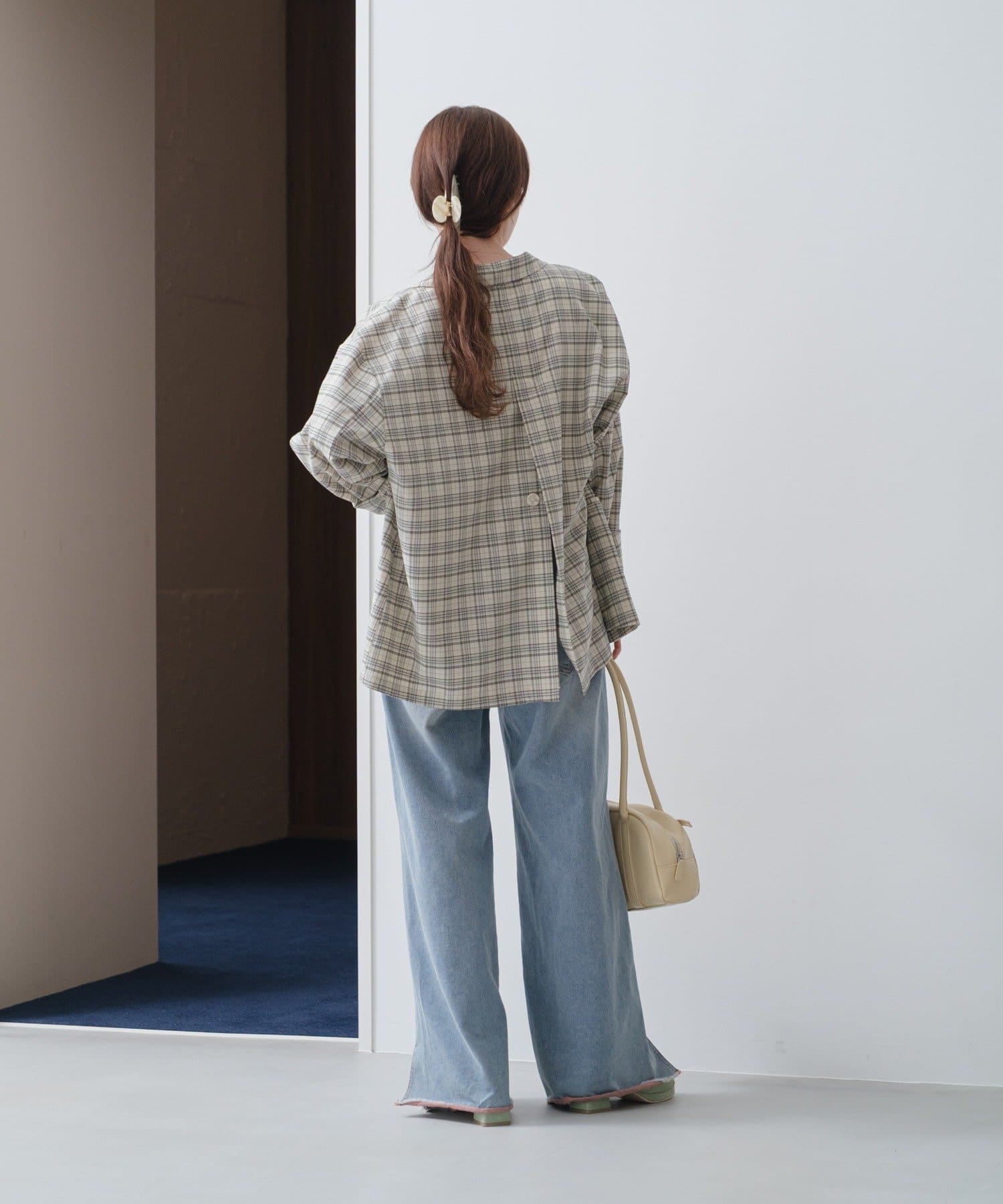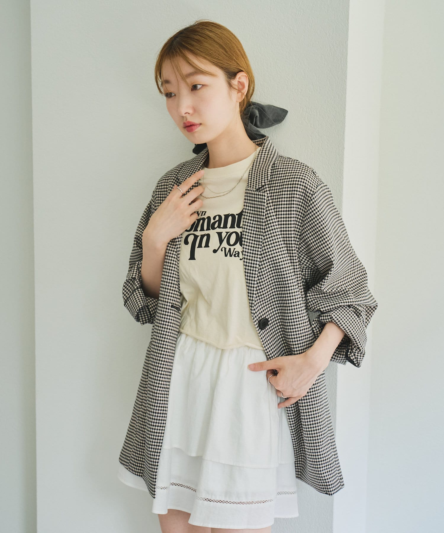 トレンド感のあるオーバーサイズのチェックジャケット。