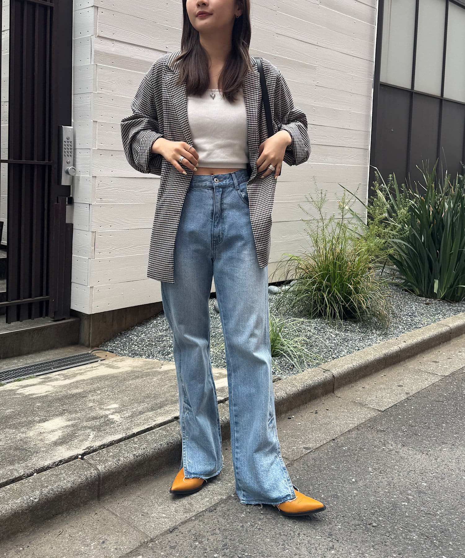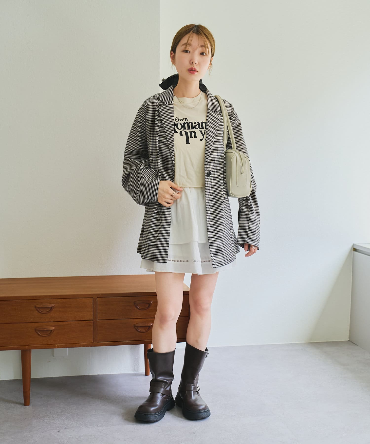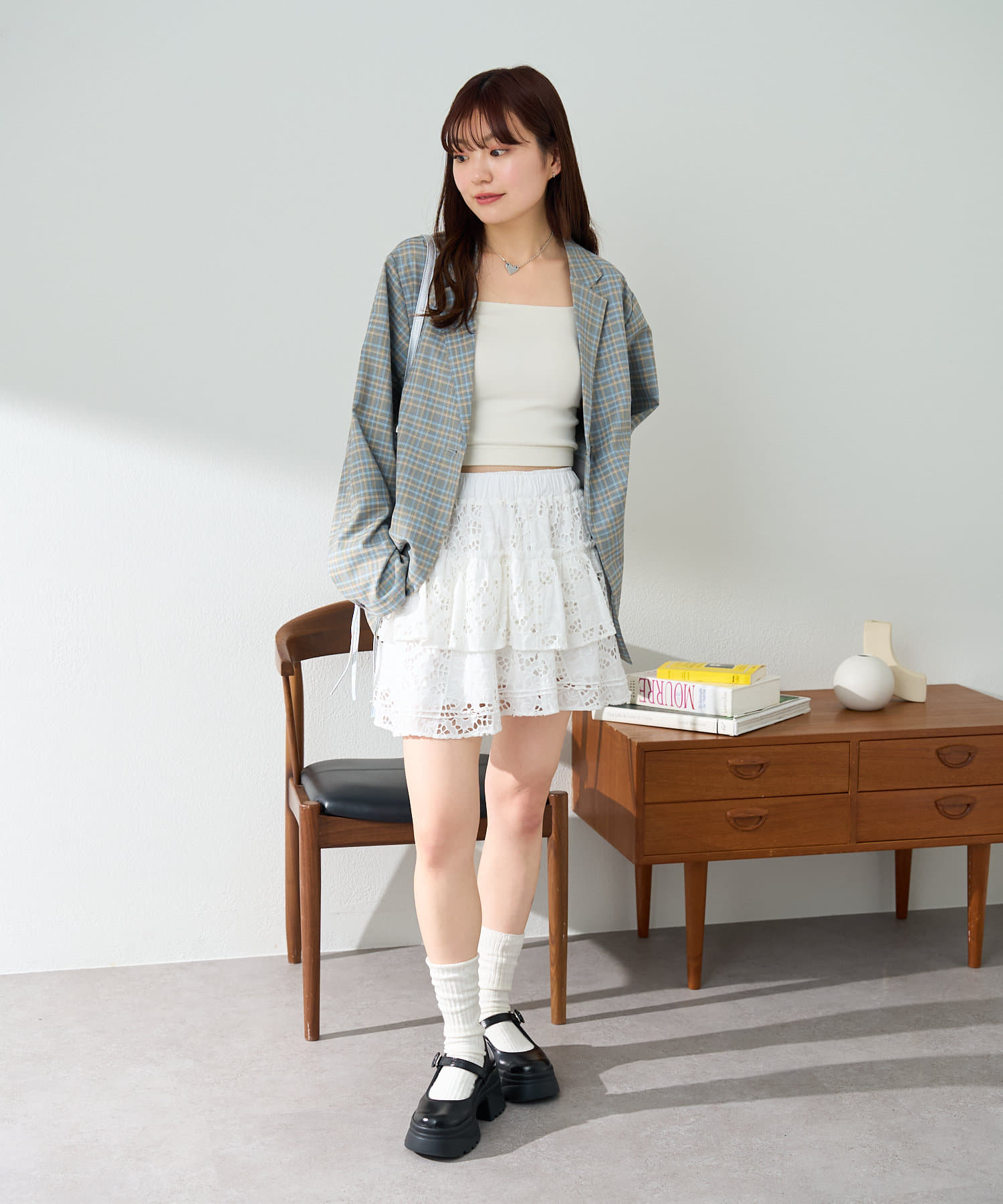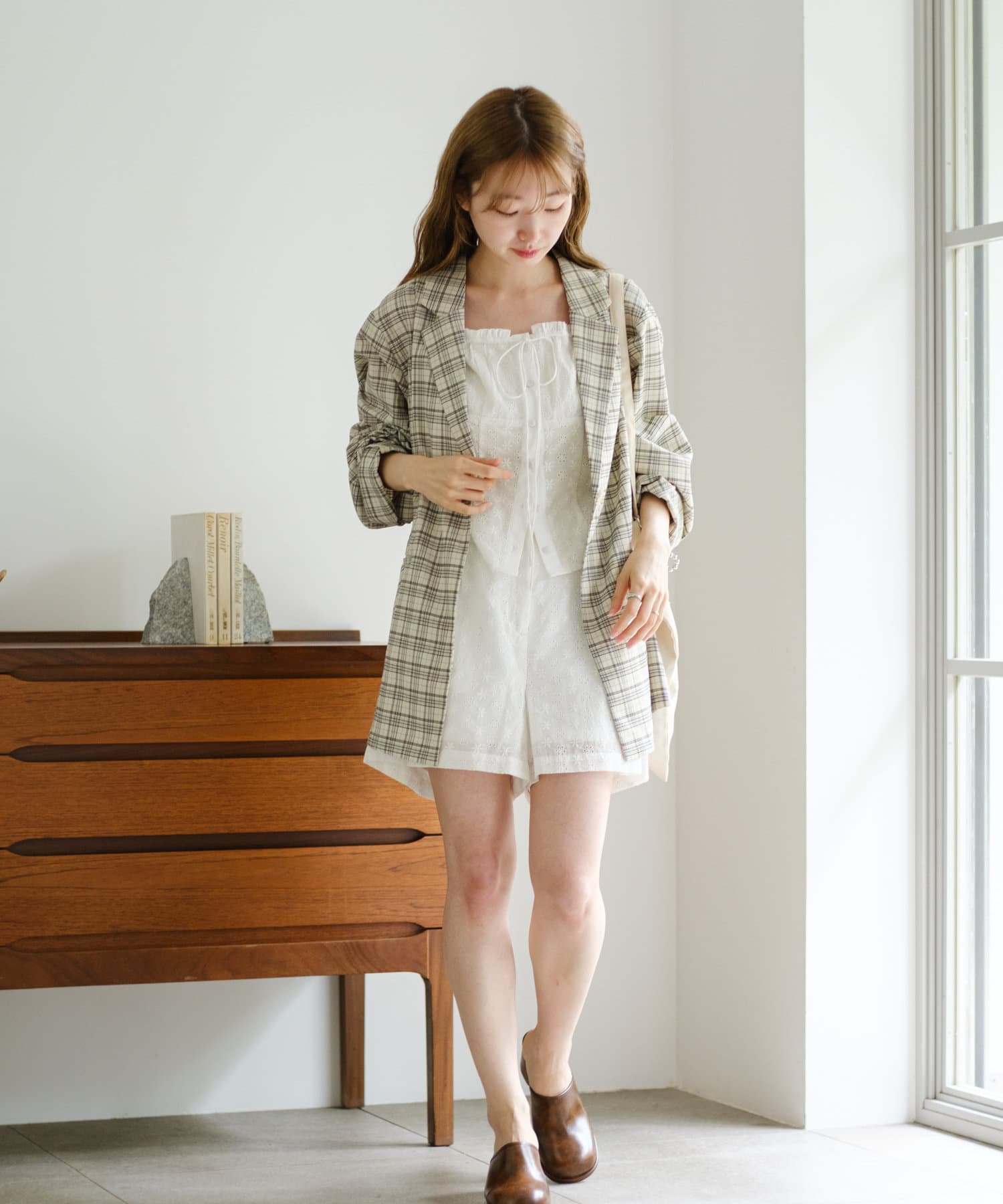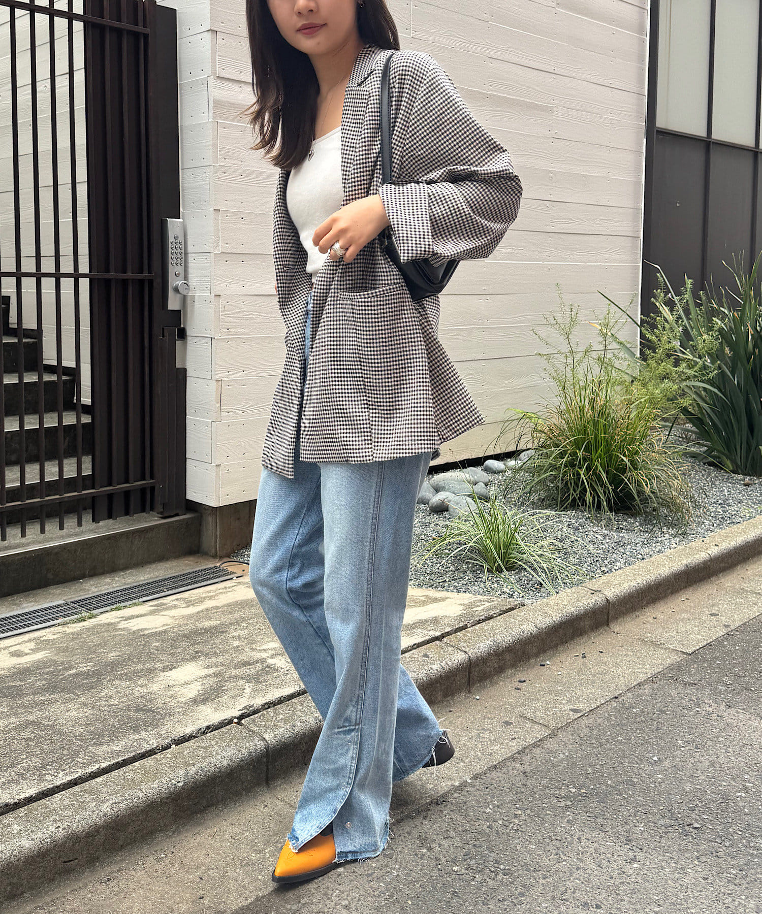トレンド感のあるオーバーサイズのチェックジャケット。