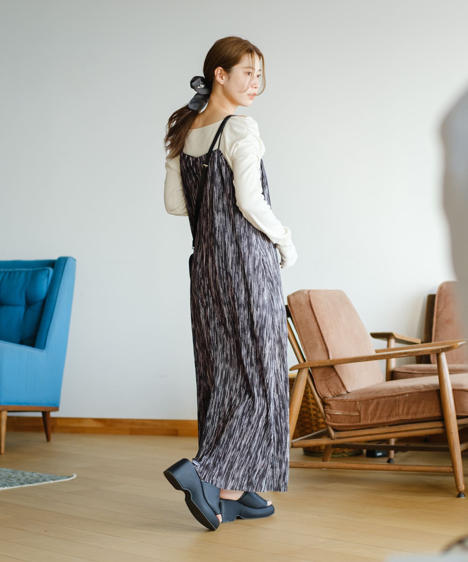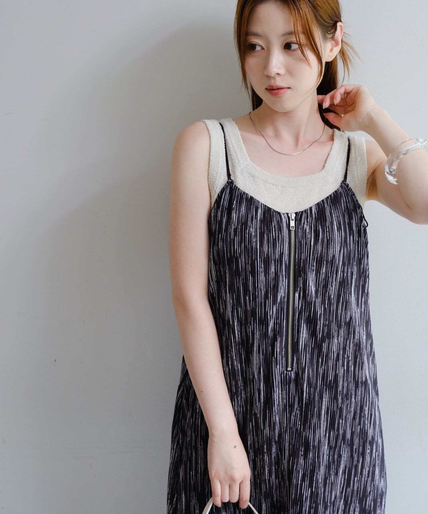 【低身長サイズ/2サイズ展開/前後2WAY】プリーツキャミワンピース