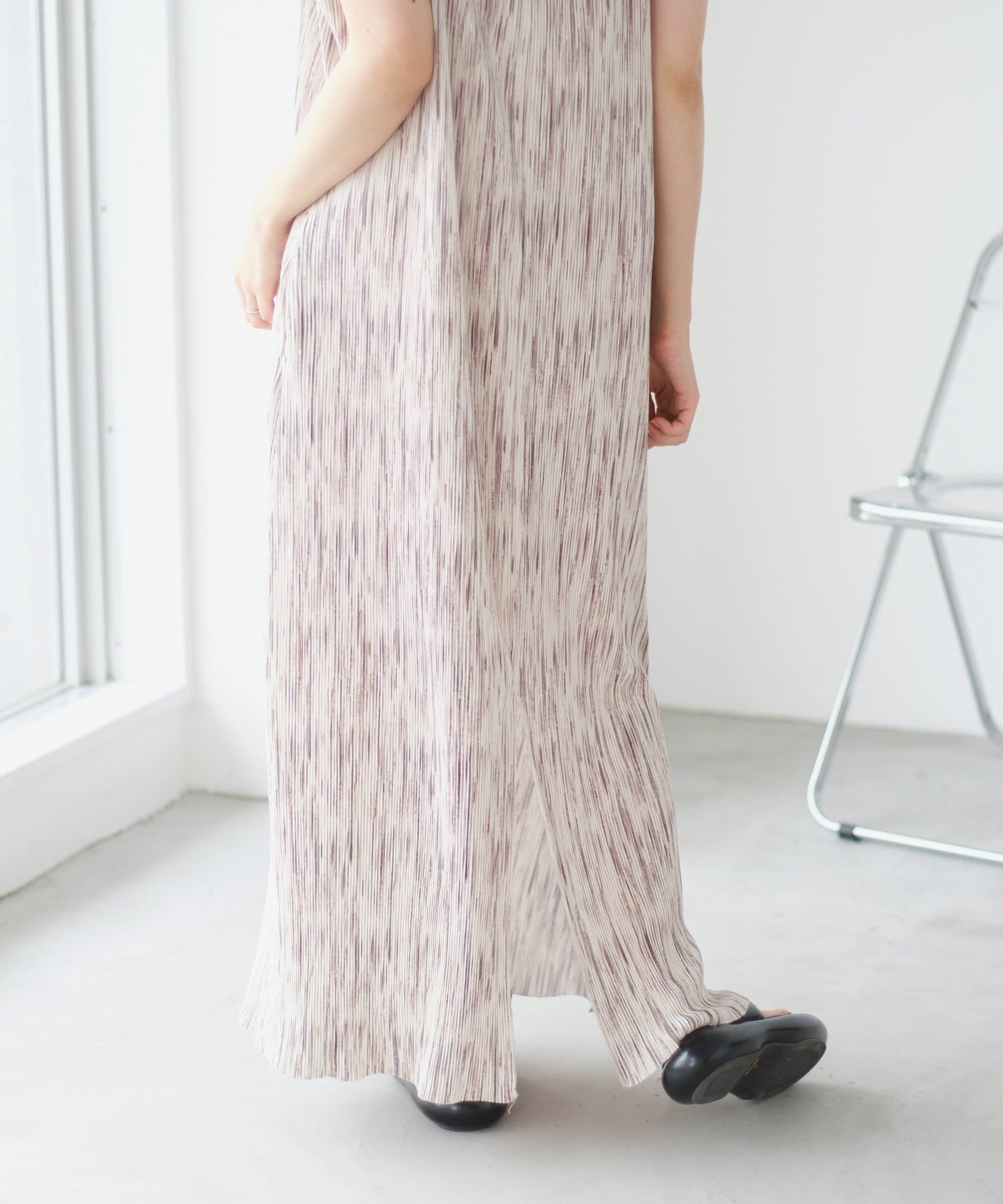 快適さをキープしながらも上品に着こなせるプリーツワンピース。