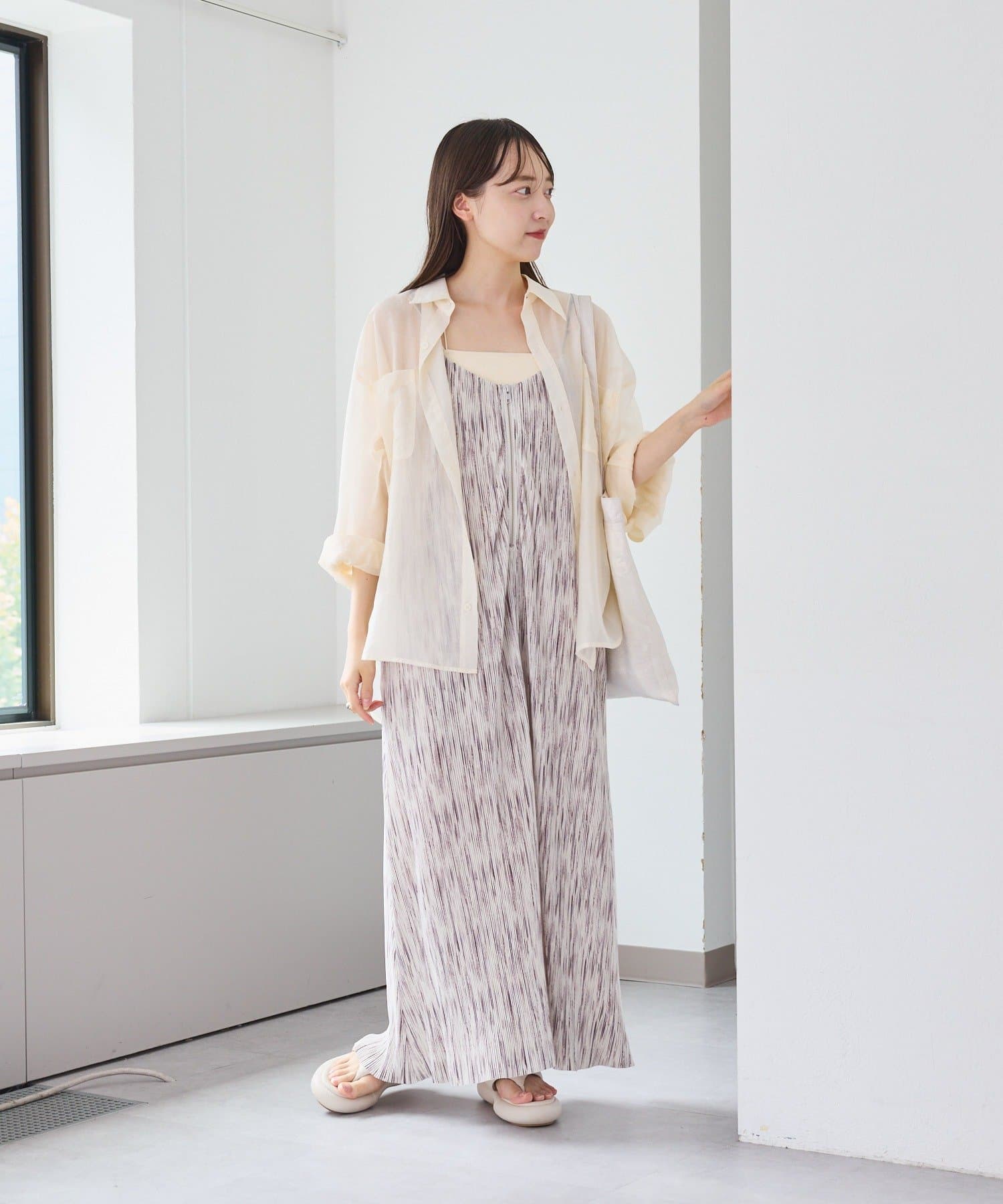 夏場は華奢見えするようにカップ付きキャミの上からさらっと着るとヘルシーな印象に。