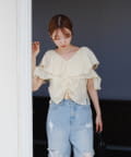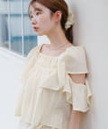 ブラウスは前後2WAY仕様でスクエアとVネックで気分や骨格に合わせて着ていただけます。