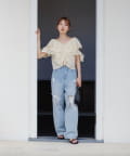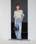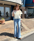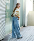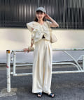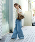 トップスは短丈なので、ハイウエストアイテムとの相性が◎