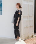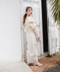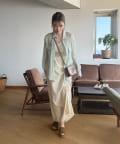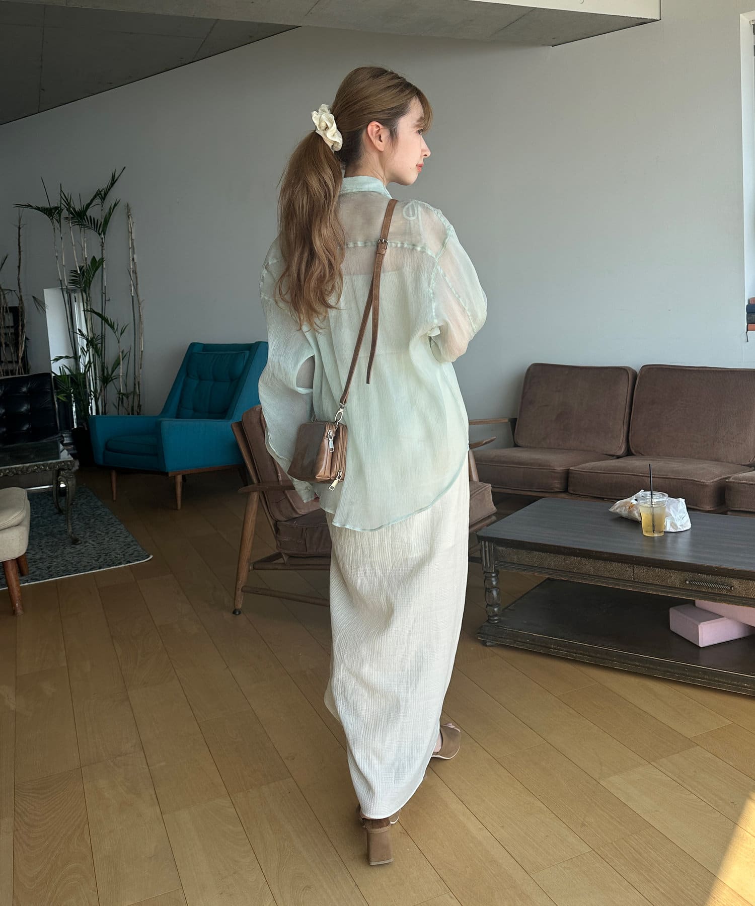 スカートはシャーリング部分をしっかり絞るとパンツとのレイヤードスタイルも楽しめます。