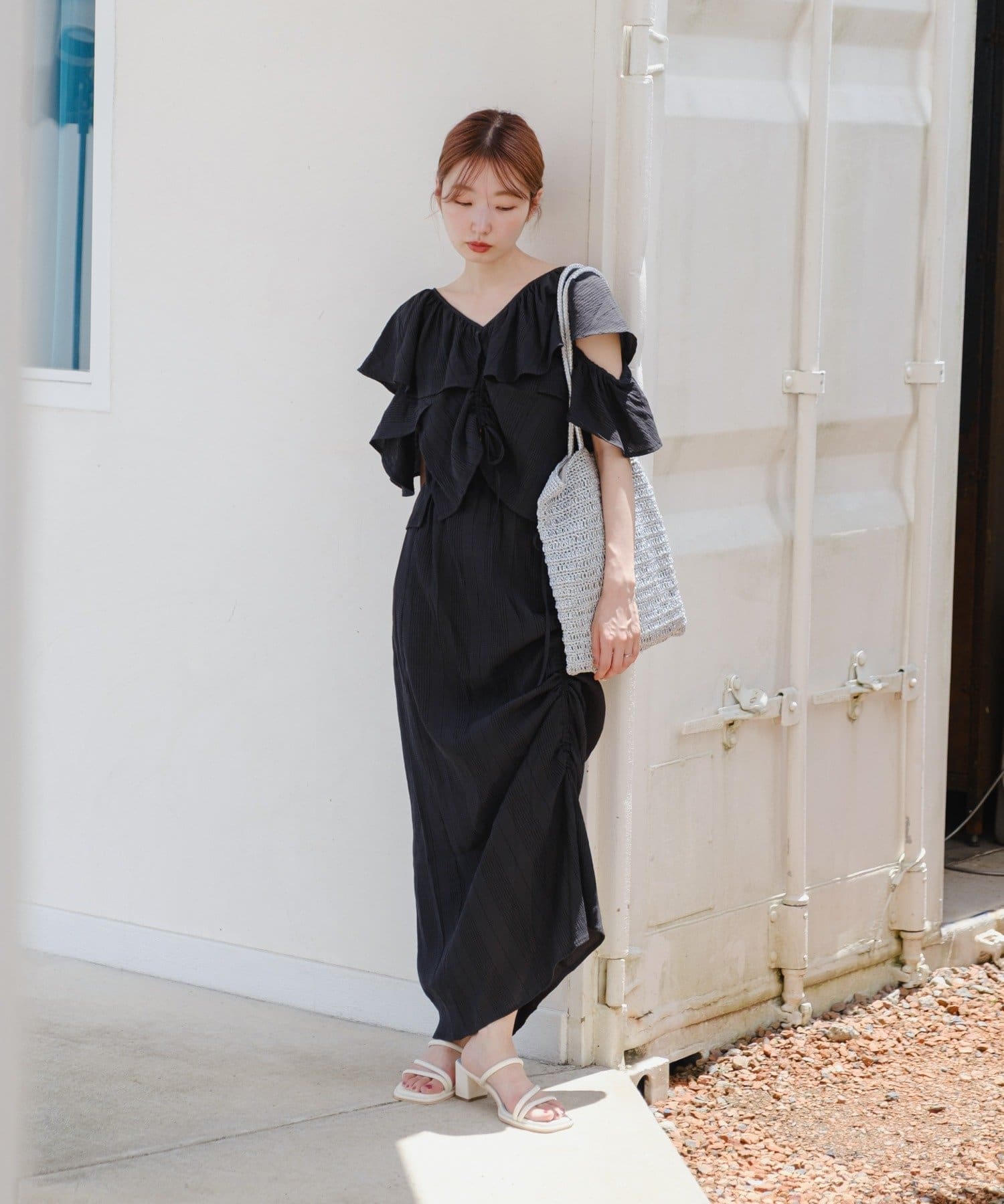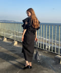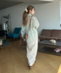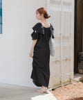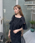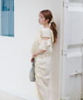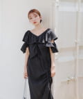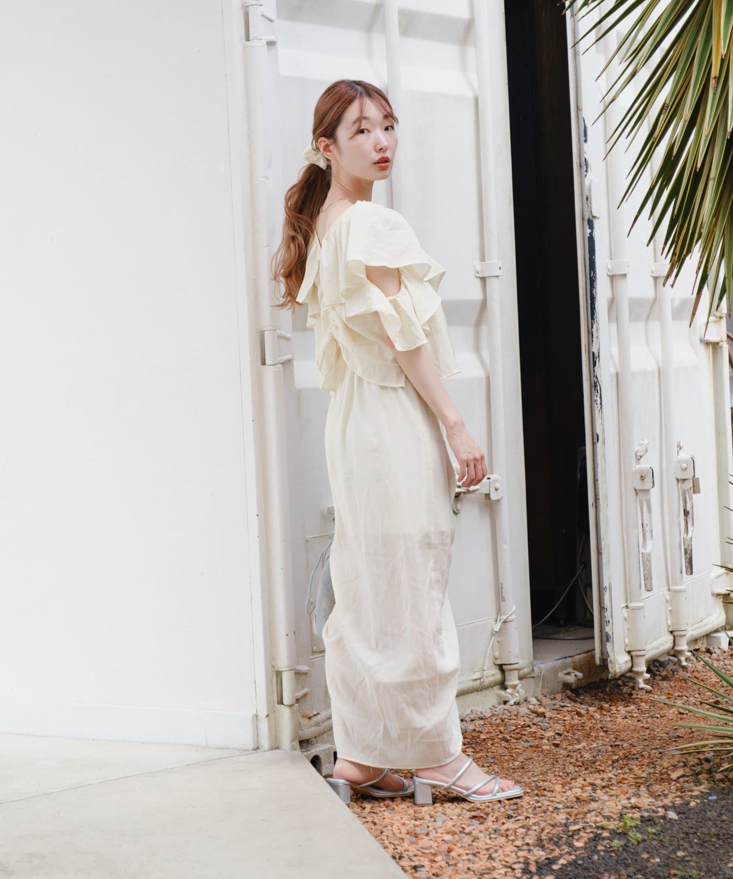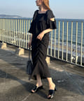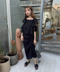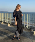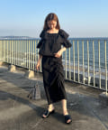 ワンピース風に着る際もトップスを前後で合わせて雰囲気を変えられます。