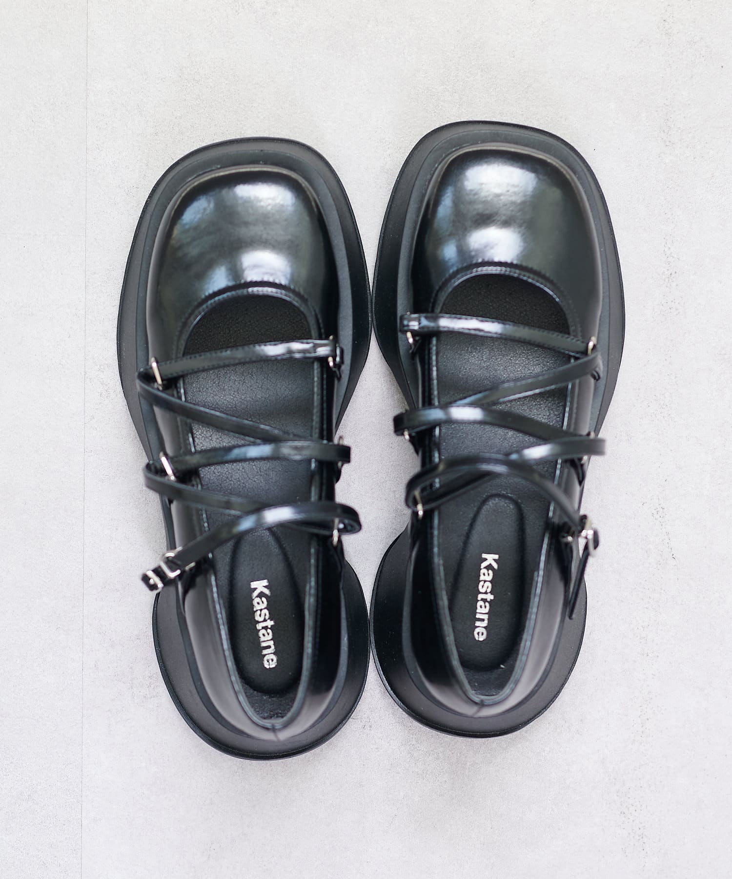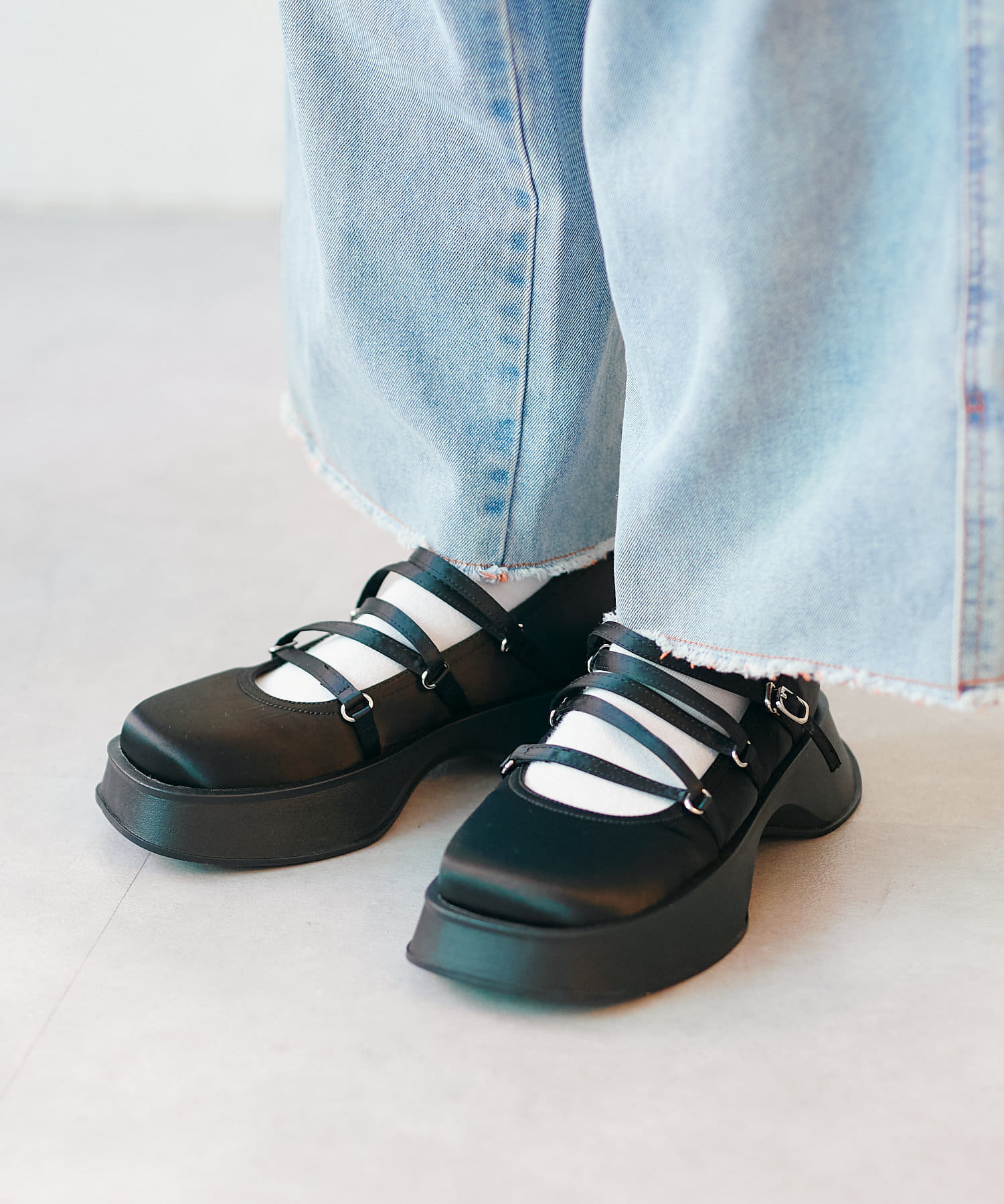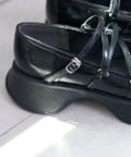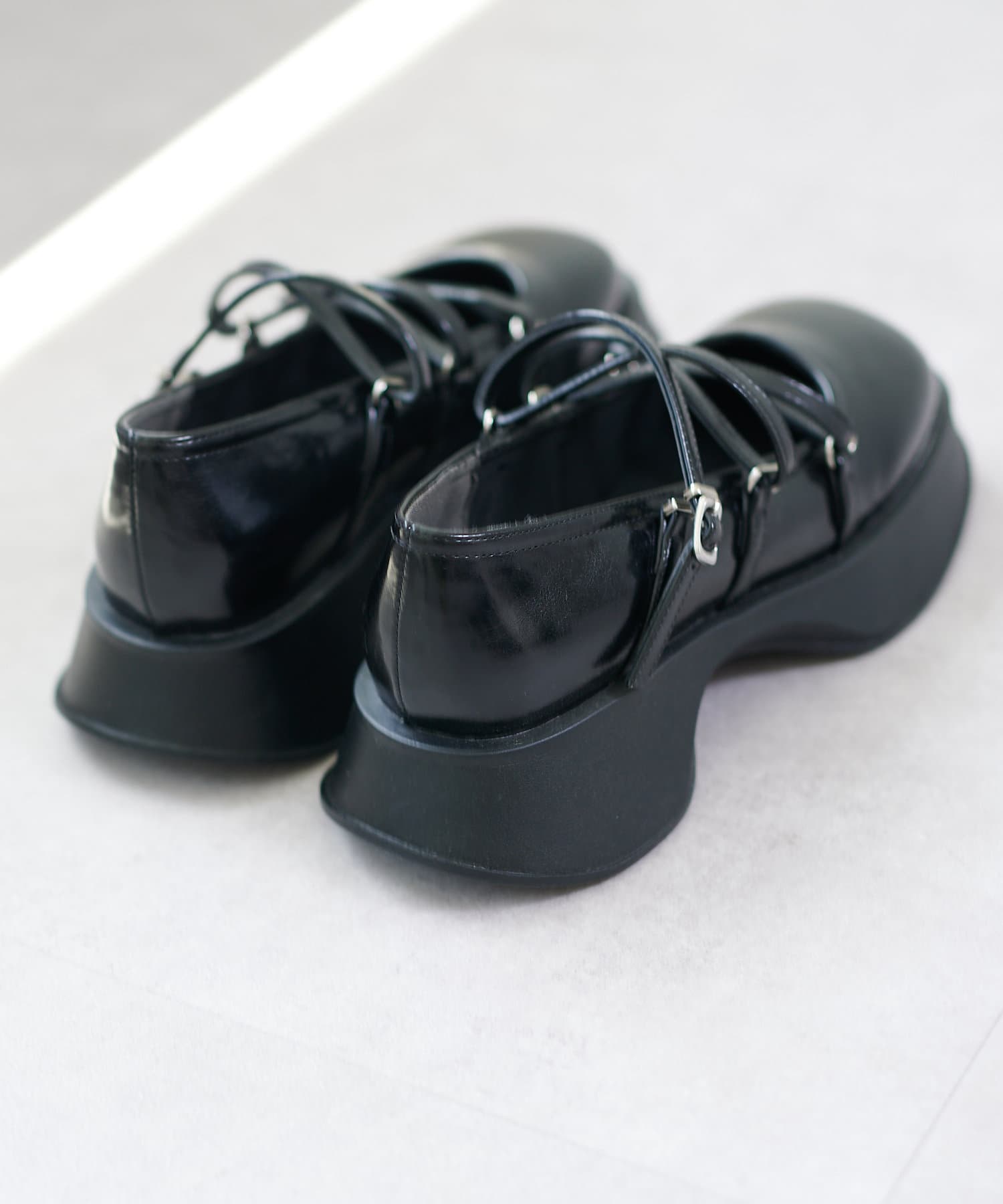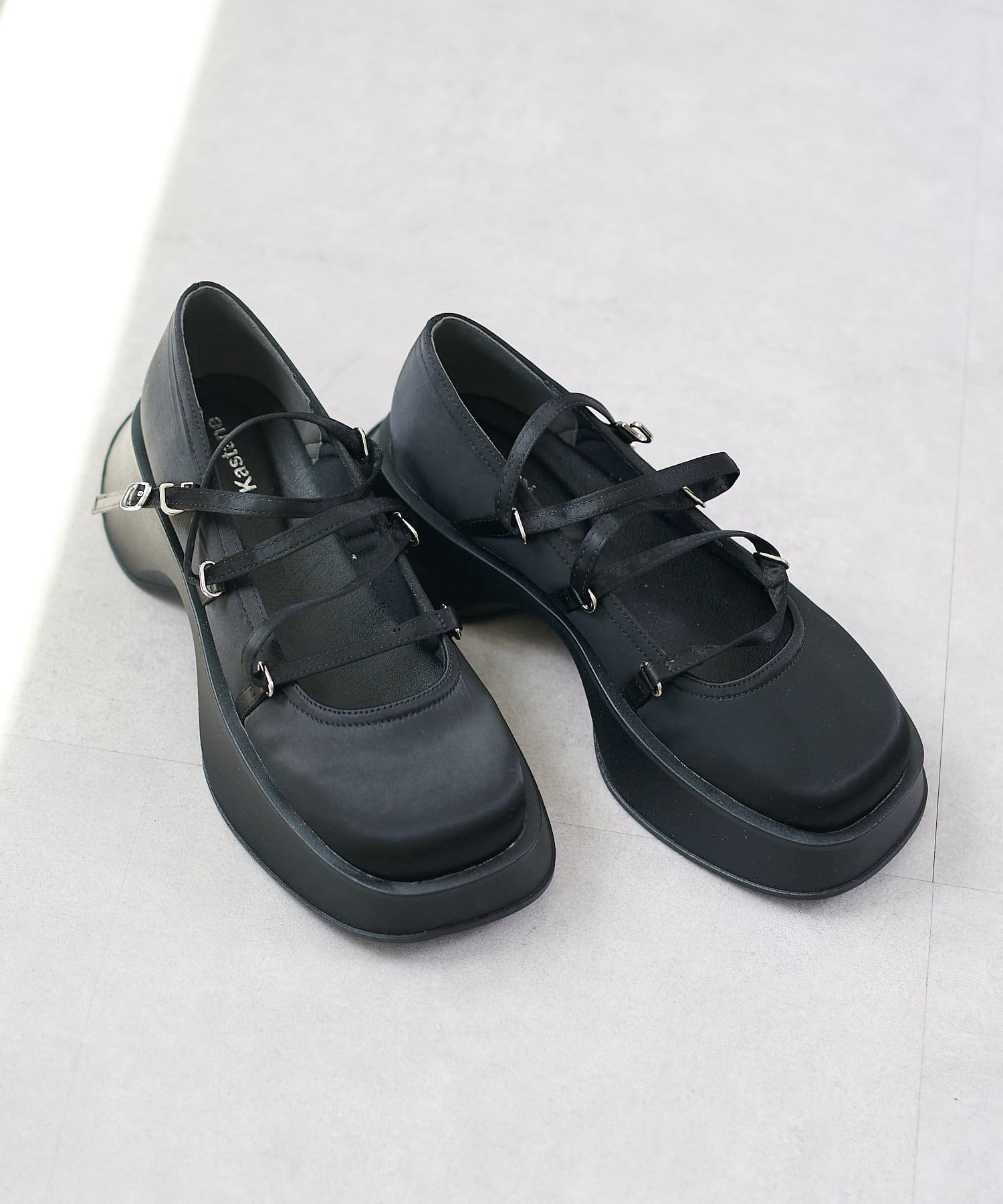 ぽってりとしたボリュームソールとクロスゴムがポイントの厚底バレエシューズ。
