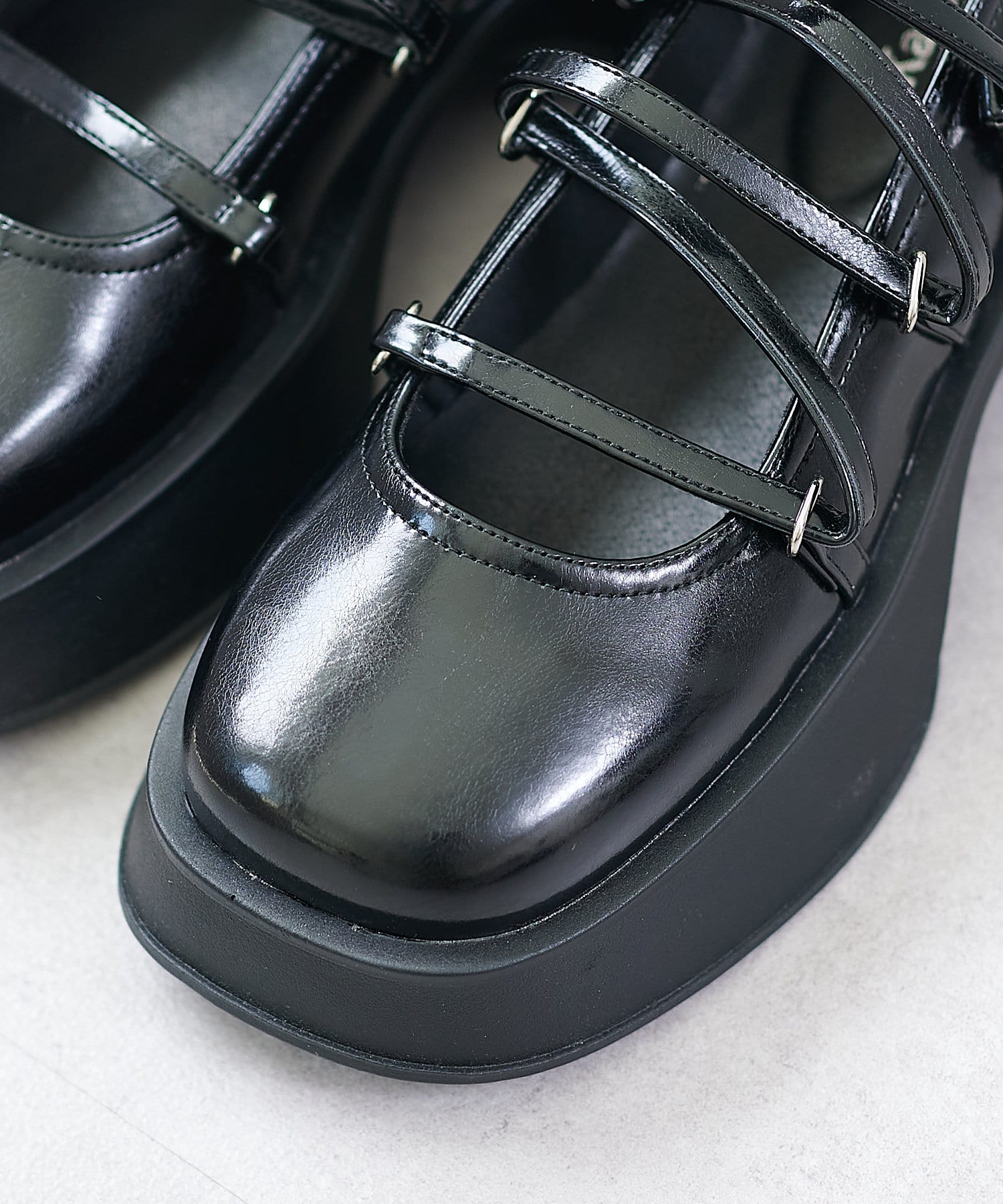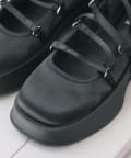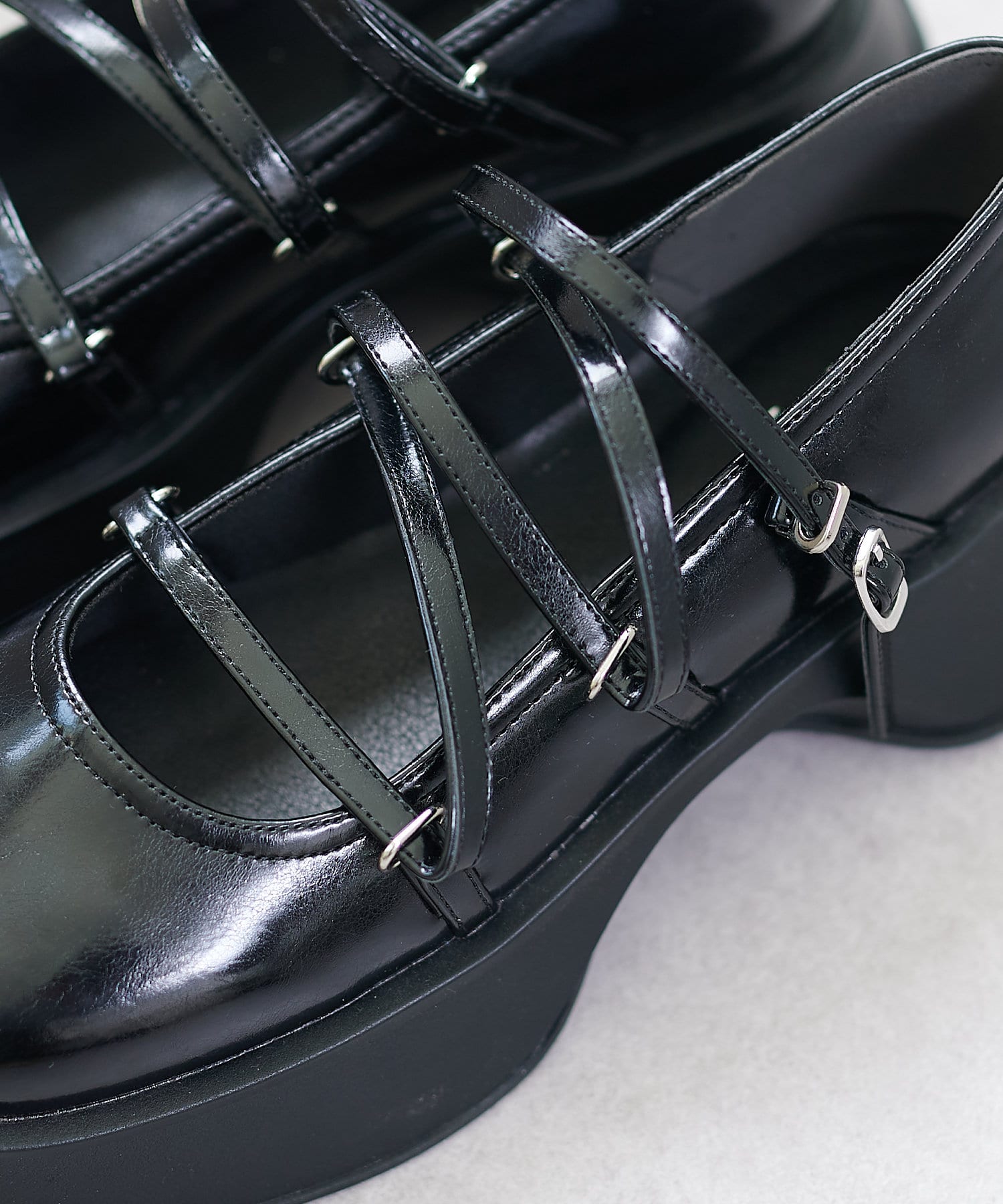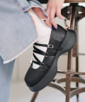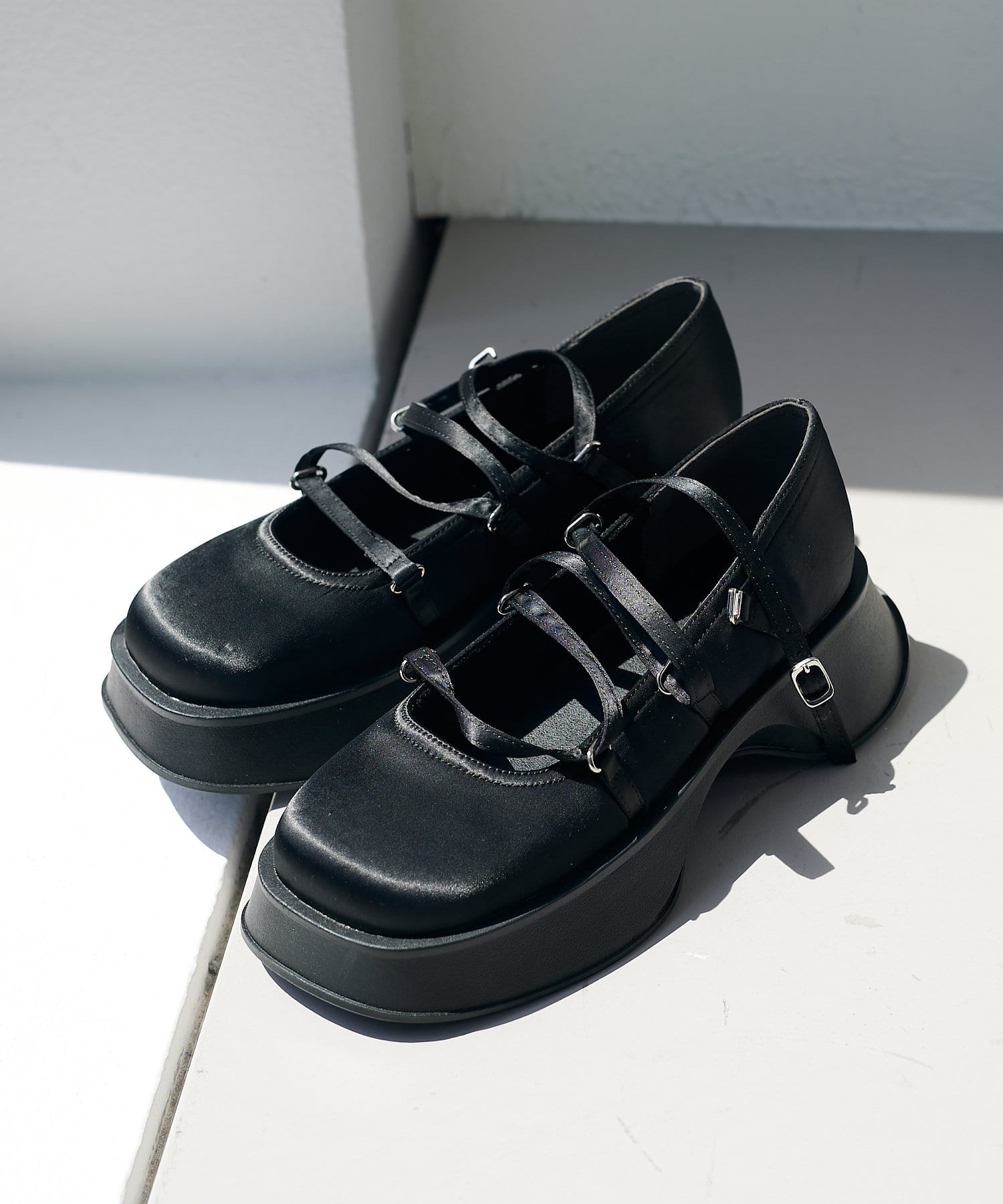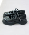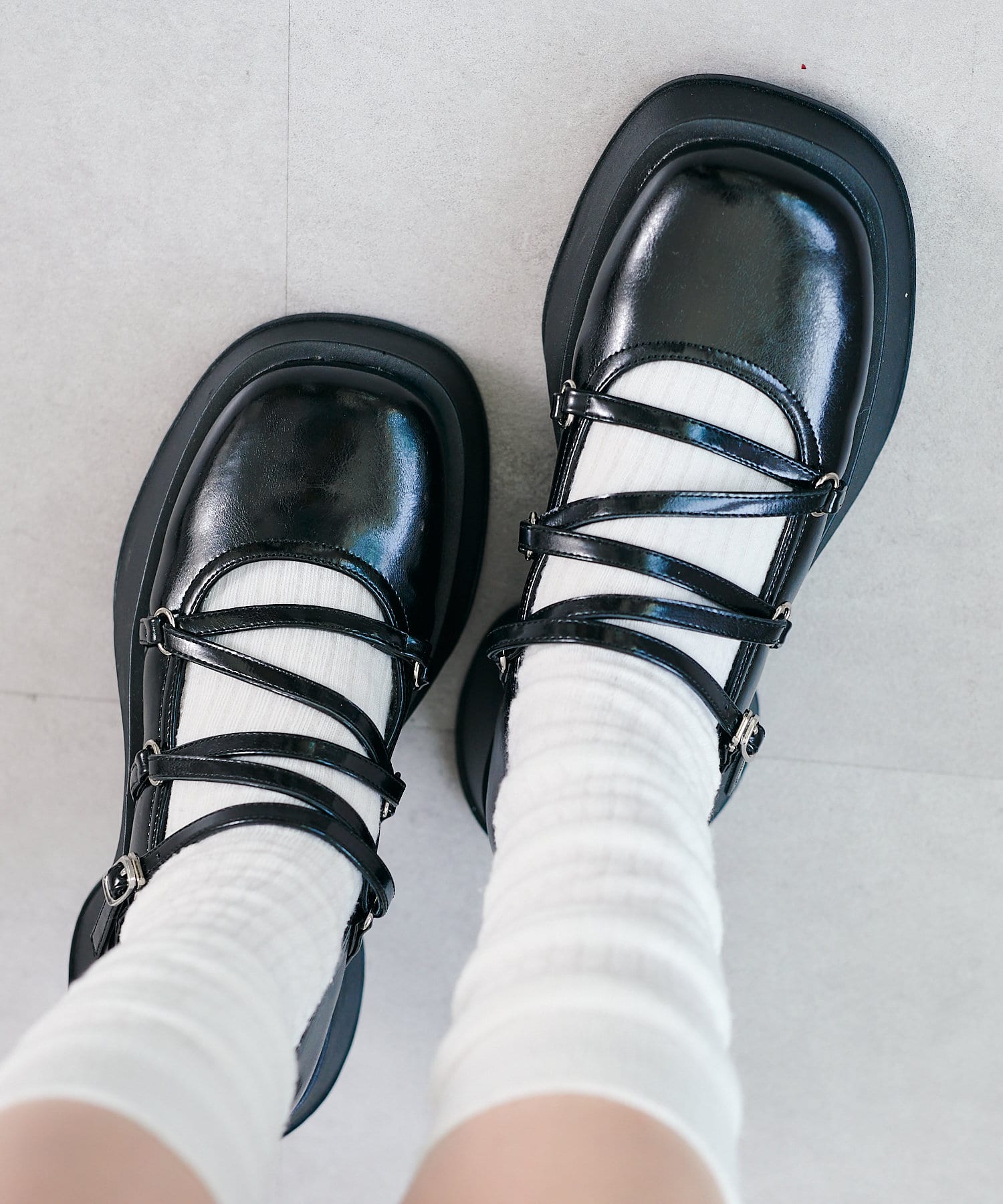 ぽってりとしたボリュームソールとクロスゴムがポイントの厚底バレエシューズ。