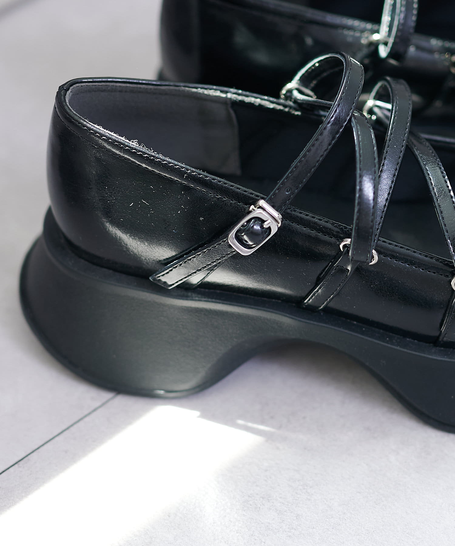 クロスストラップが足元をすっきりと見せつつ、抜群のフィット感で歩きやすさも両立。