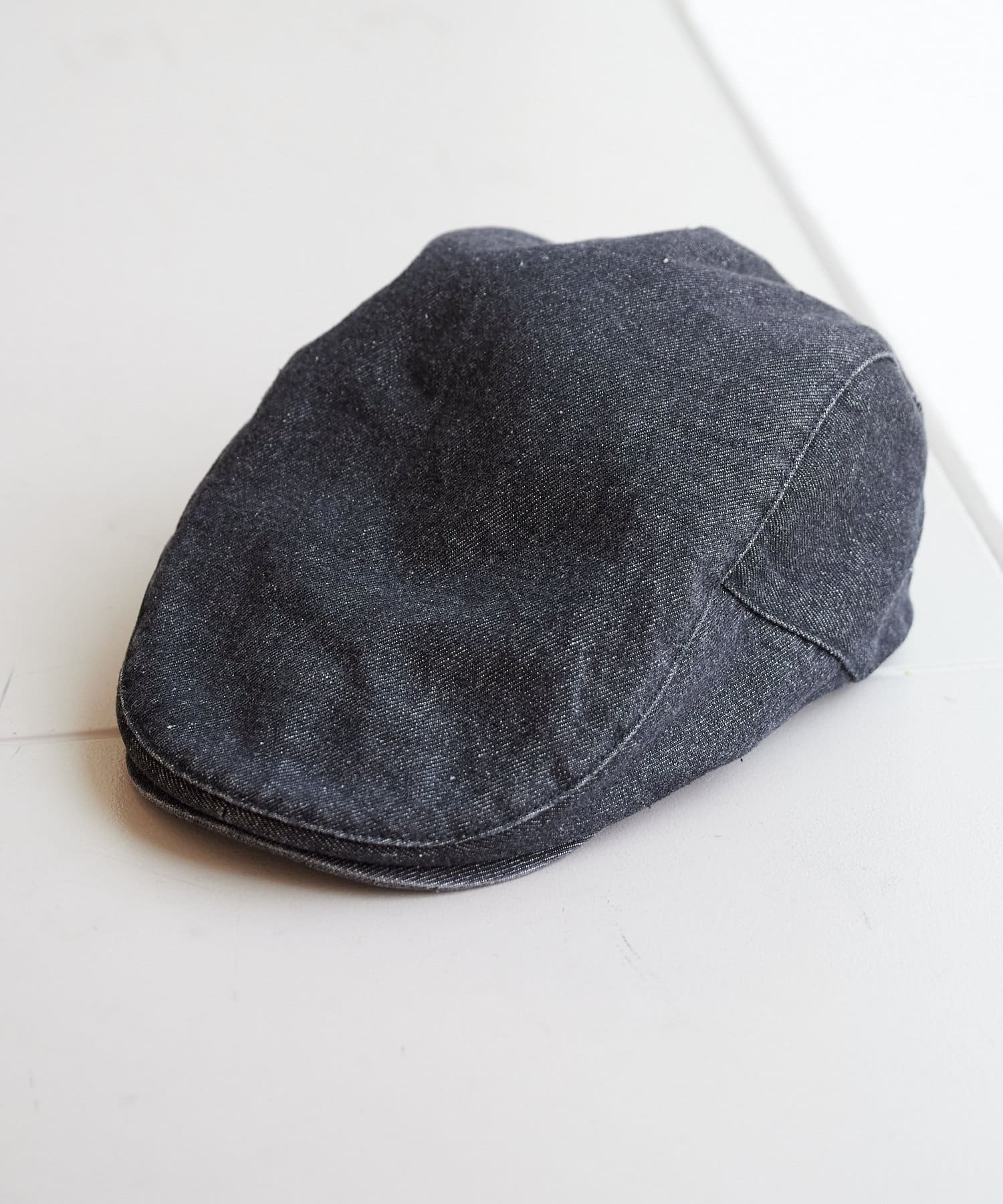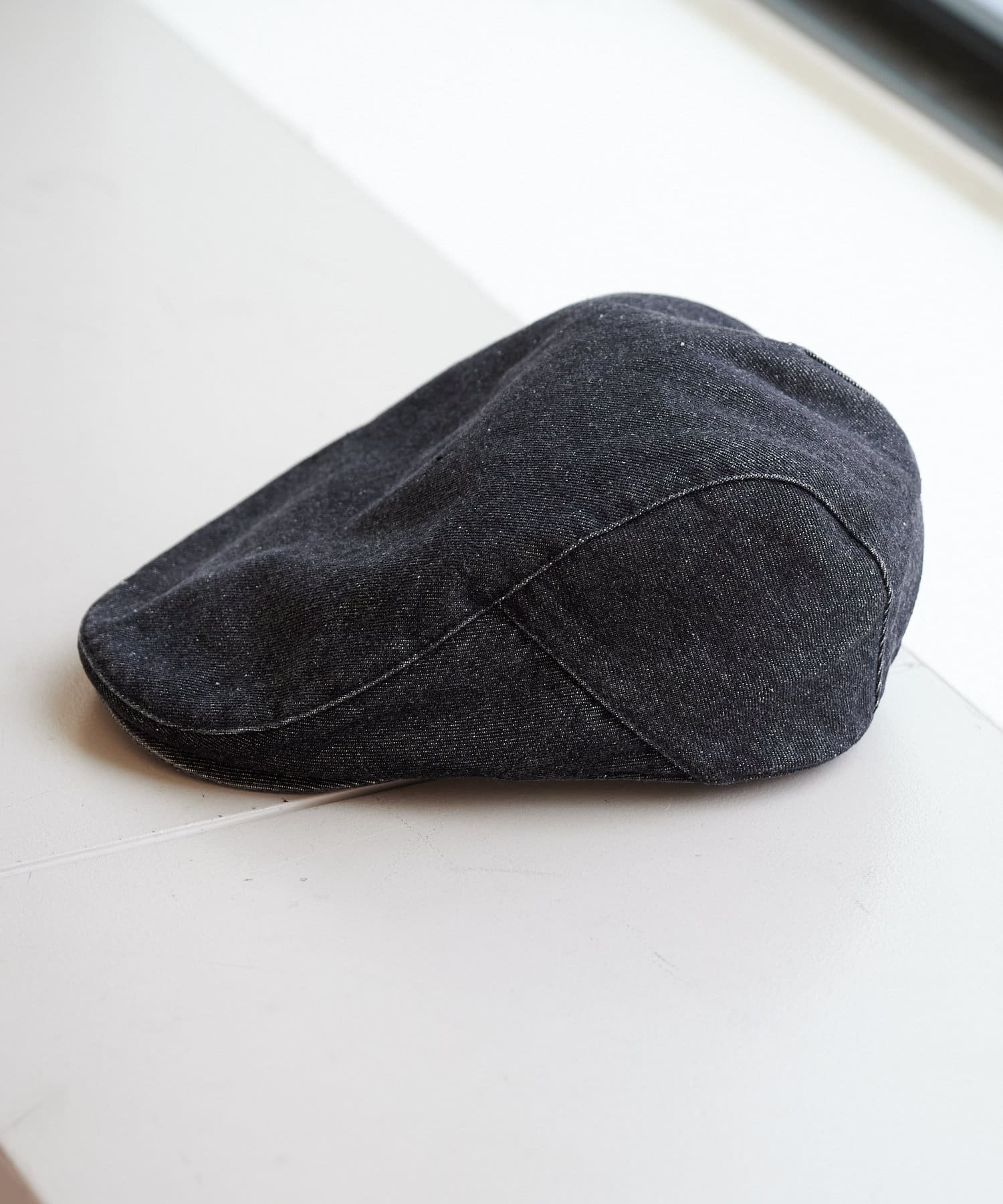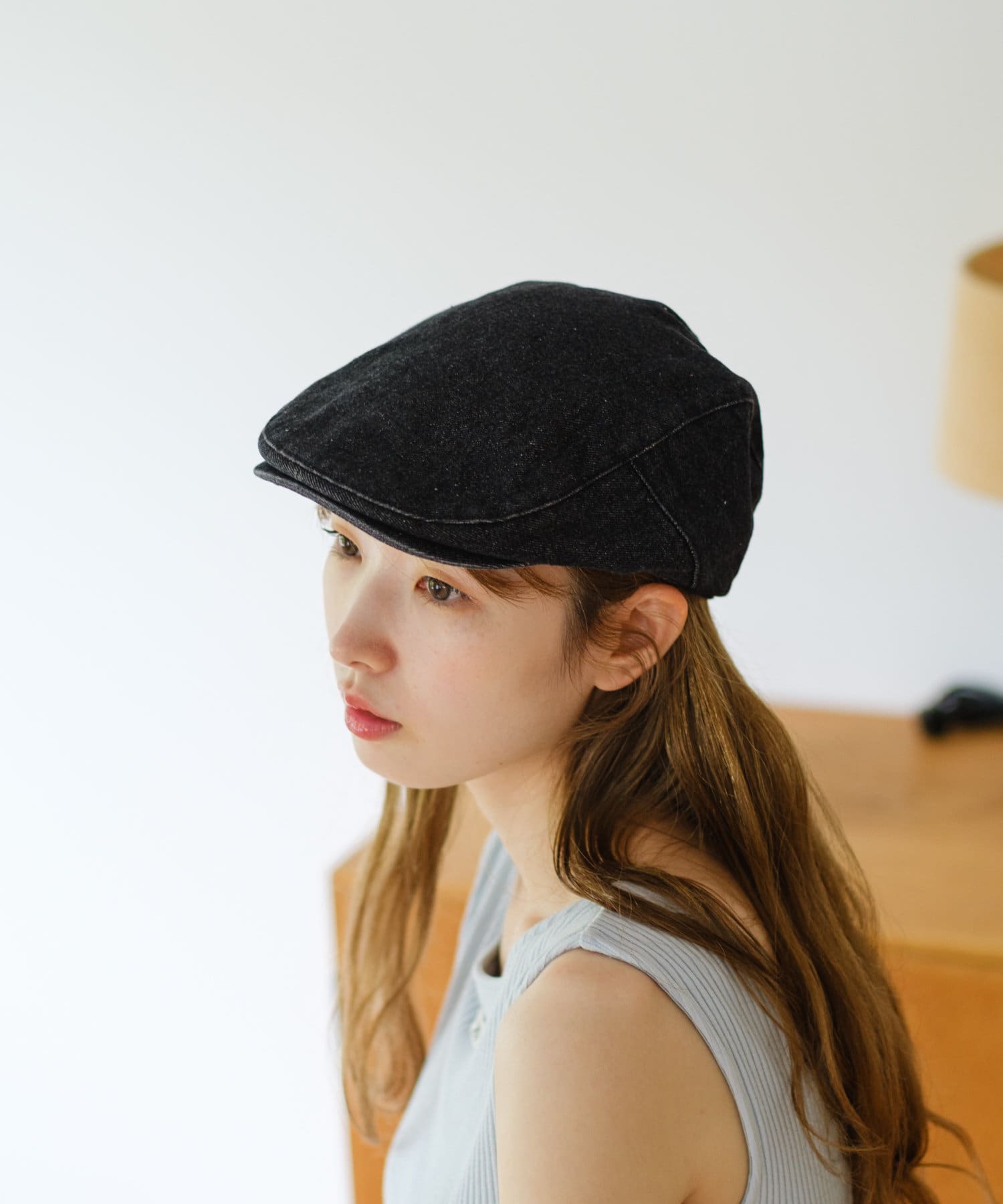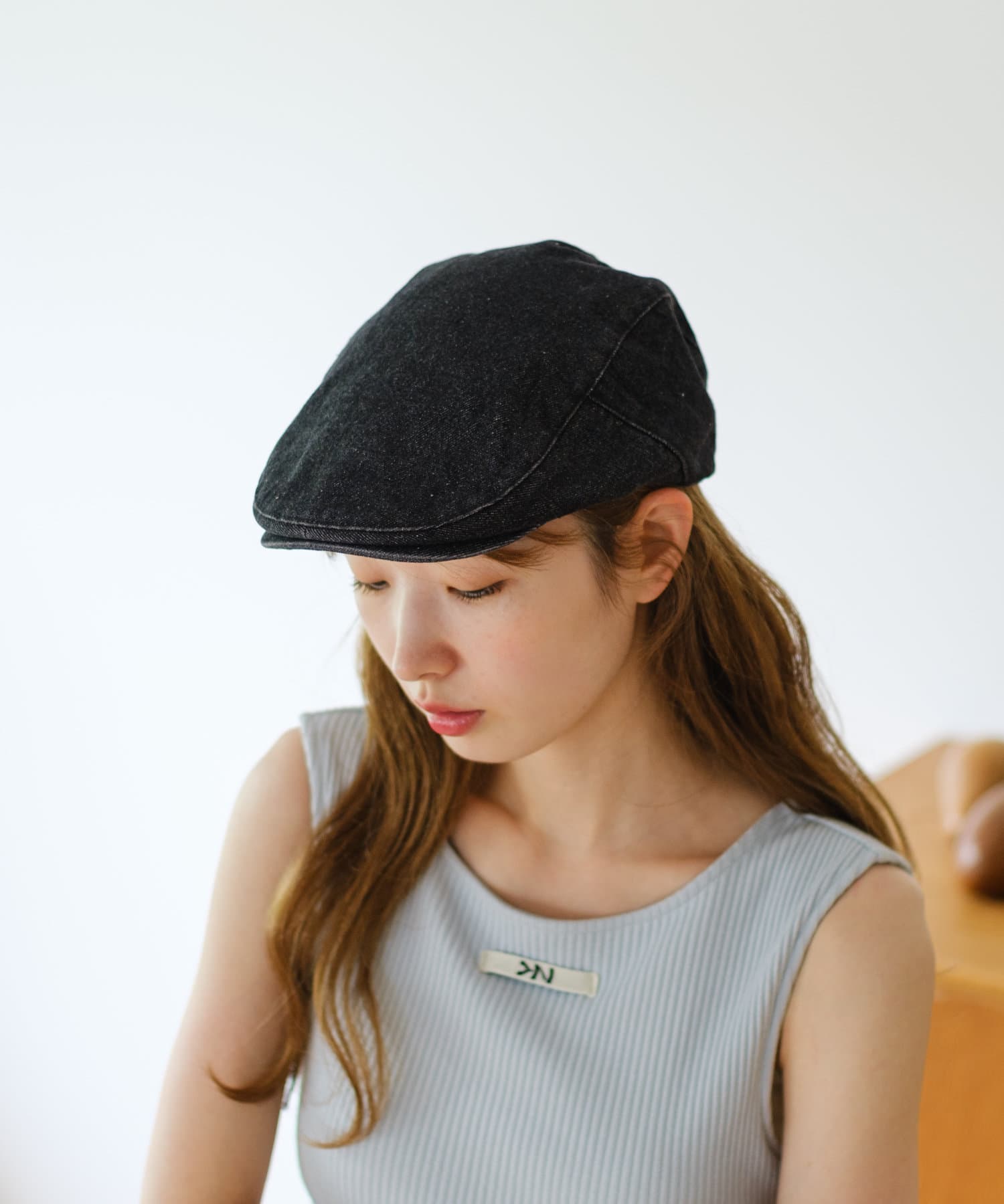 カジュアルながらも大人っぽい雰囲気を演出する、デニム素材のハンチングキャップ。