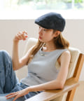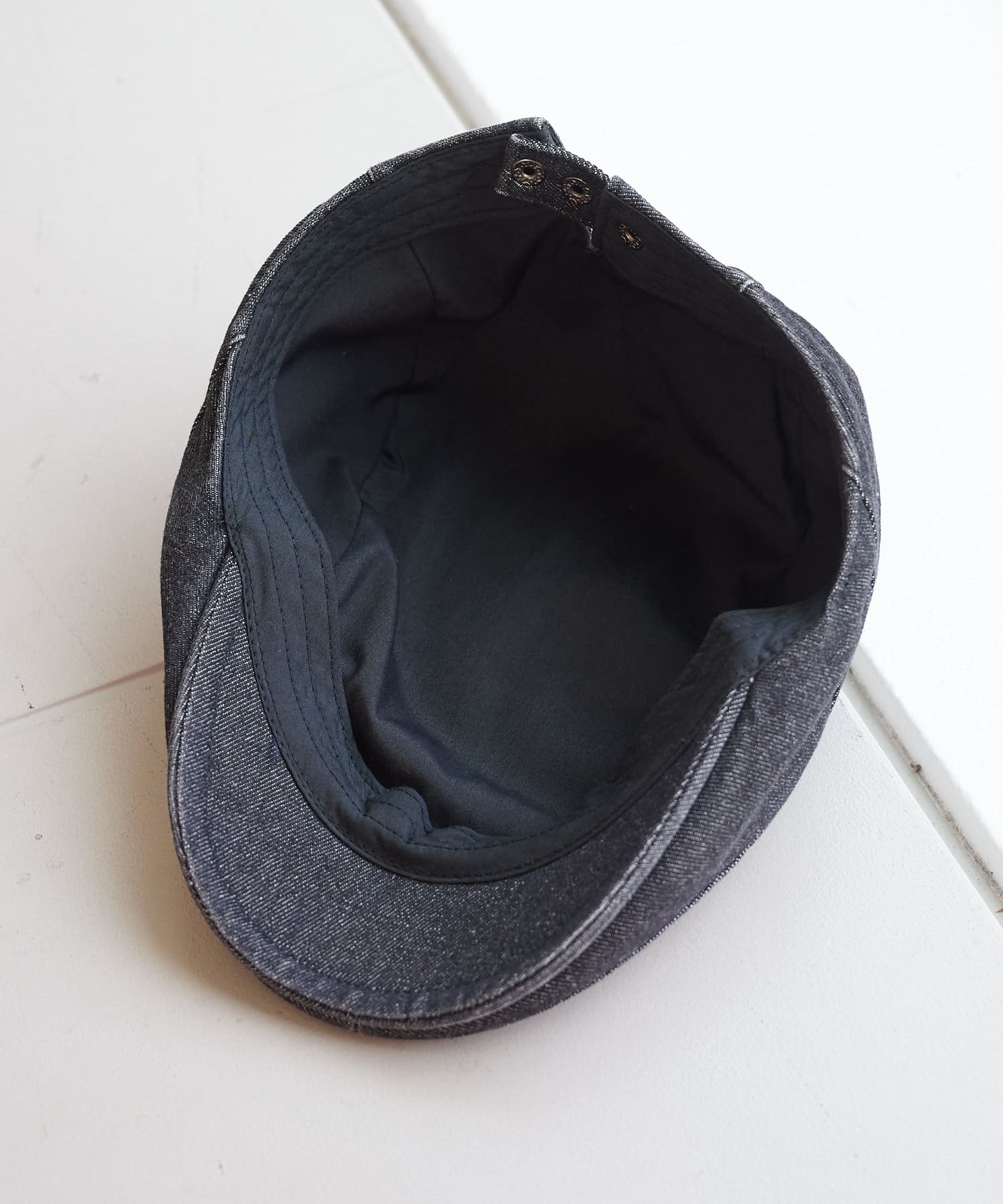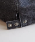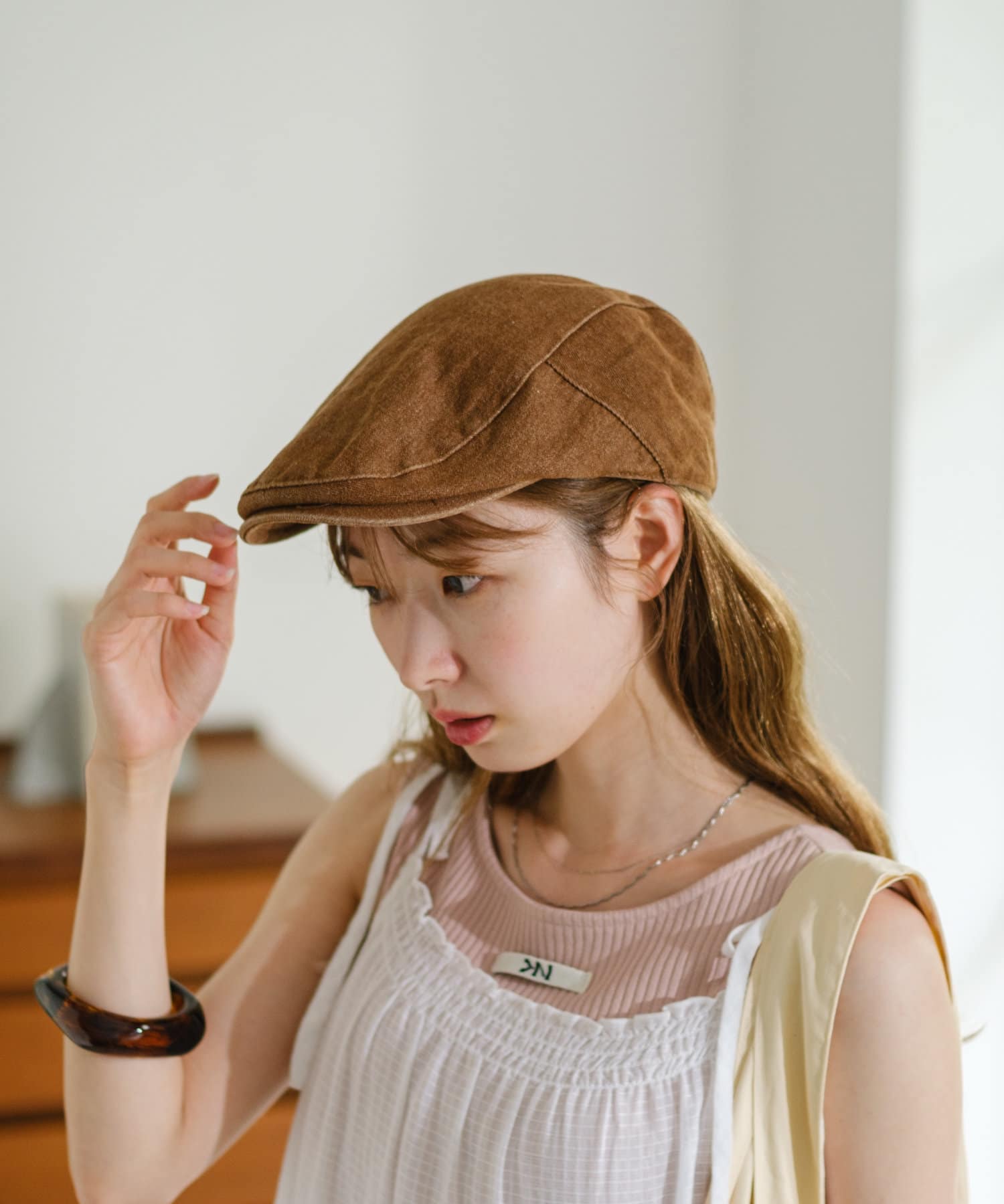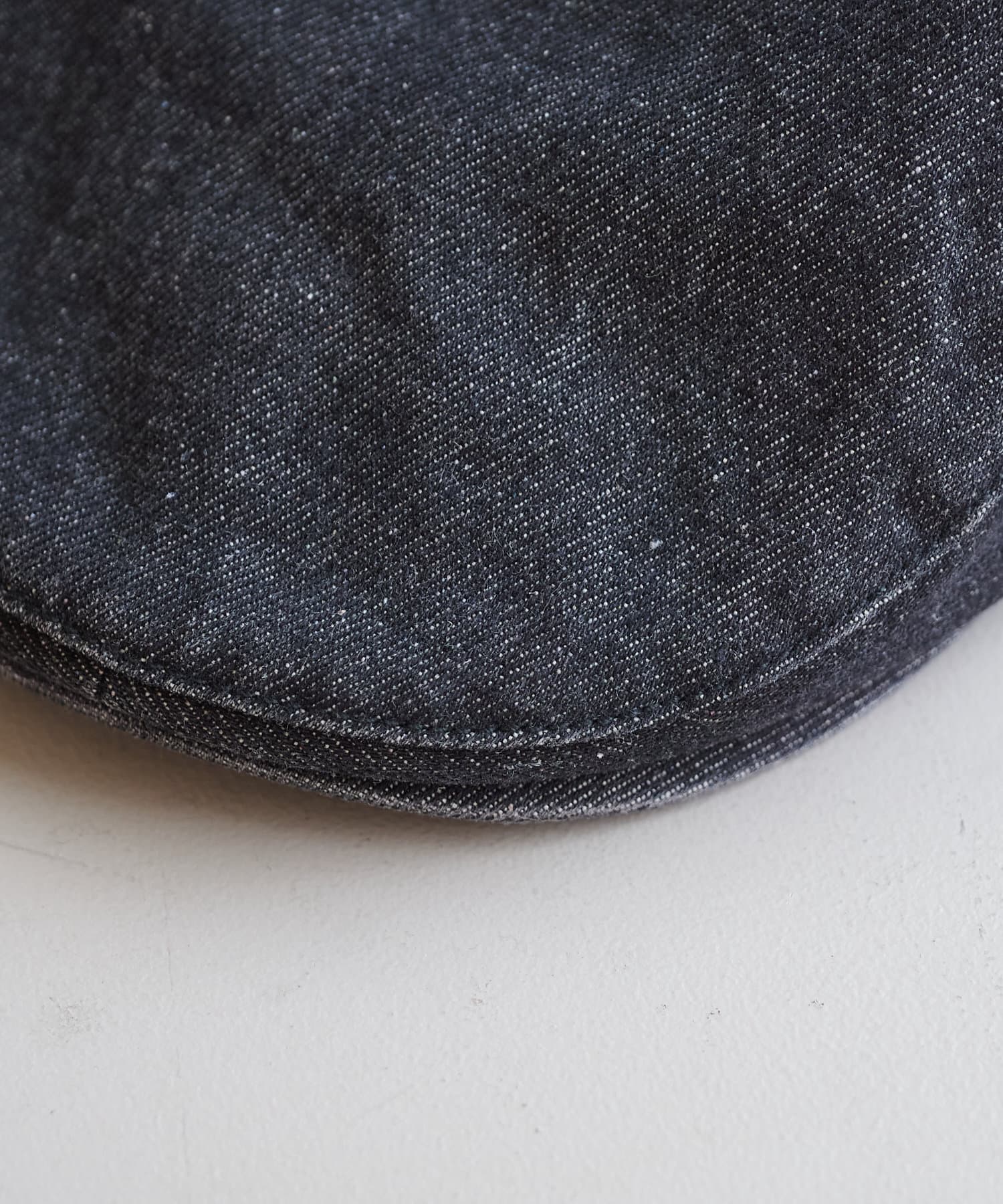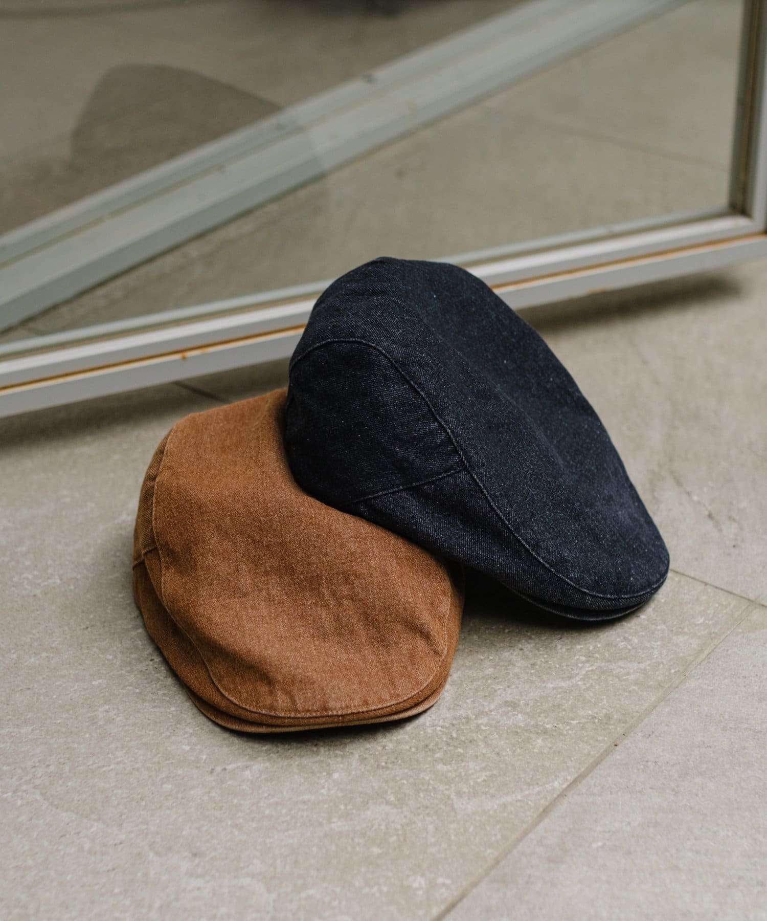 カジュアルながらも大人っぽい雰囲気を演出する、デニム素材のハンチングキャップ。