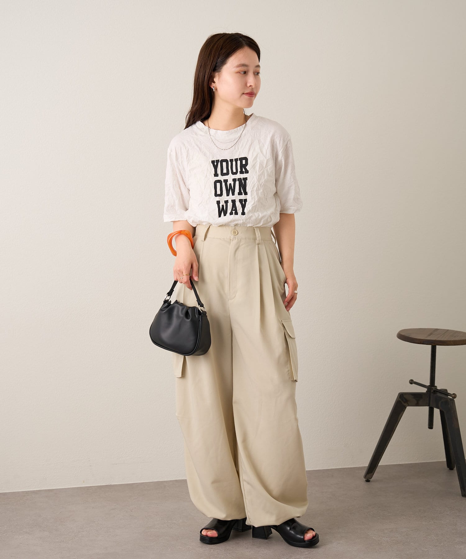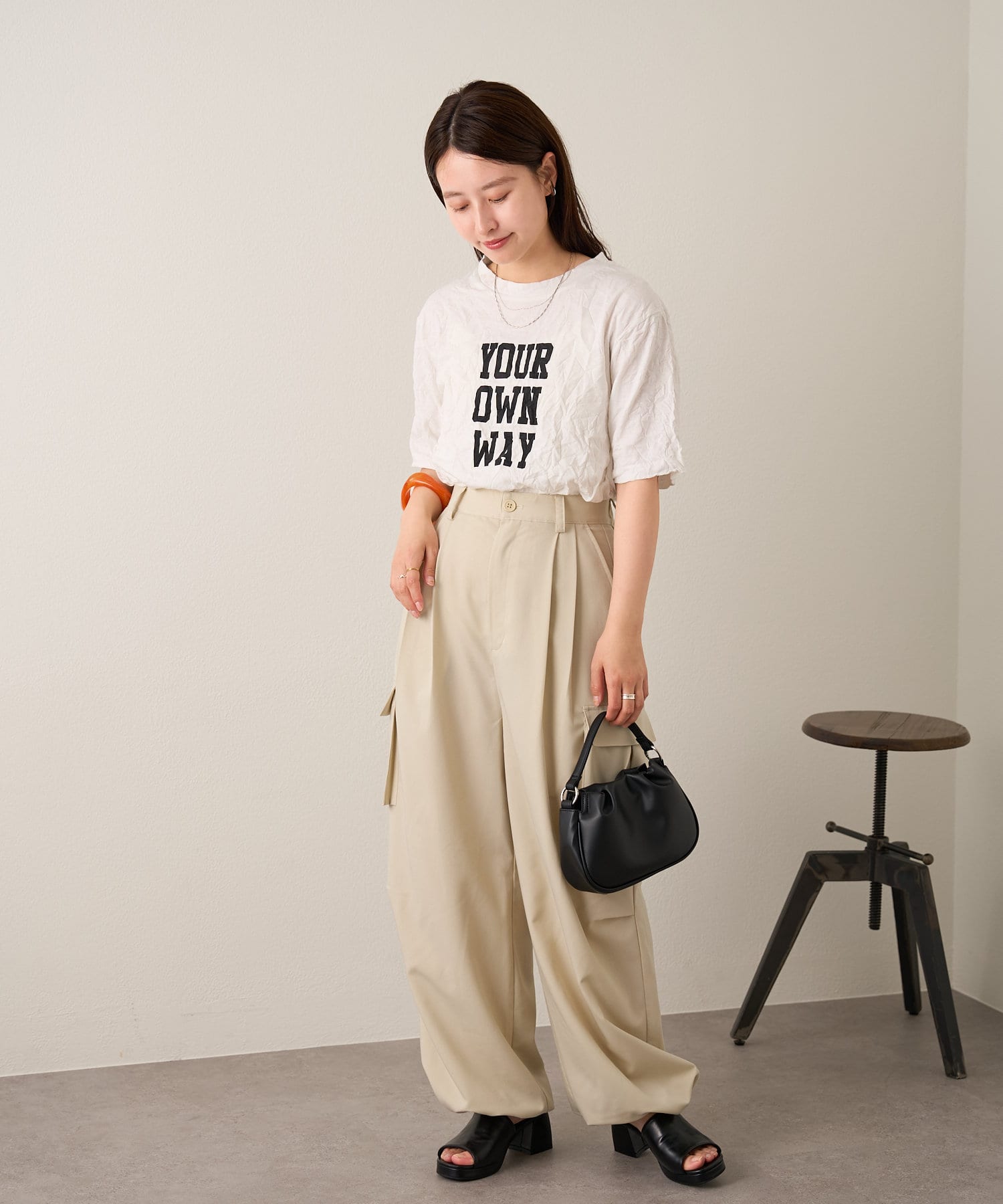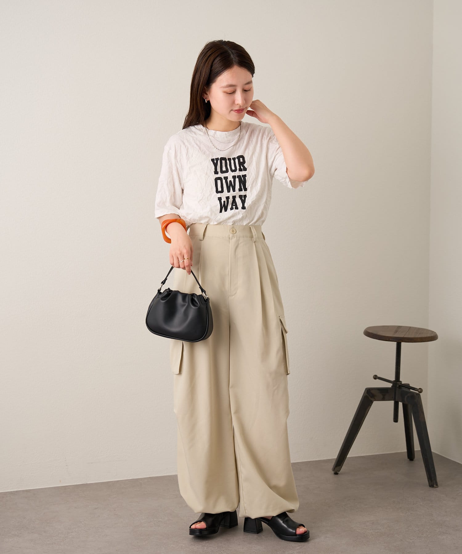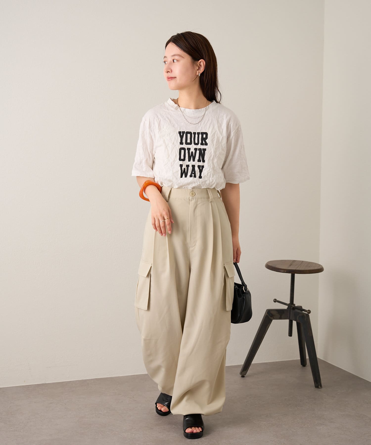 Tシャツやスウェットと合わせてラフに、ブラウスやシャツと合わせればきれいめコーデにも◎