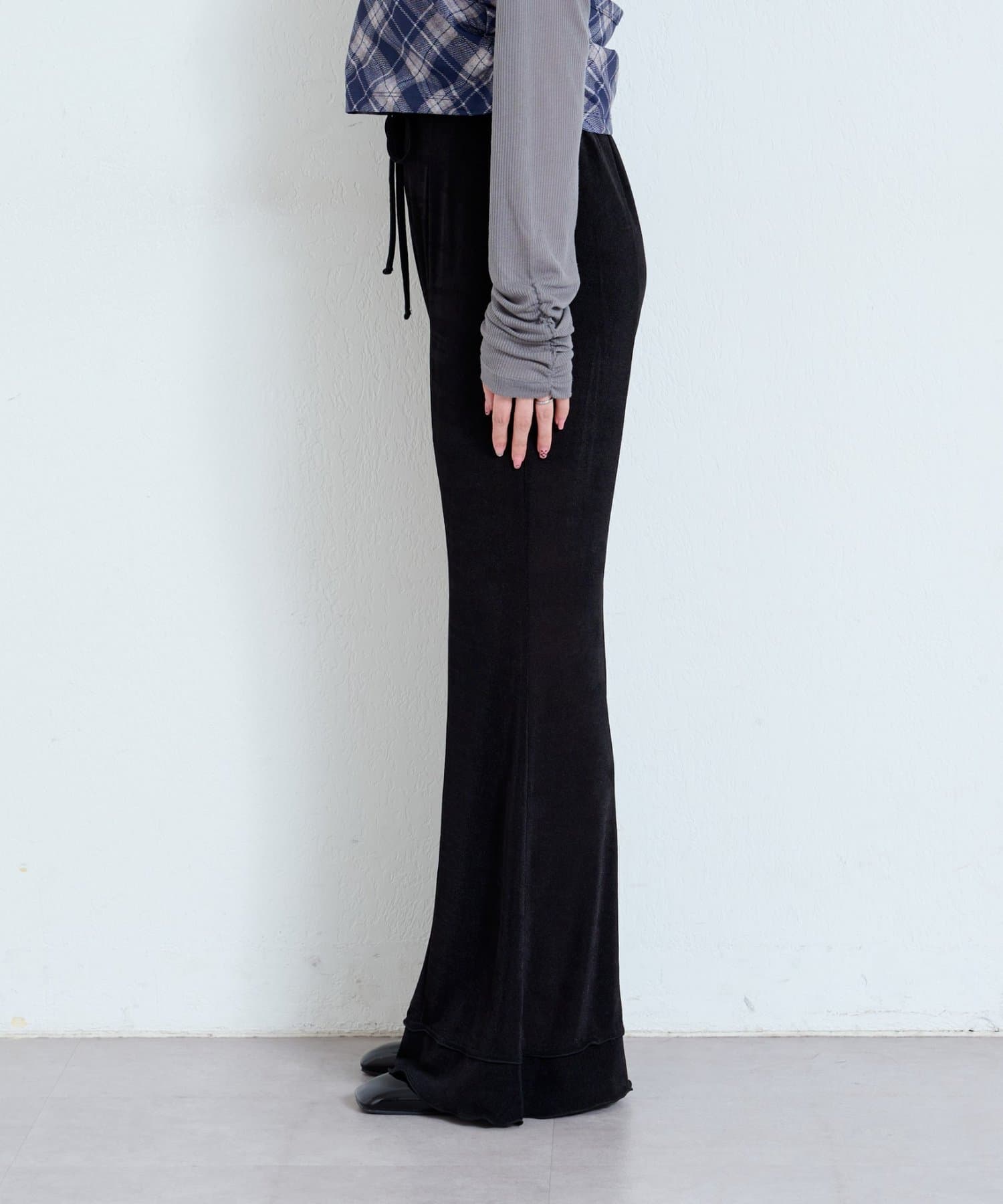【新色追加/低身長サイズ/2サイズ展開】シアーリブフレアパンツ