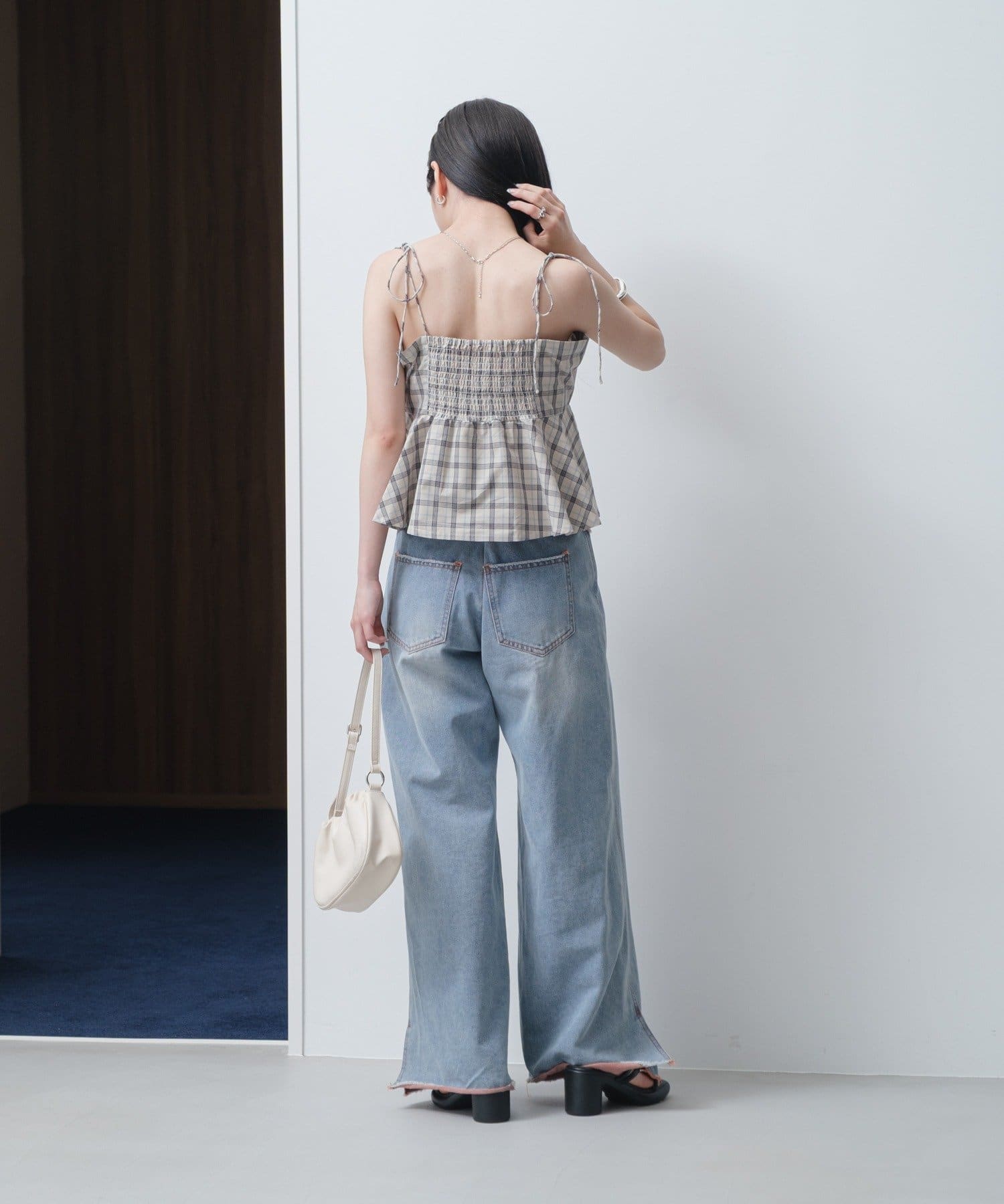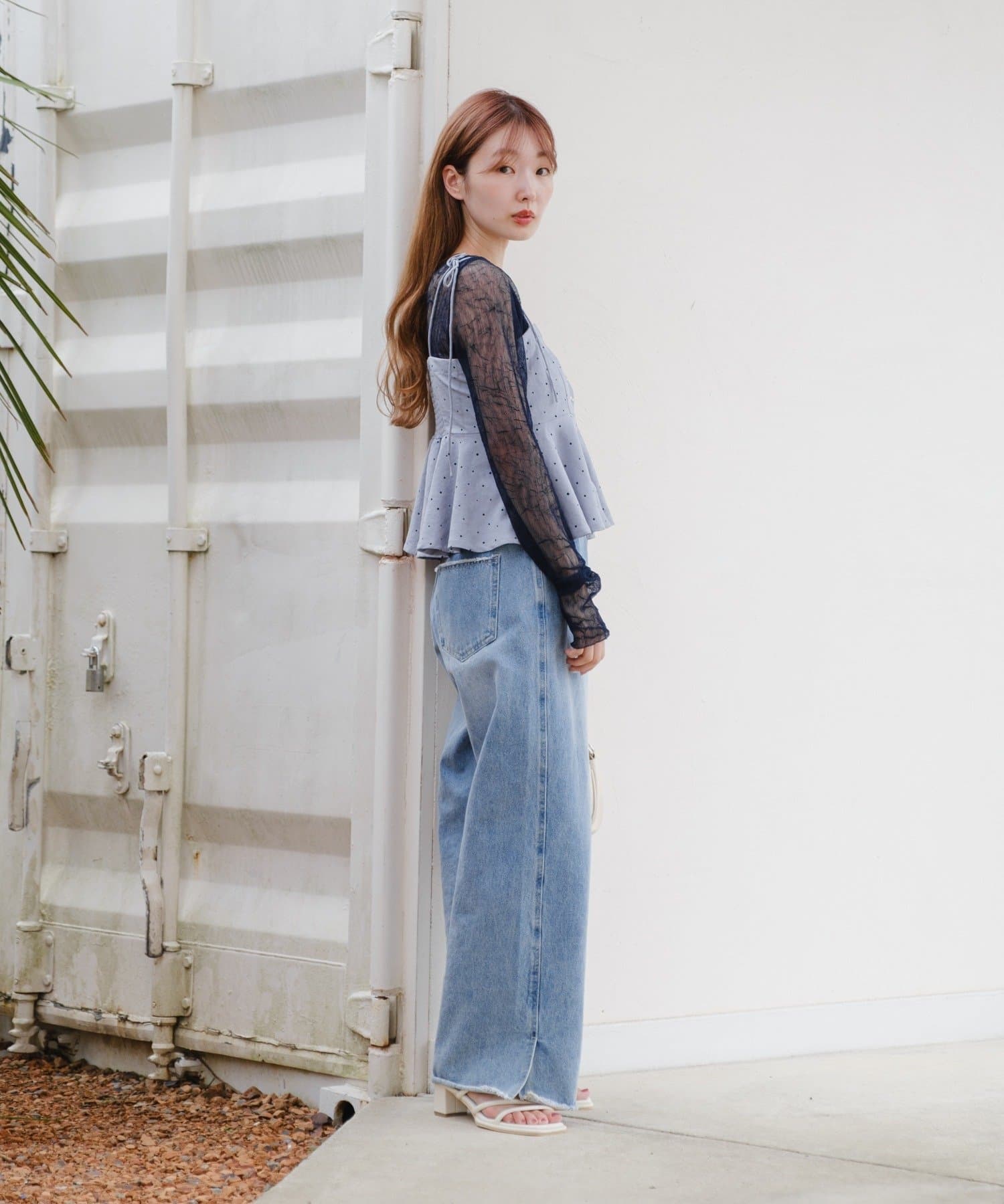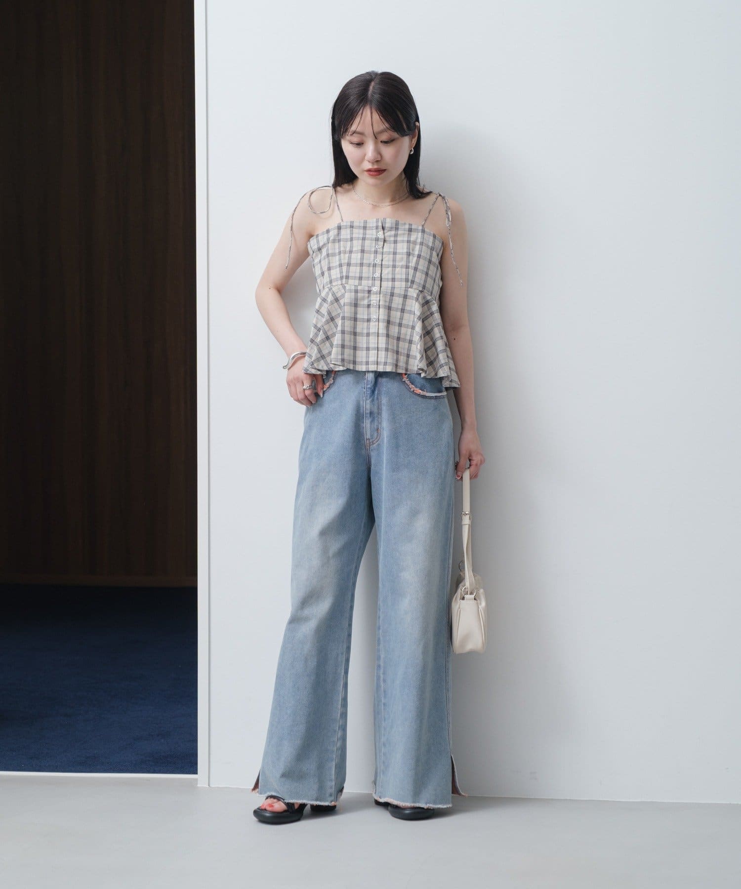 短丈のペプラムデザインなので、ワイドなボトムと合わせても重たくなりにくいです。