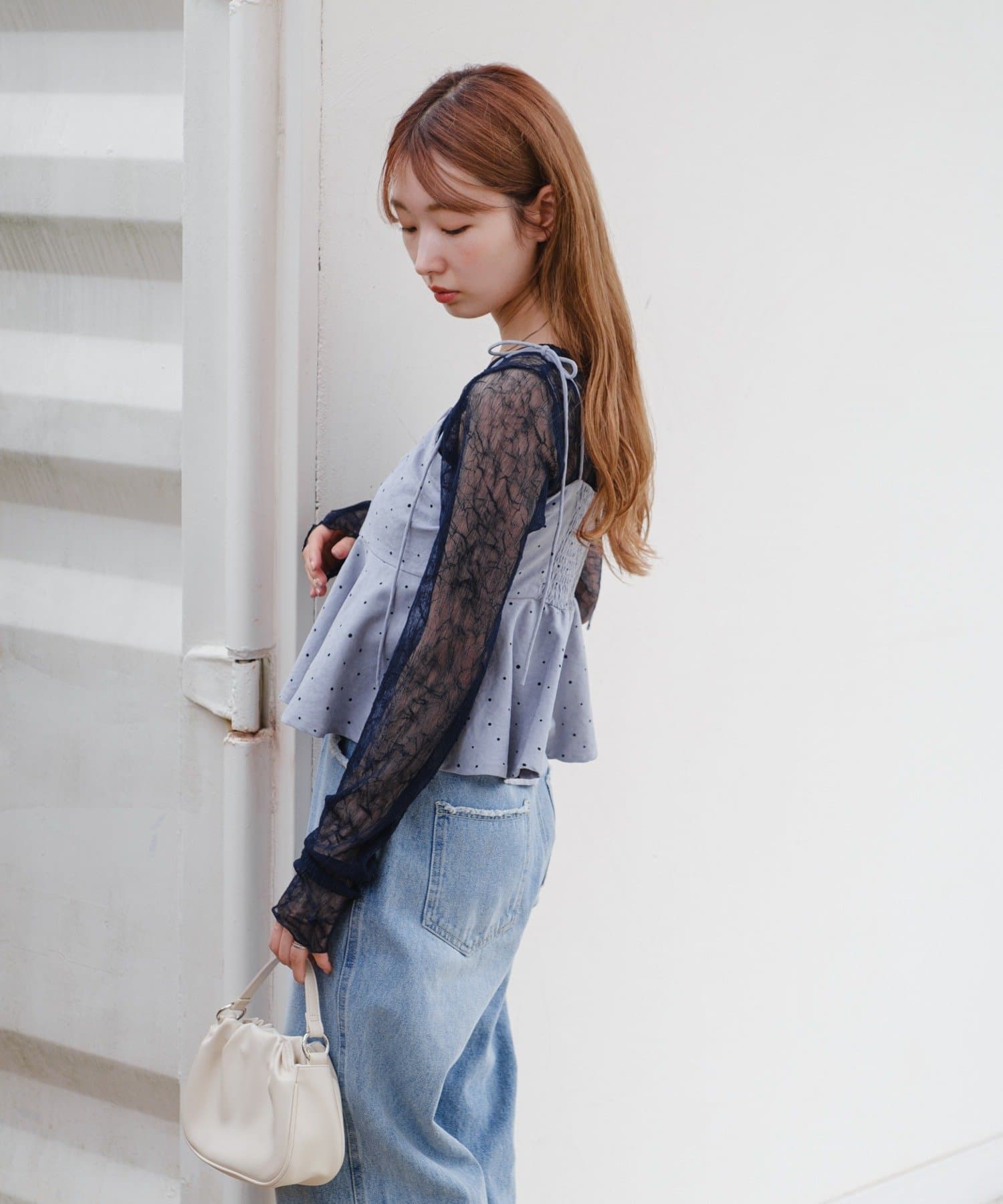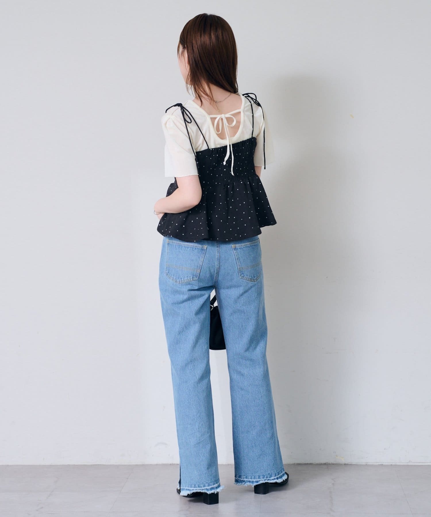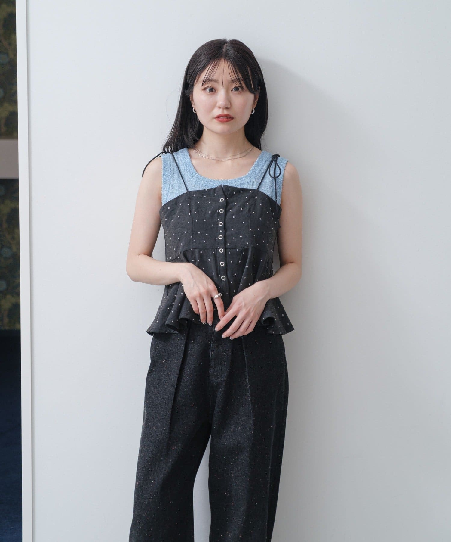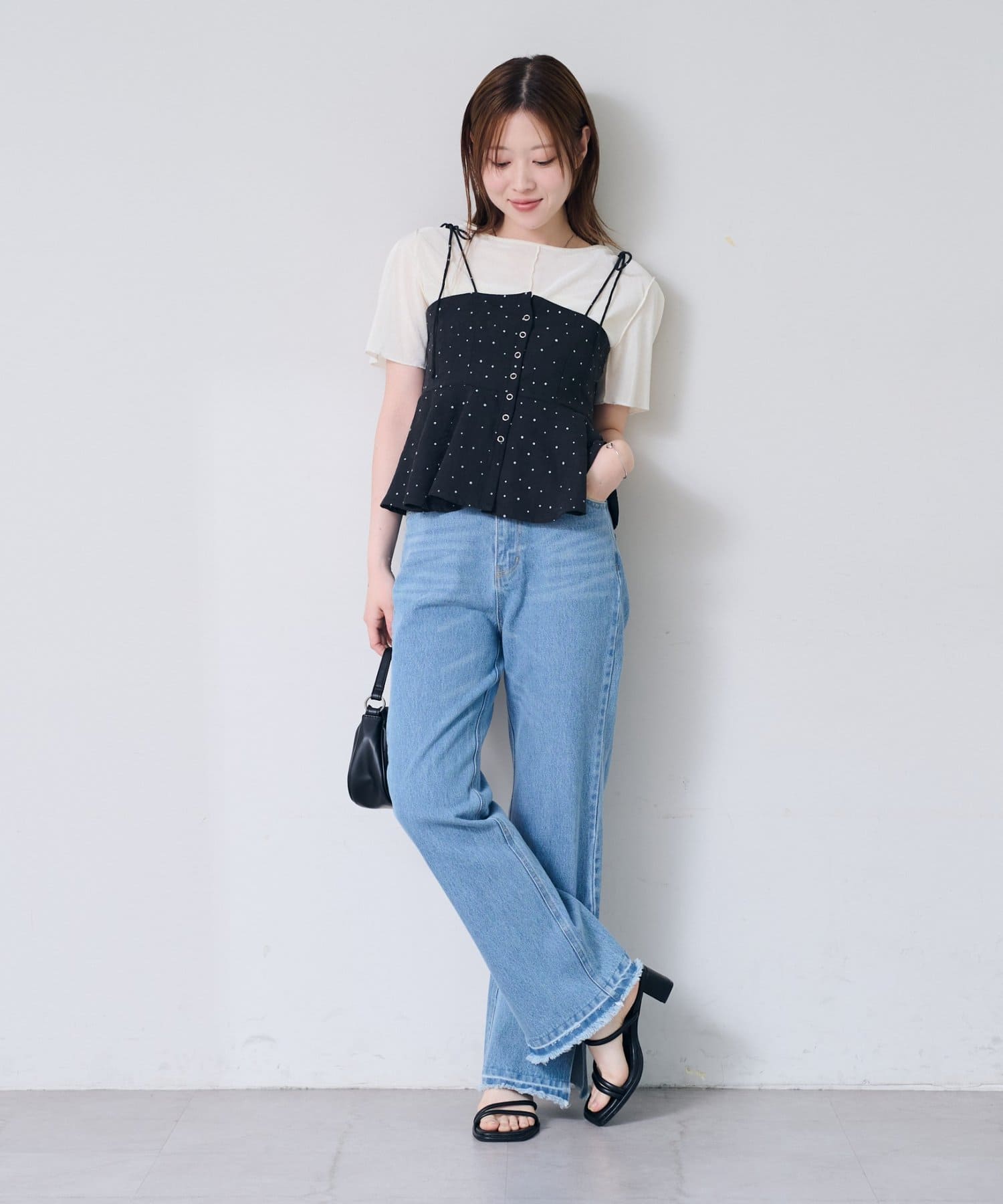 短丈のペプラムデザインなので、ワイドなボトムと合わせても重たくなりにくいです。