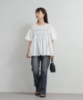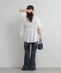 ゆとりあるシルエットなので、ストレートデニムや落ち感のあるスラックス、フレアパンツも相性◎