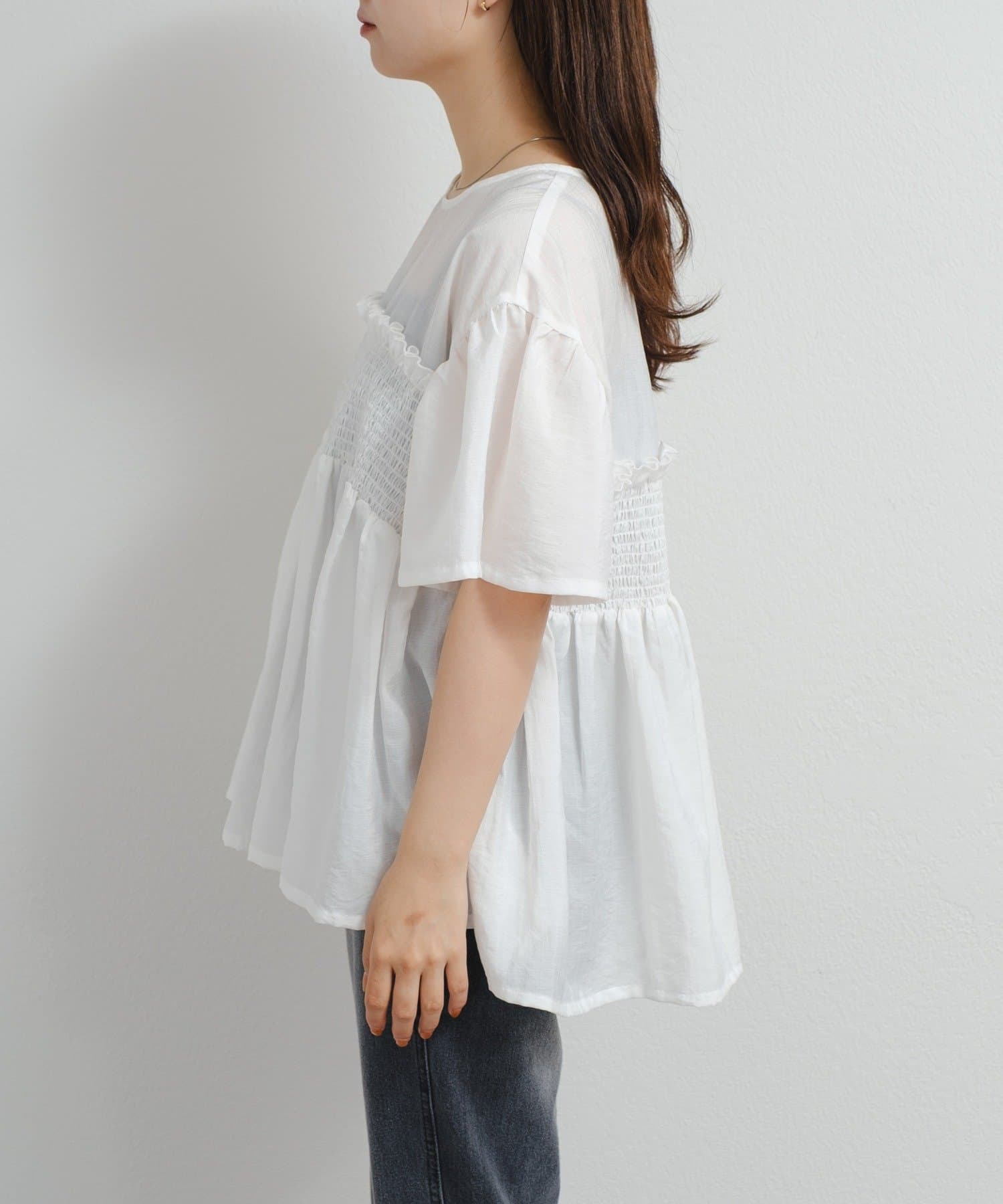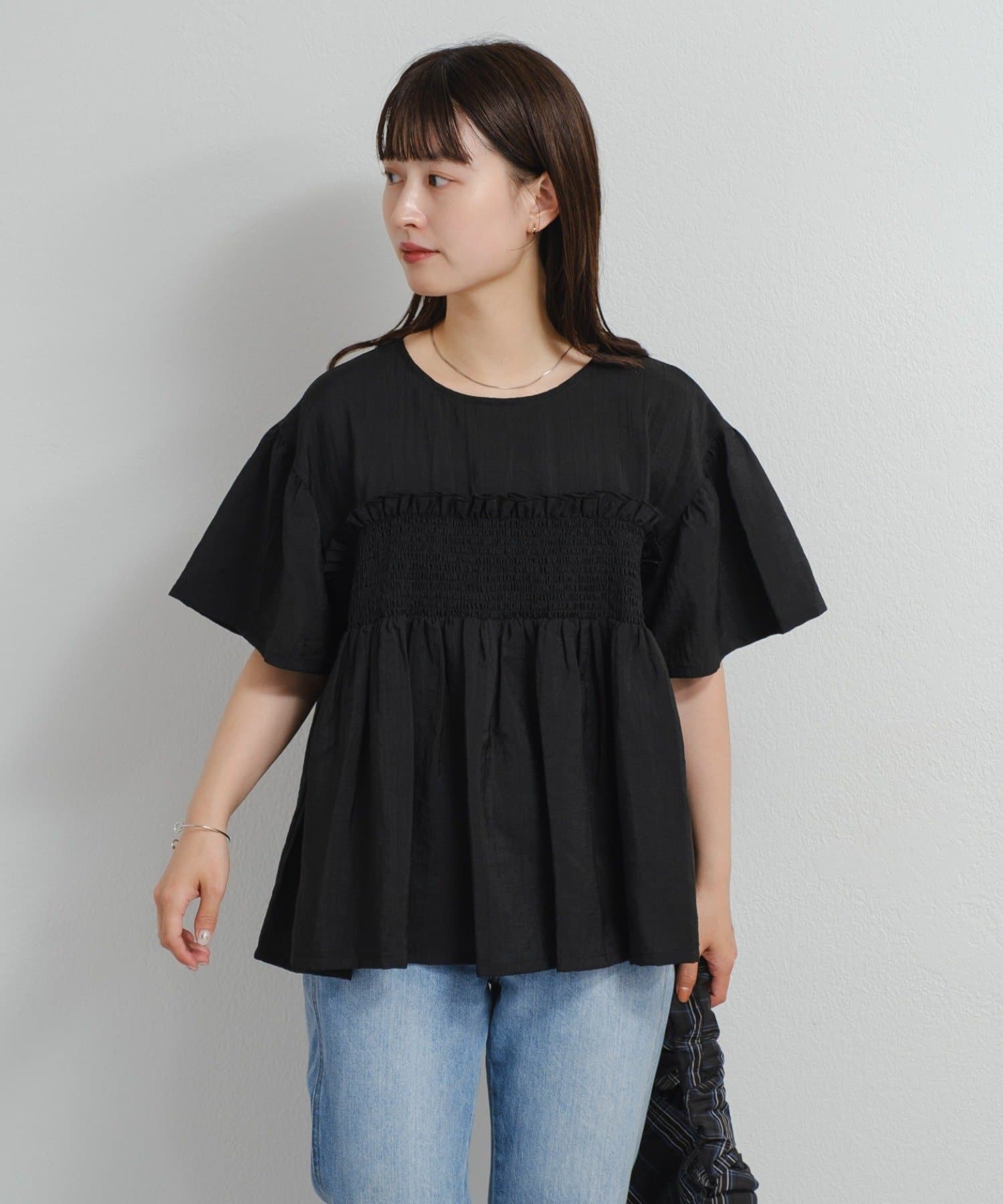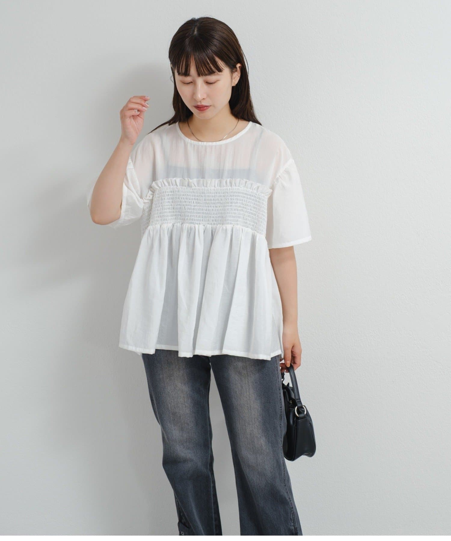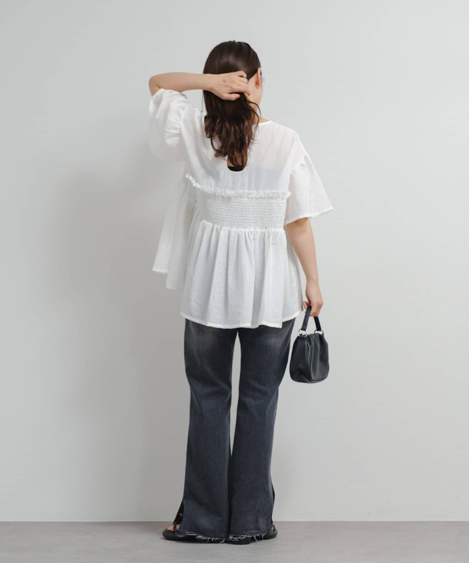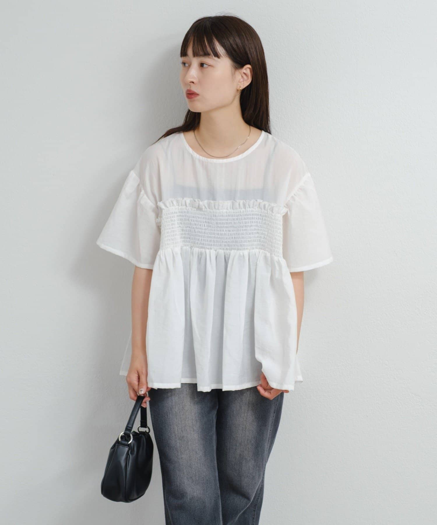 胸元のシャーリングデザインですっきりとした印象も与えられます。