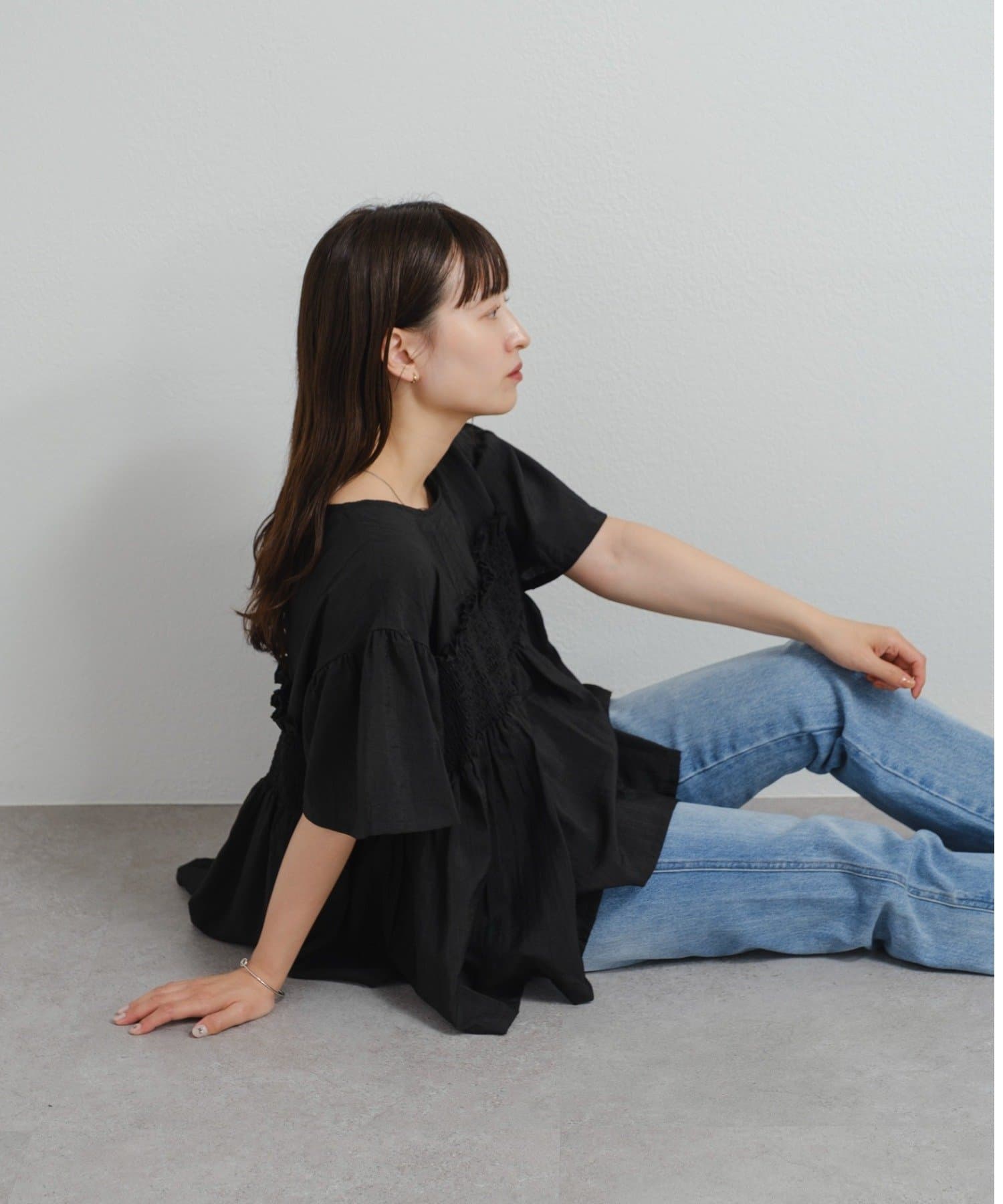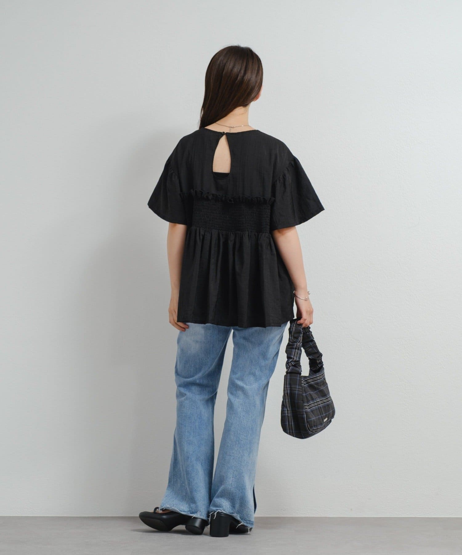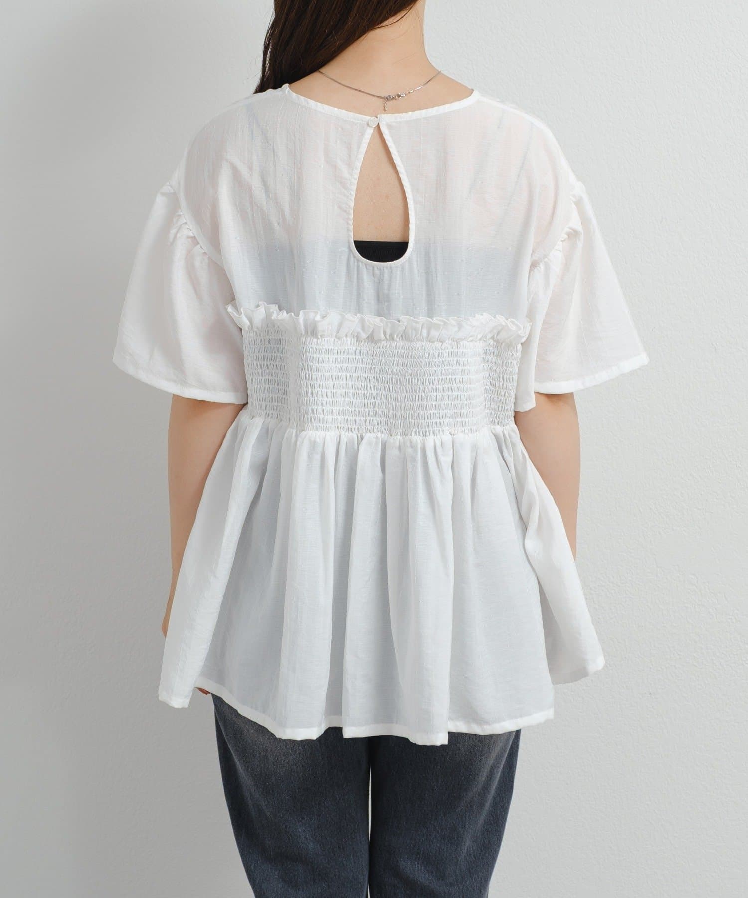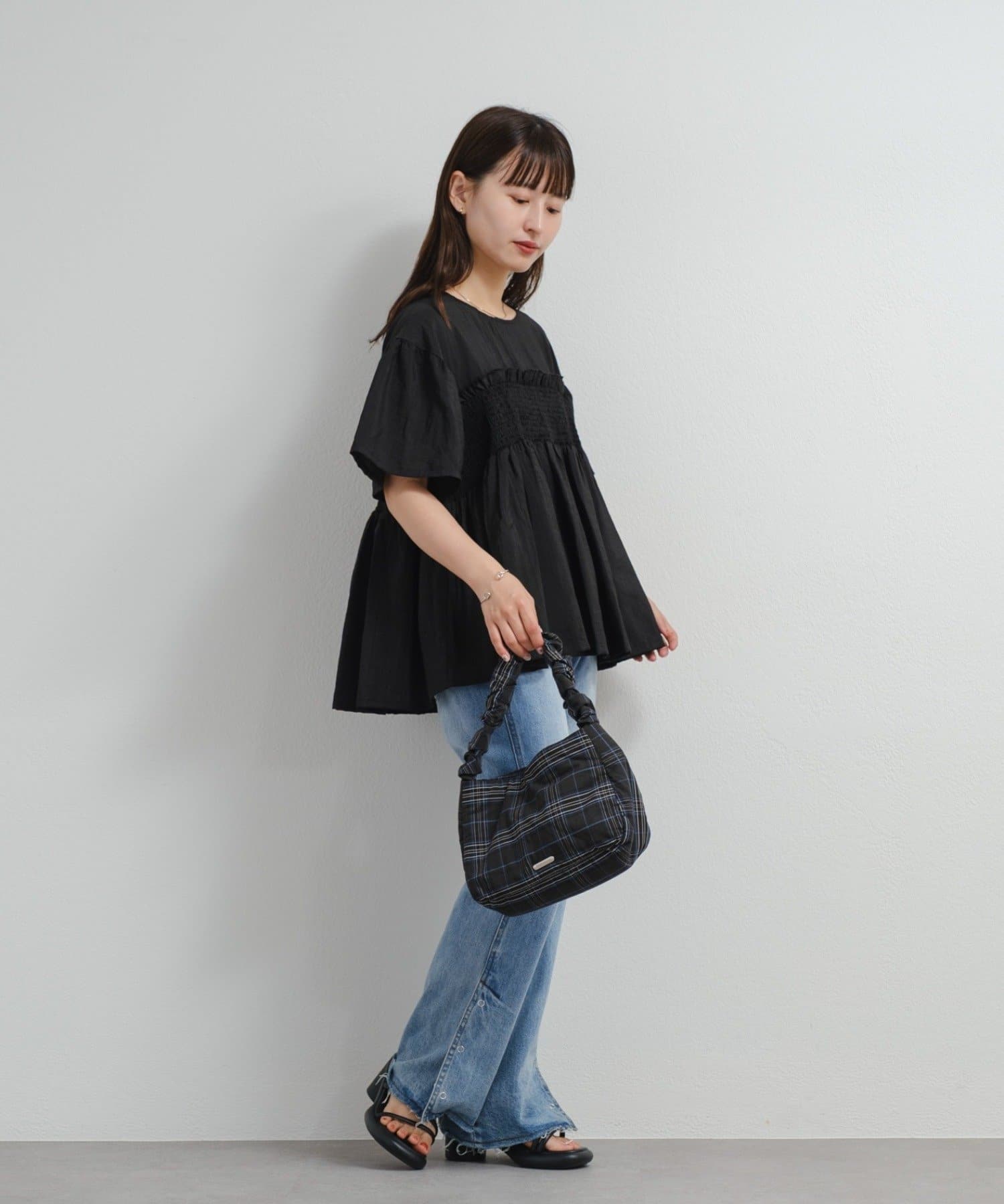胸元のシャーリングデザインですっきりとした印象も与えられます。