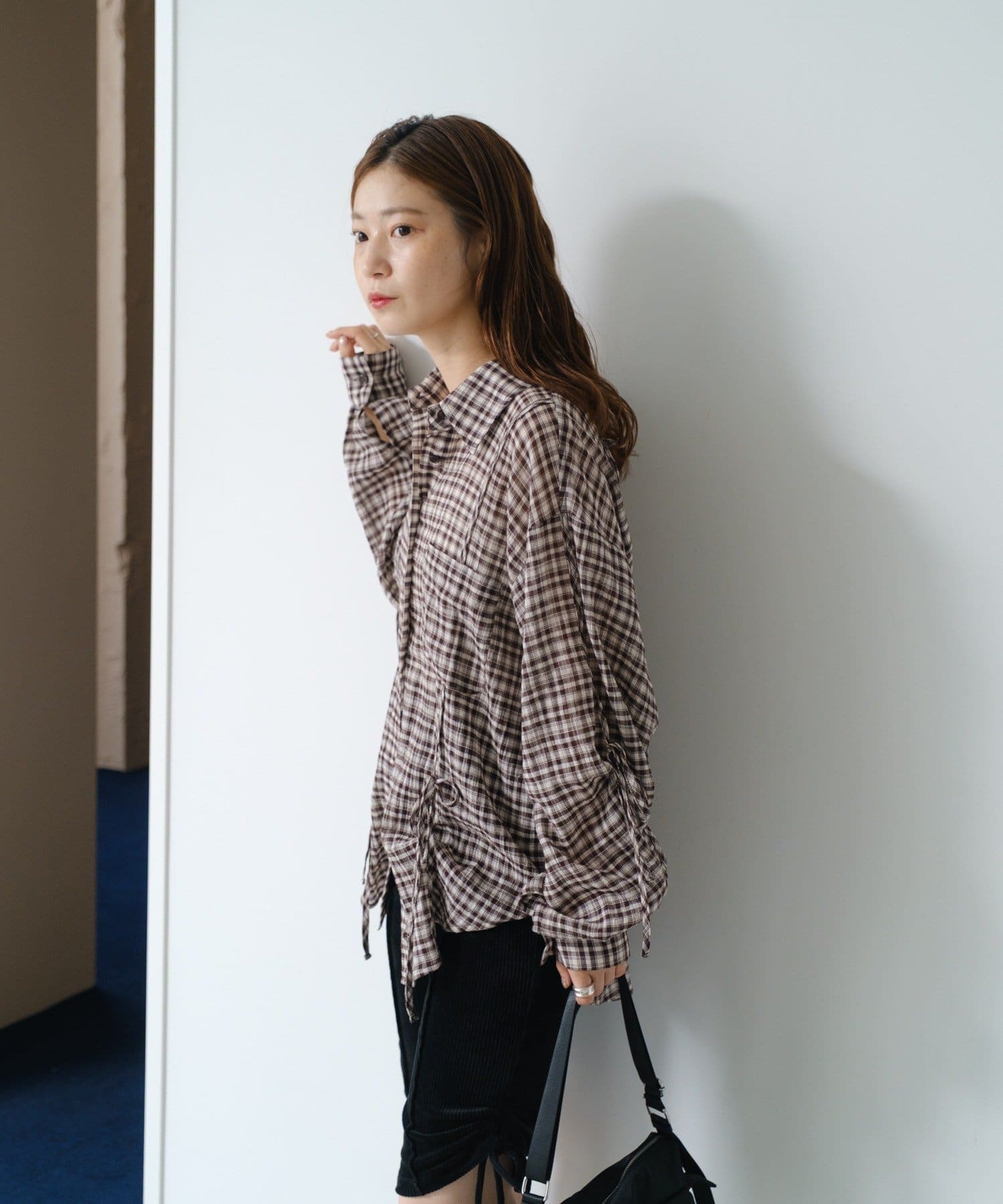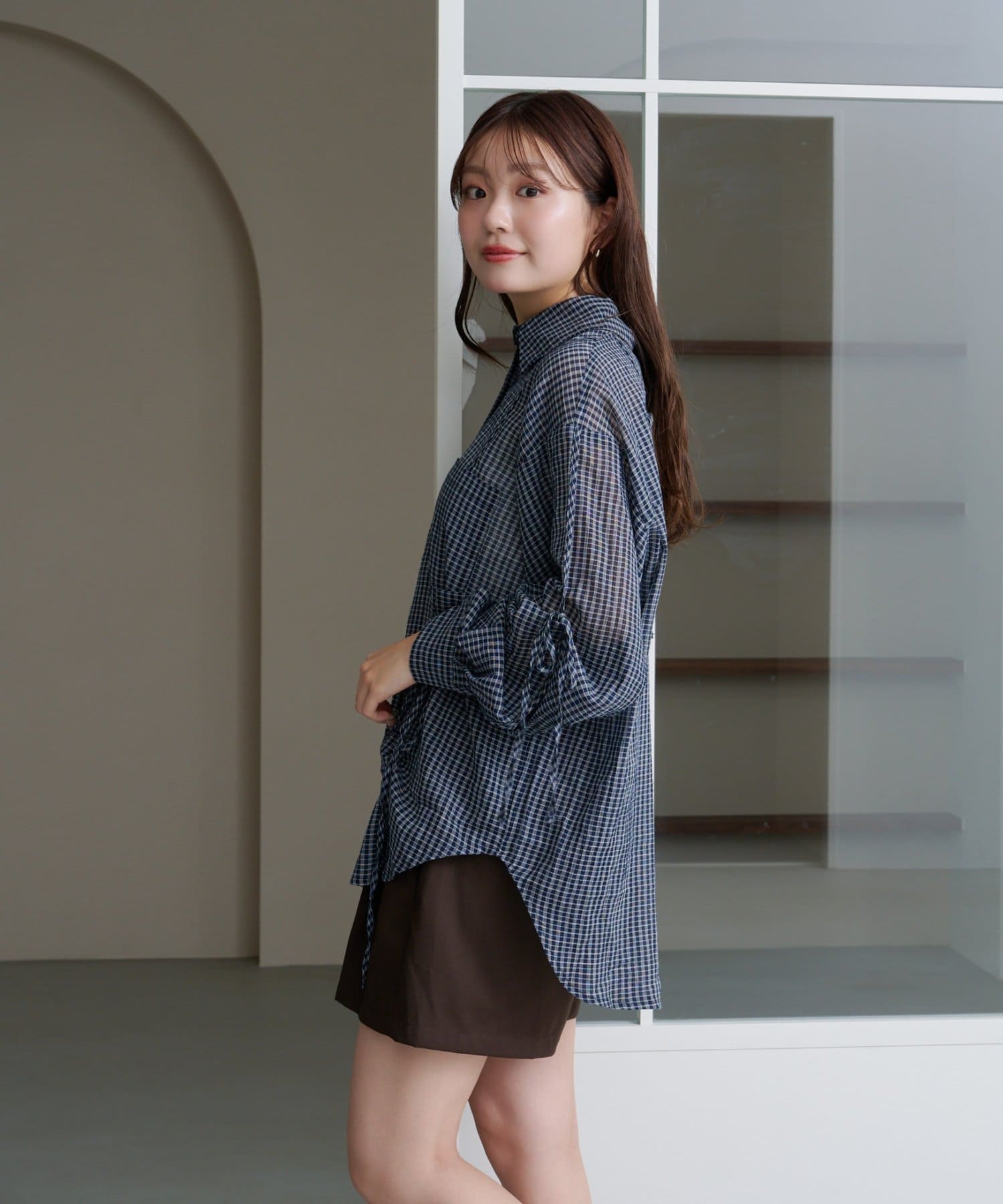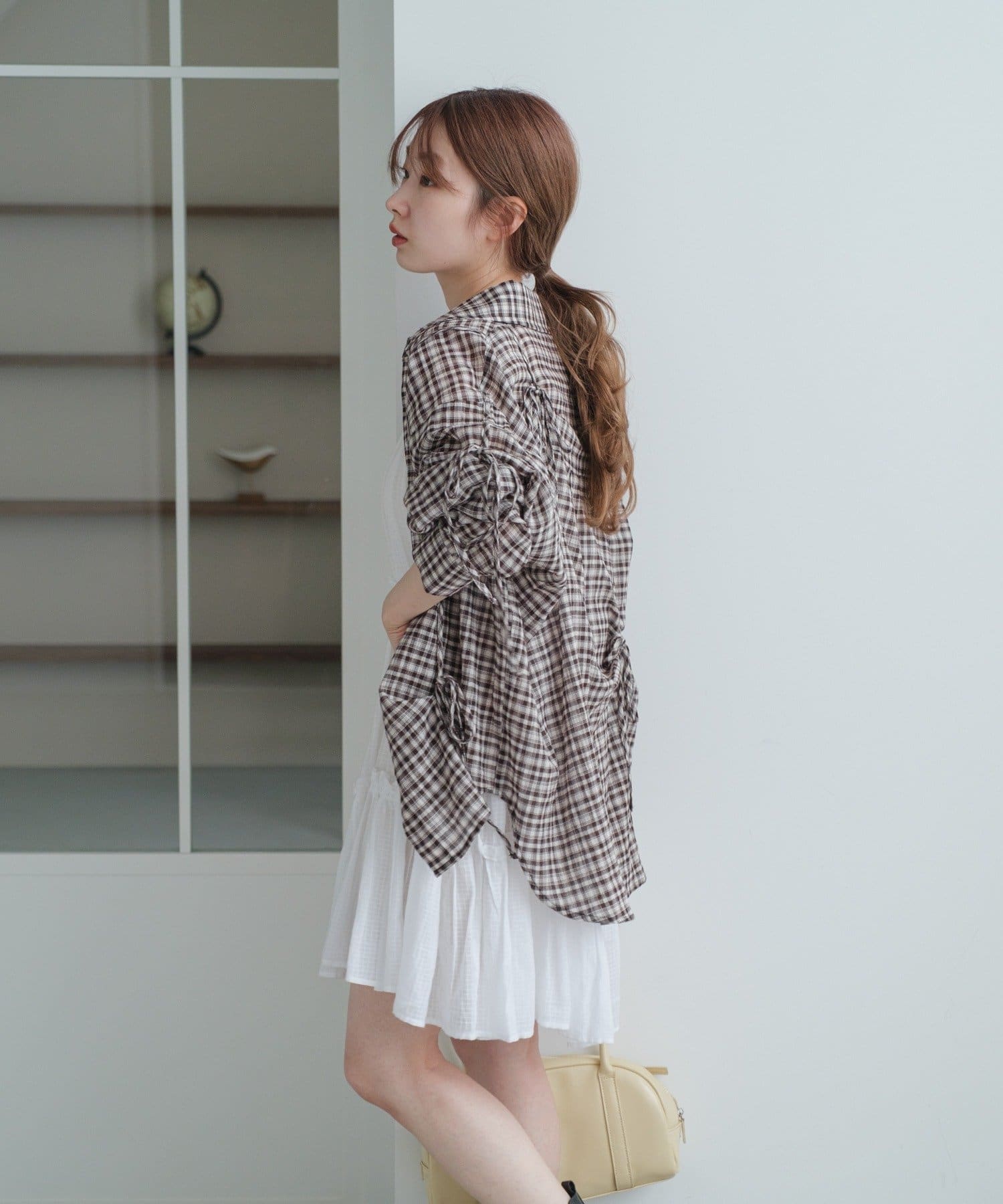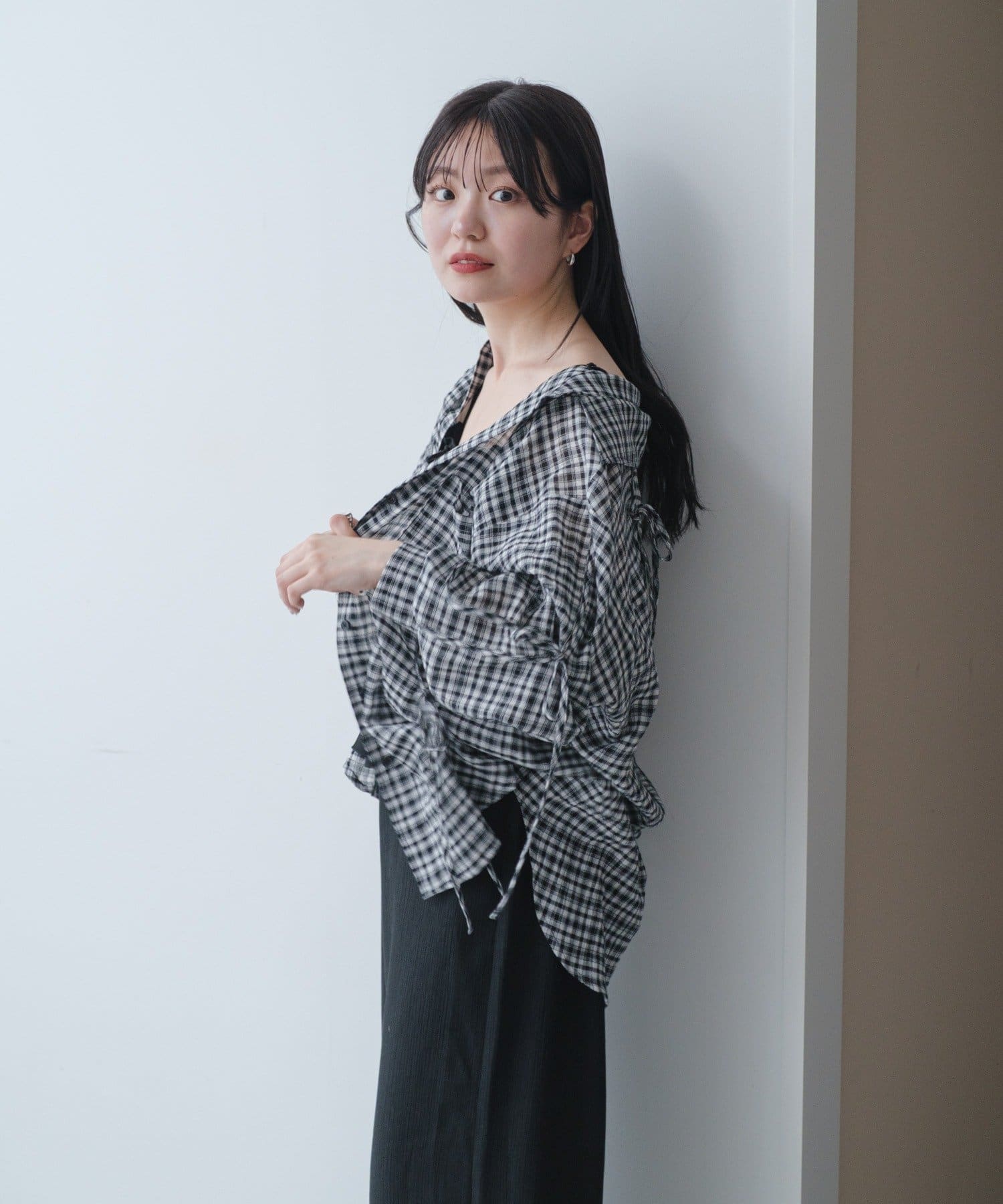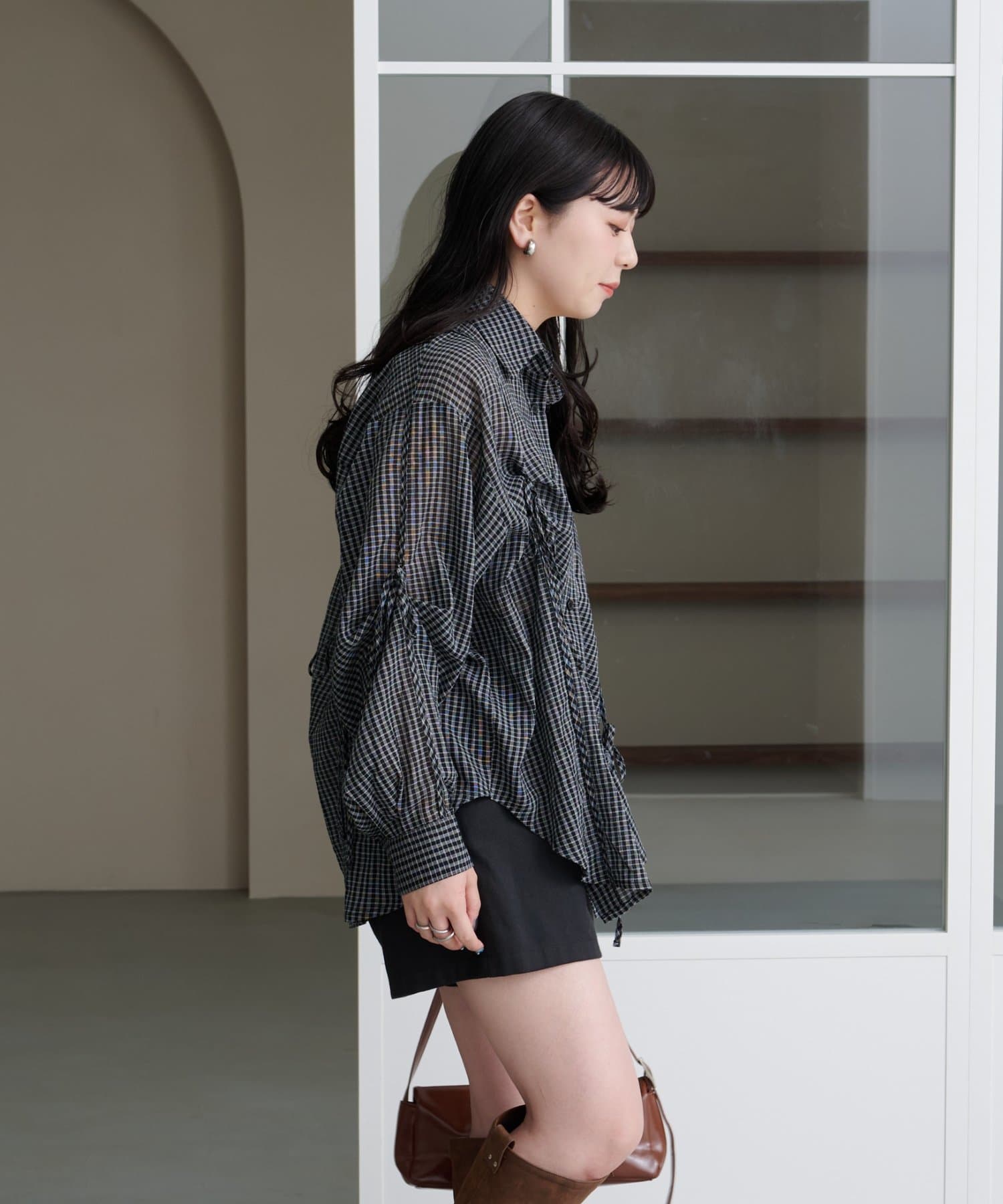 【新色追加/S.Mサイズ展開】チェックギャザーシャツ