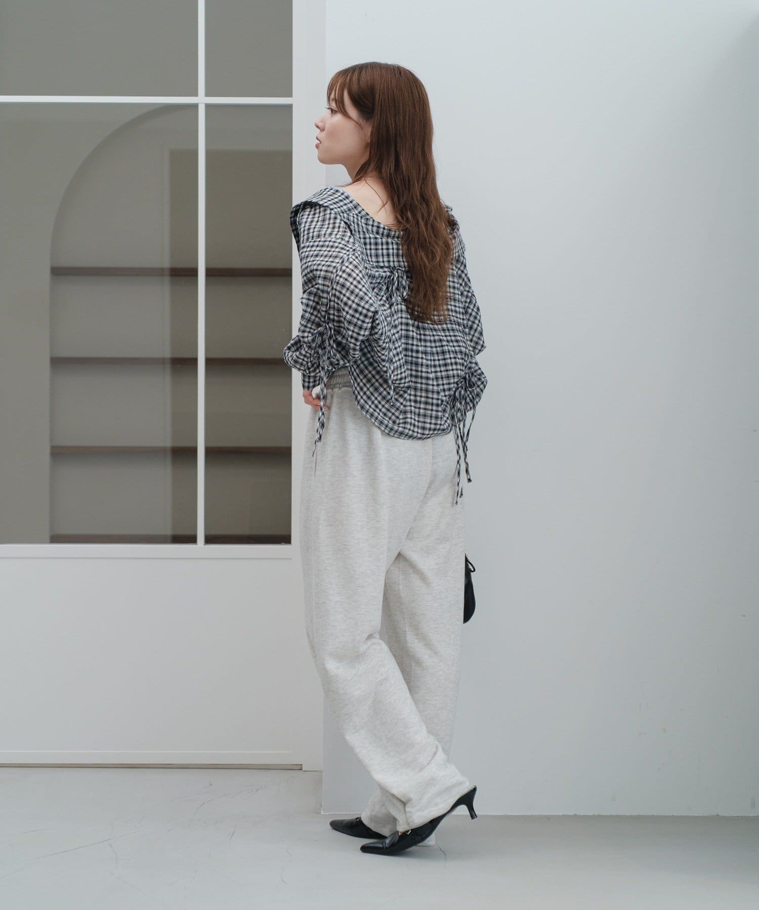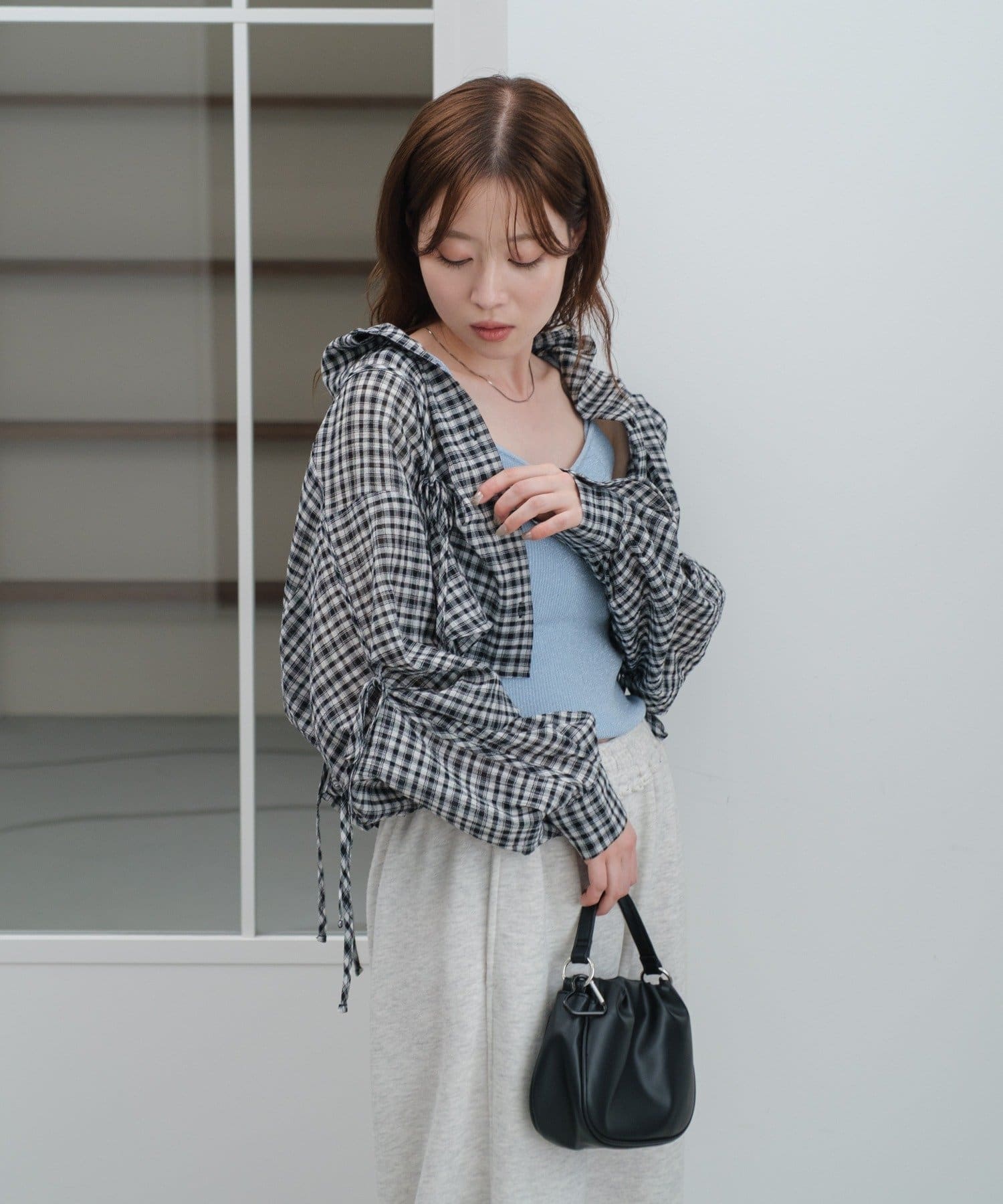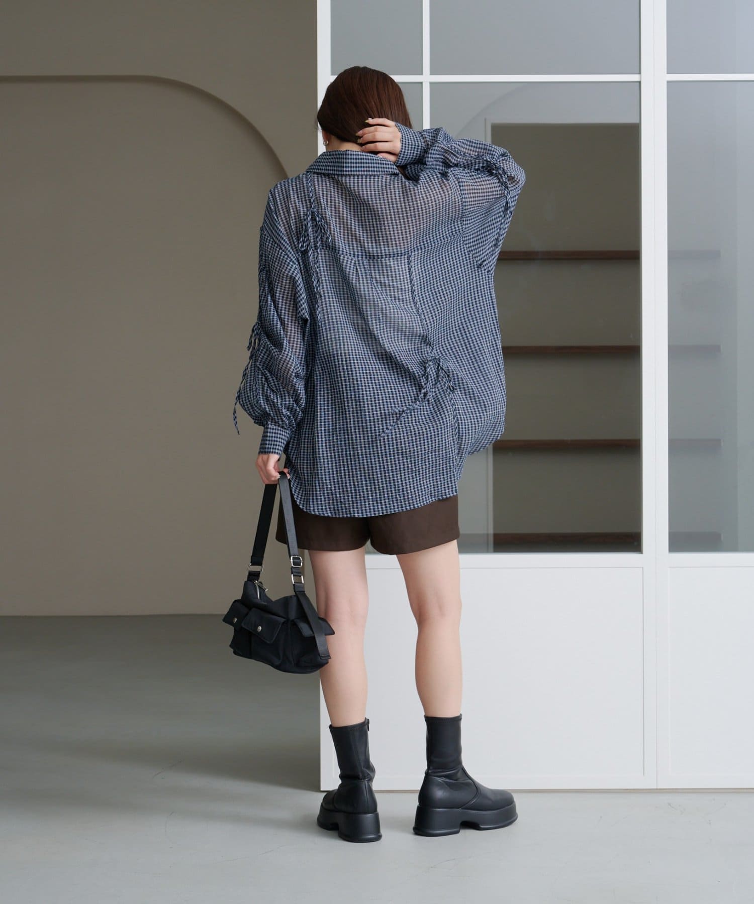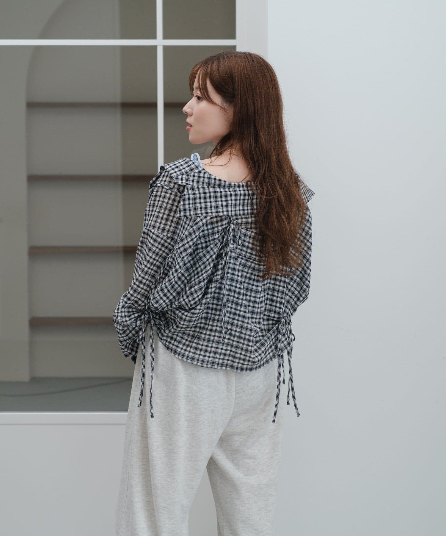 【新色追加/S.Mサイズ展開】チェックギャザーシャツ