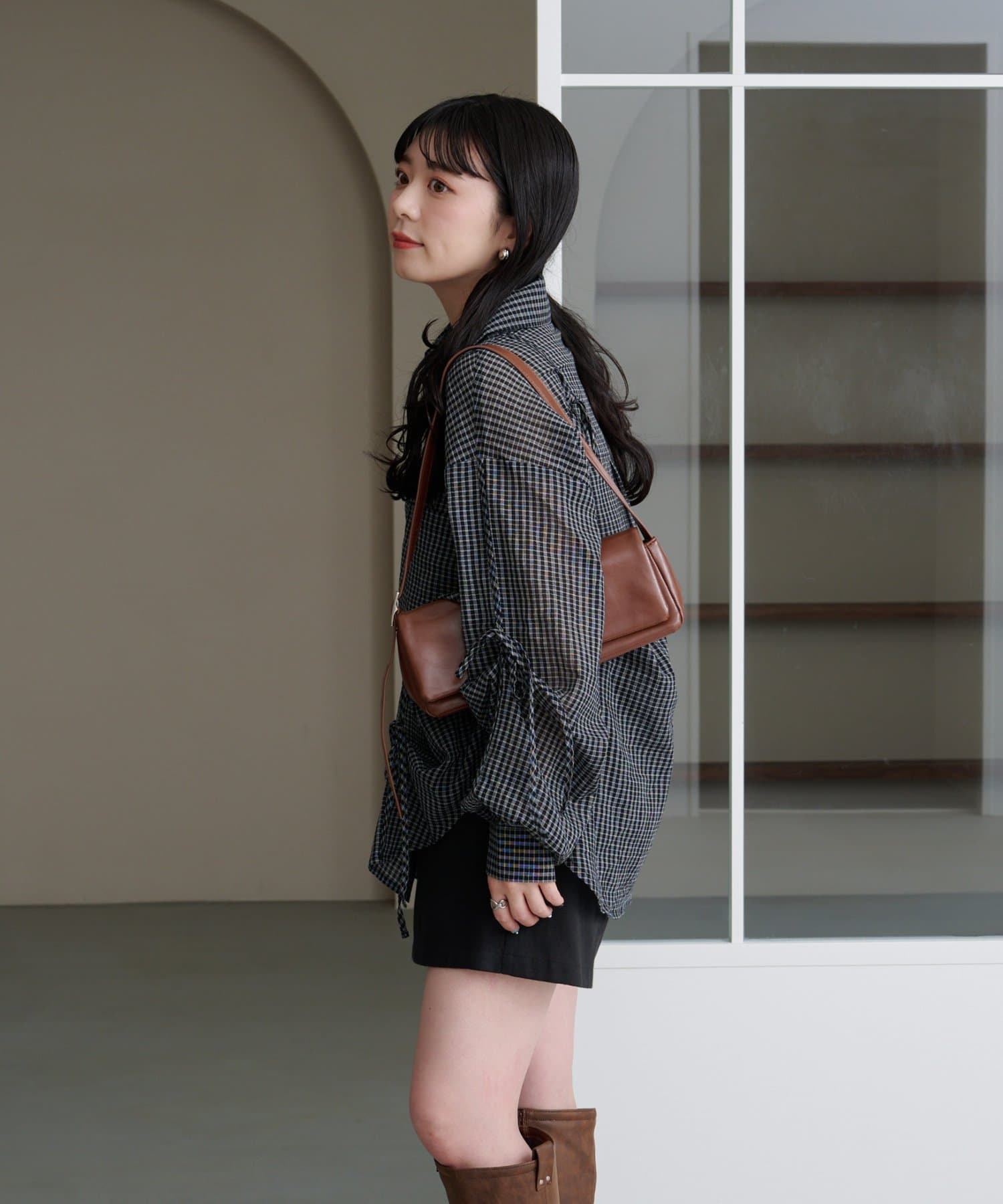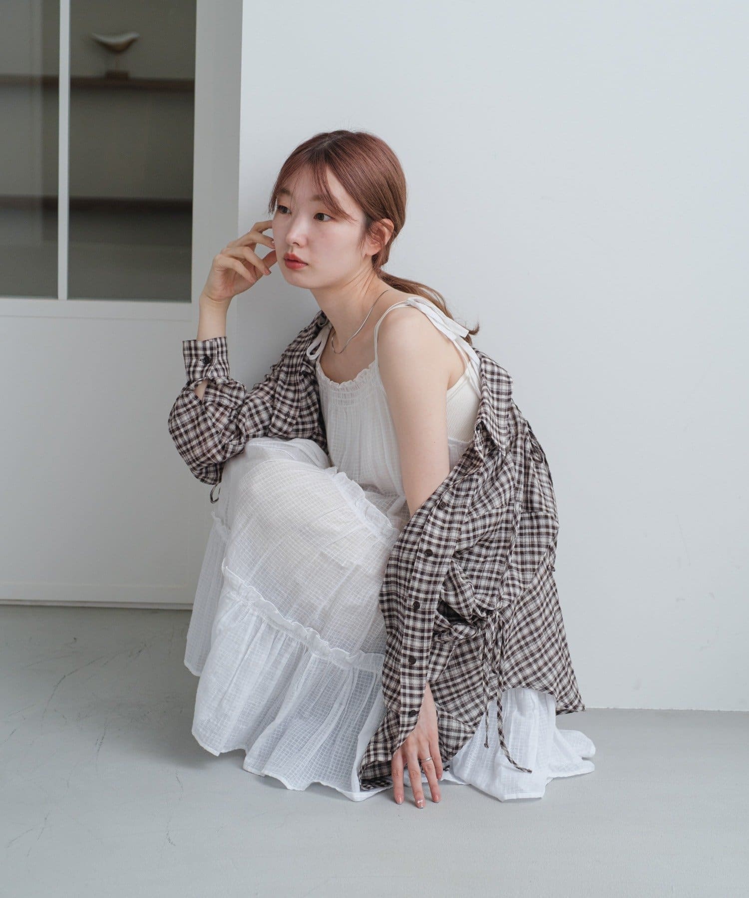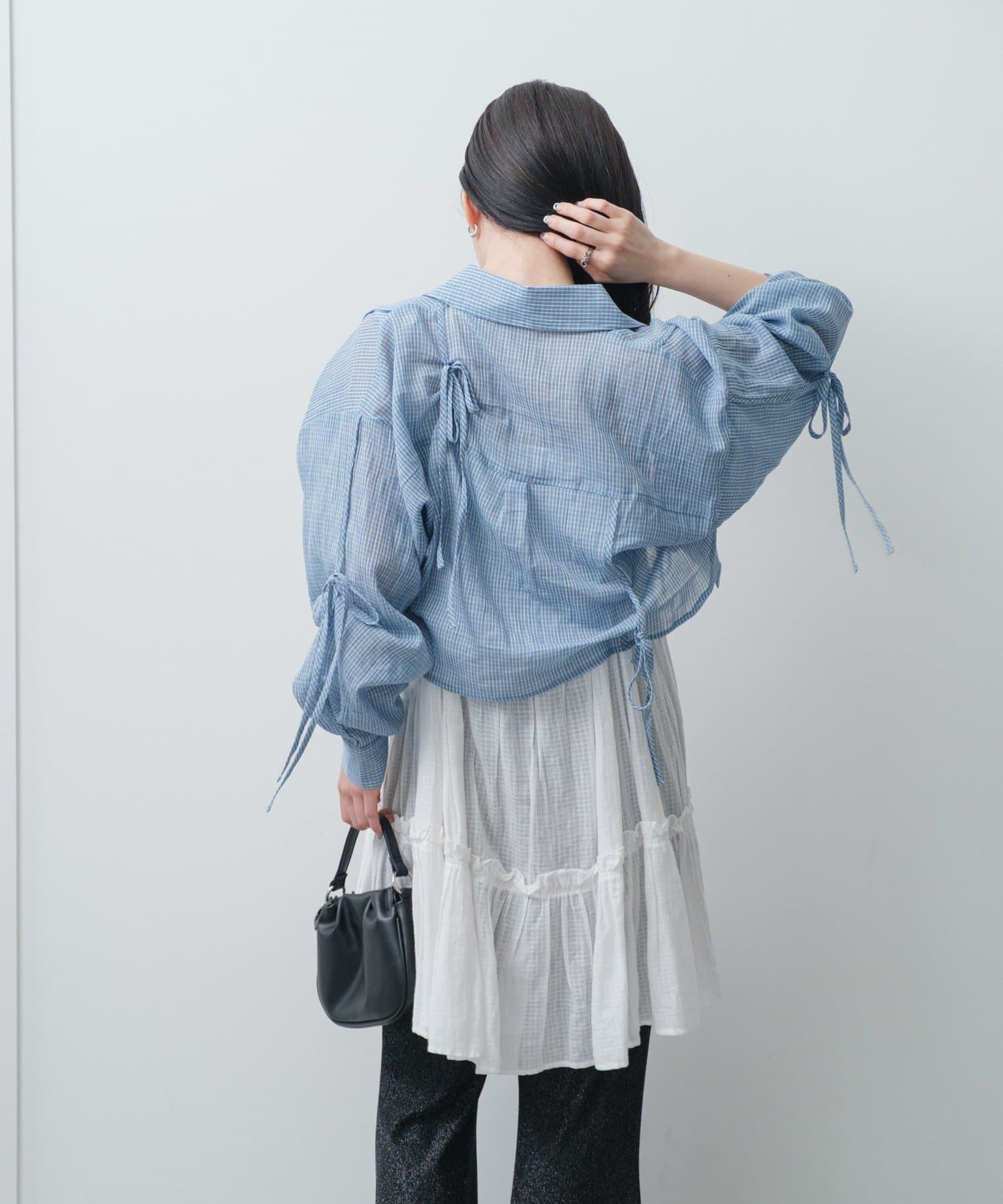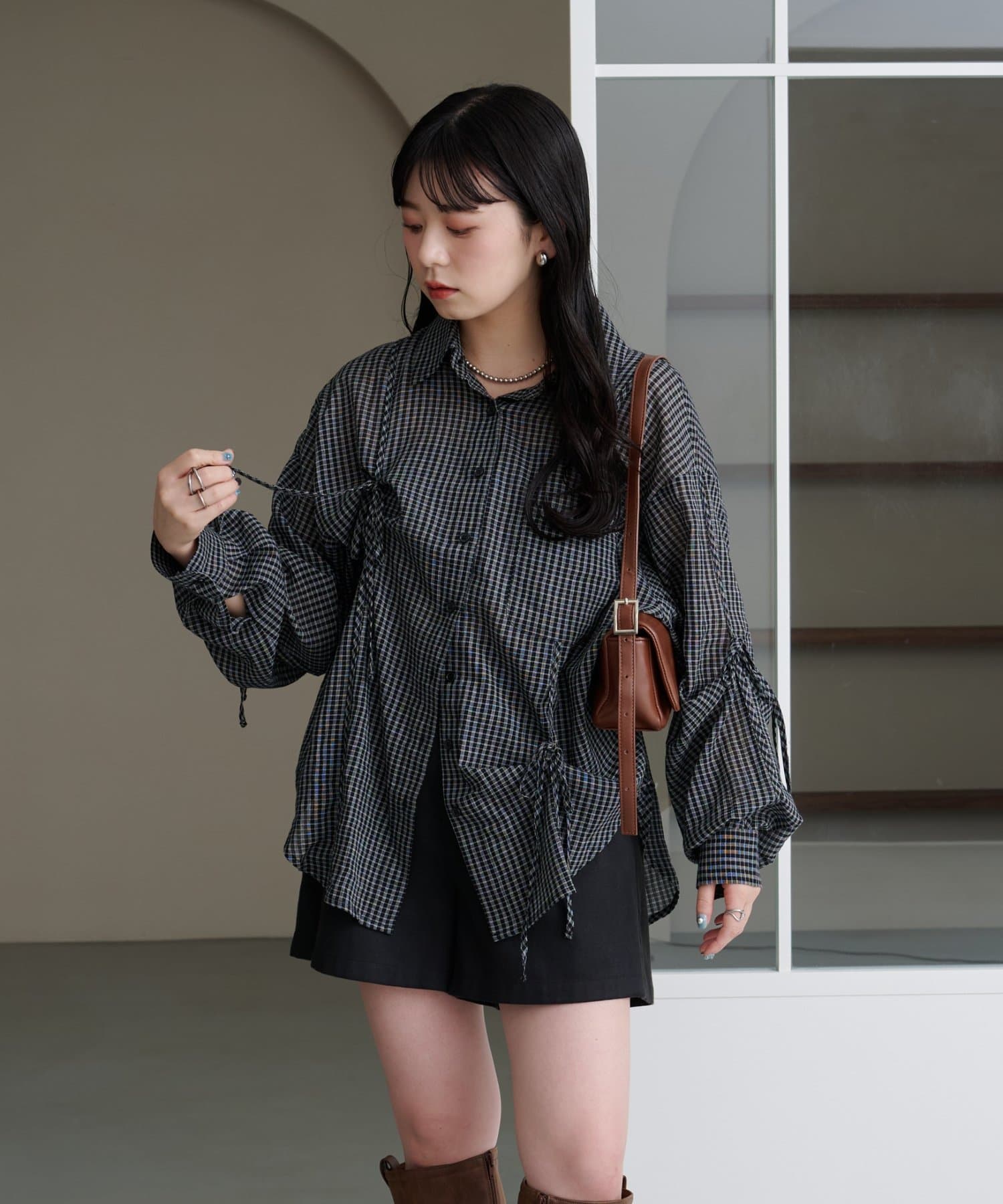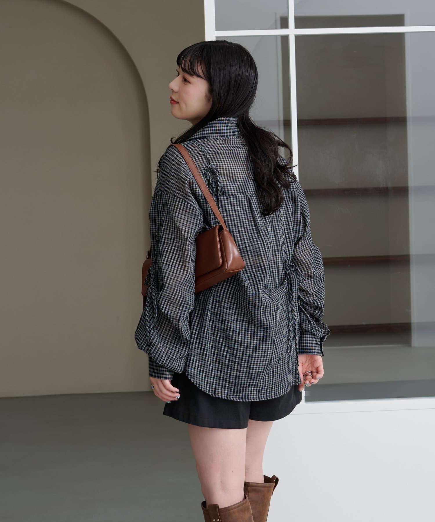 【新色追加/S.Mサイズ展開】チェックギャザーシャツ