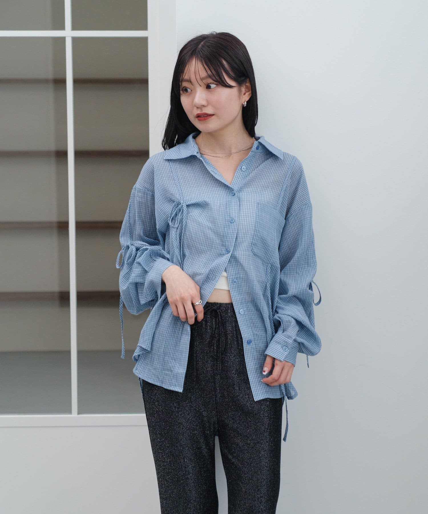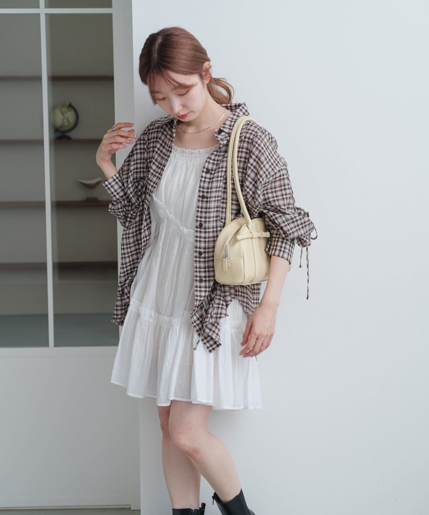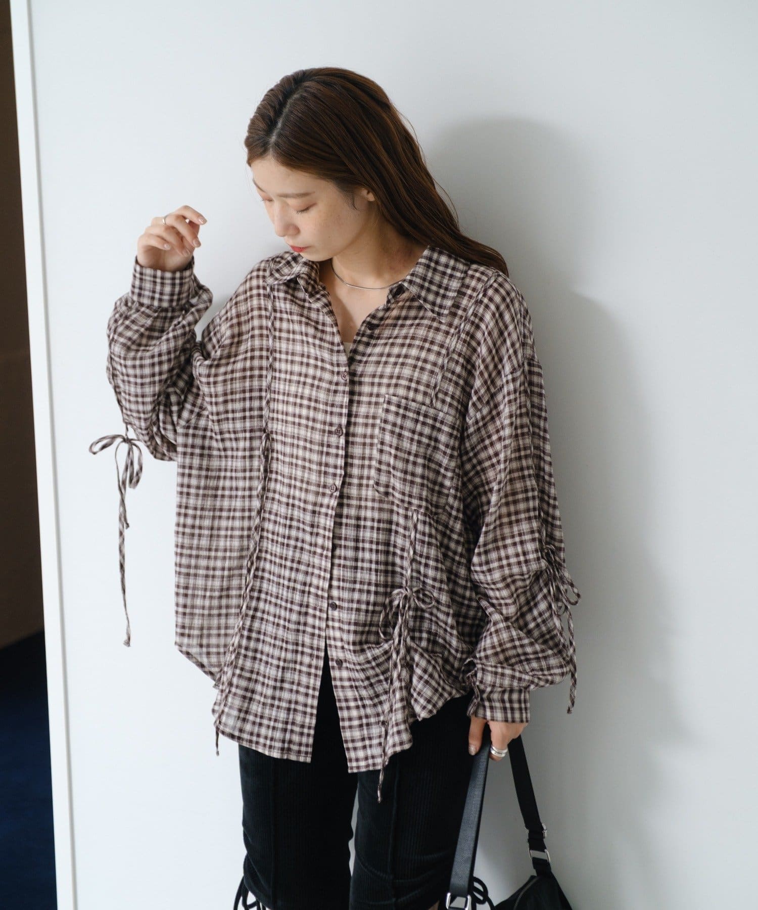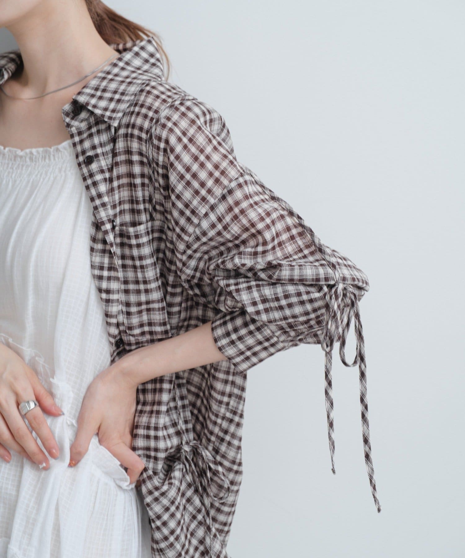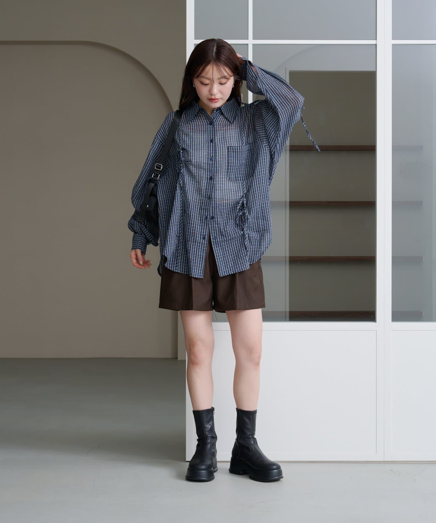 【新色追加/S.Mサイズ展開】チェックギャザーシャツ