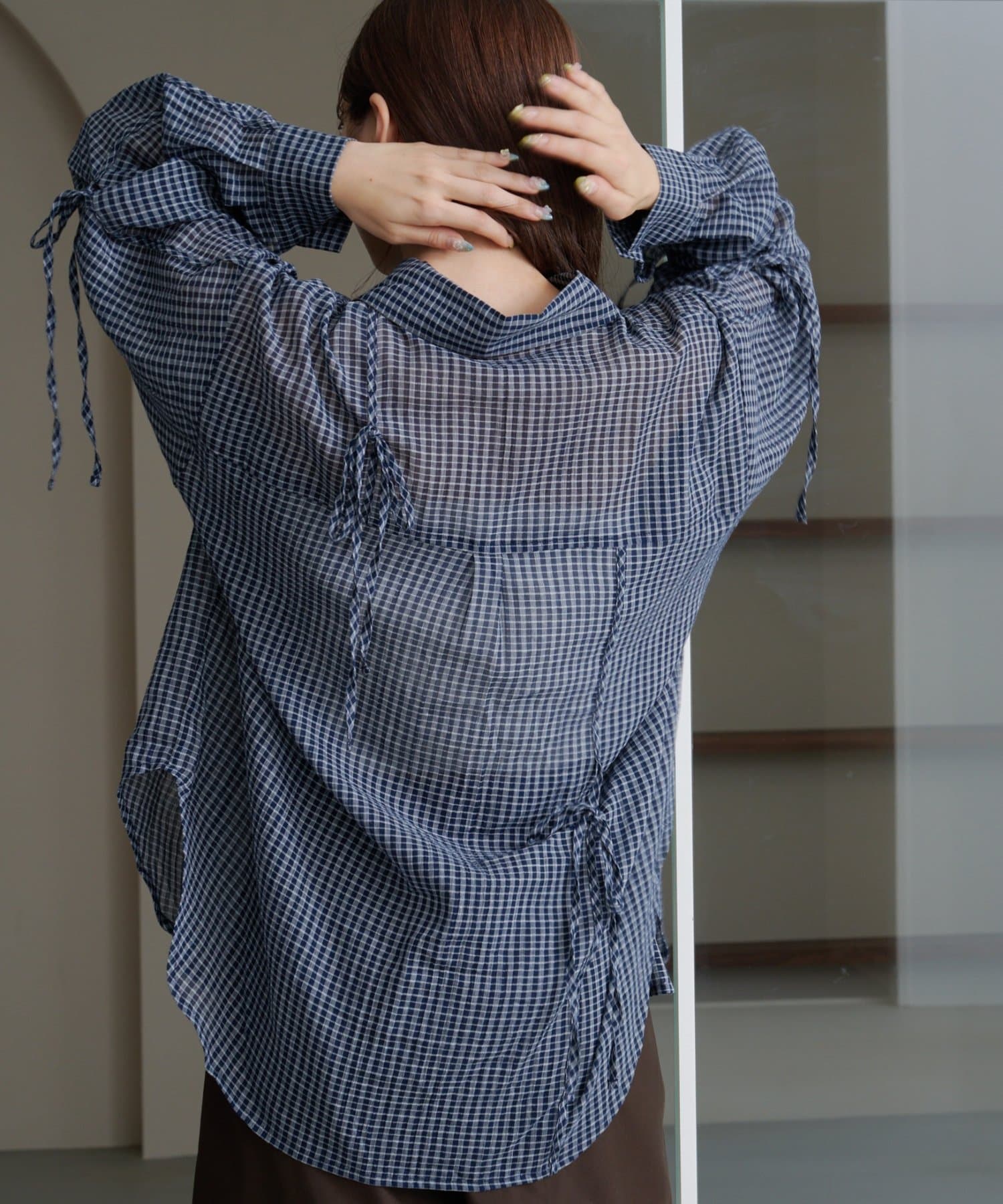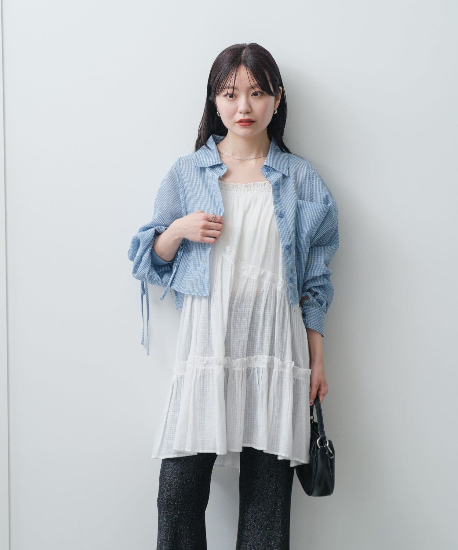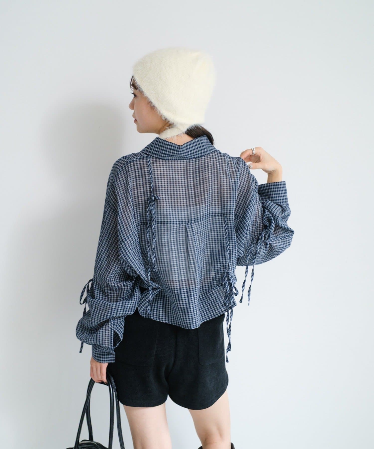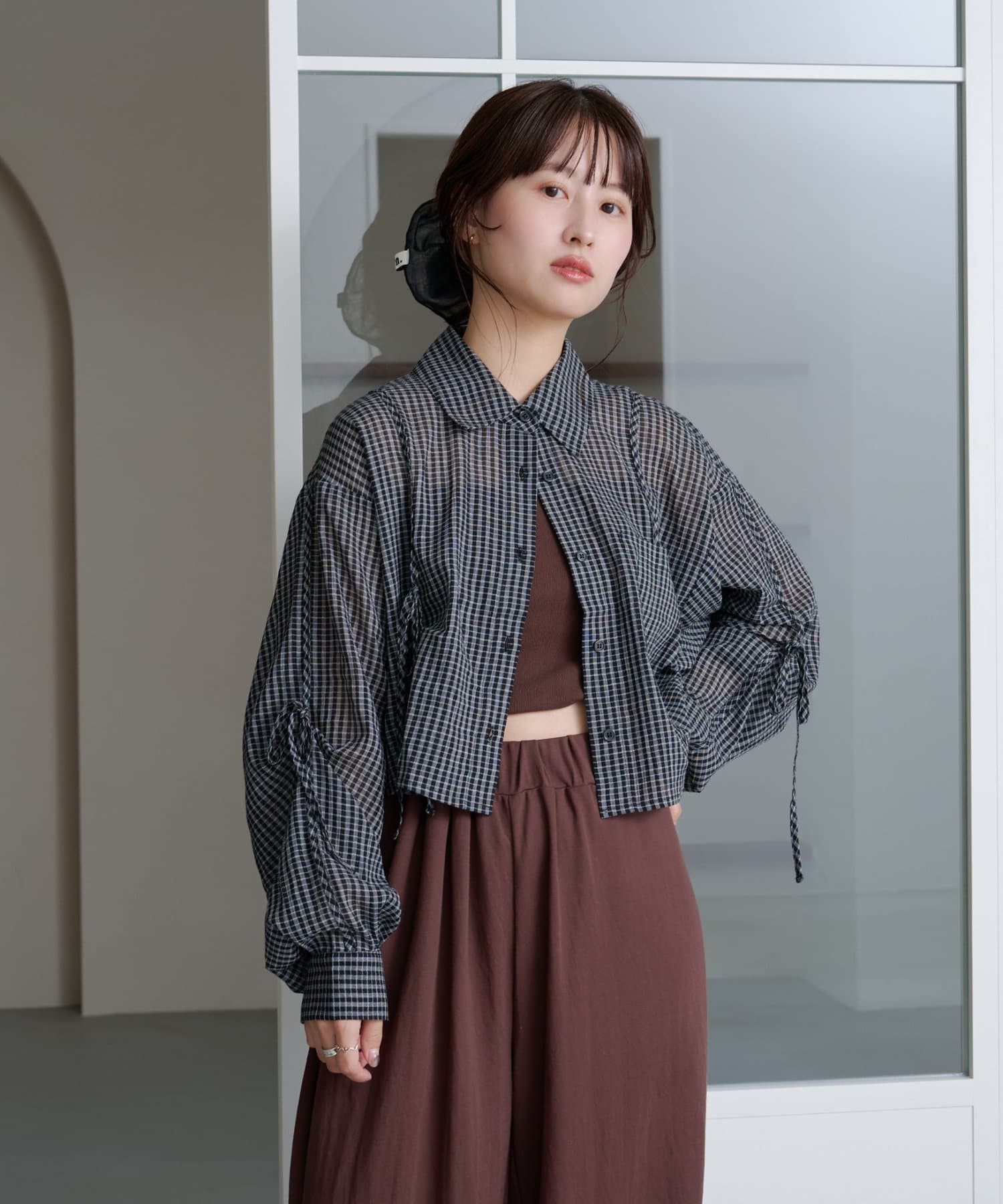 【新色追加/S.Mサイズ展開】チェックギャザーシャツ