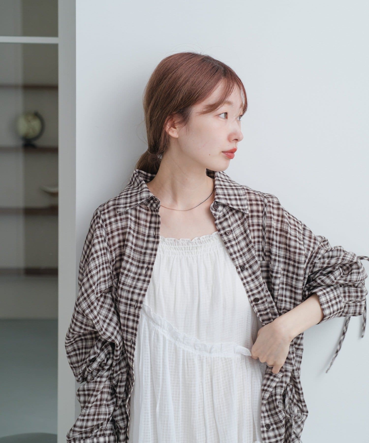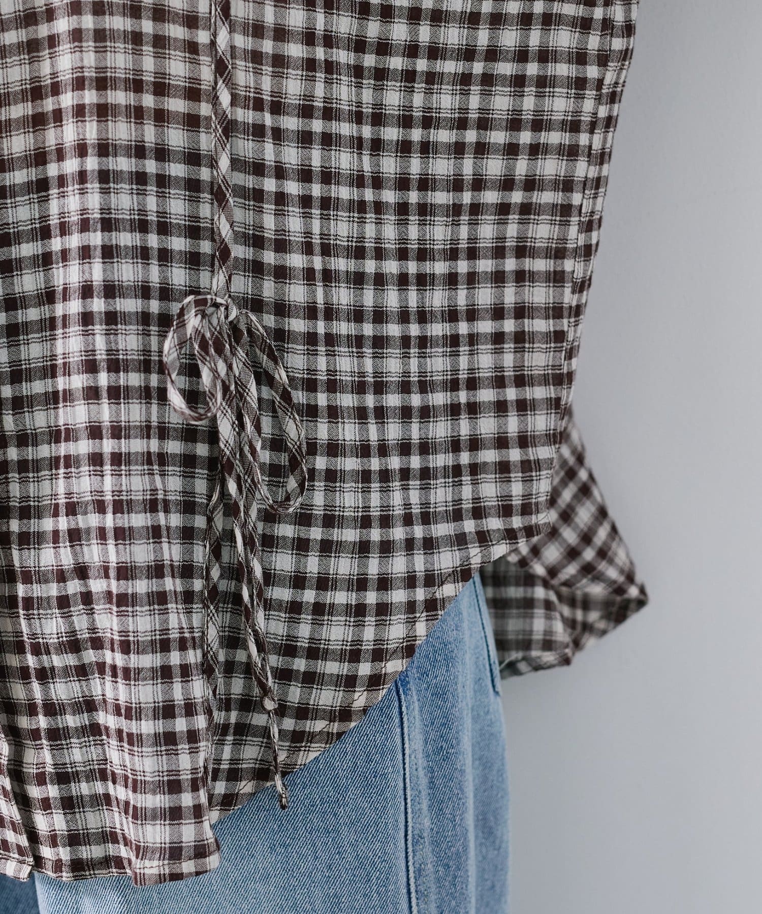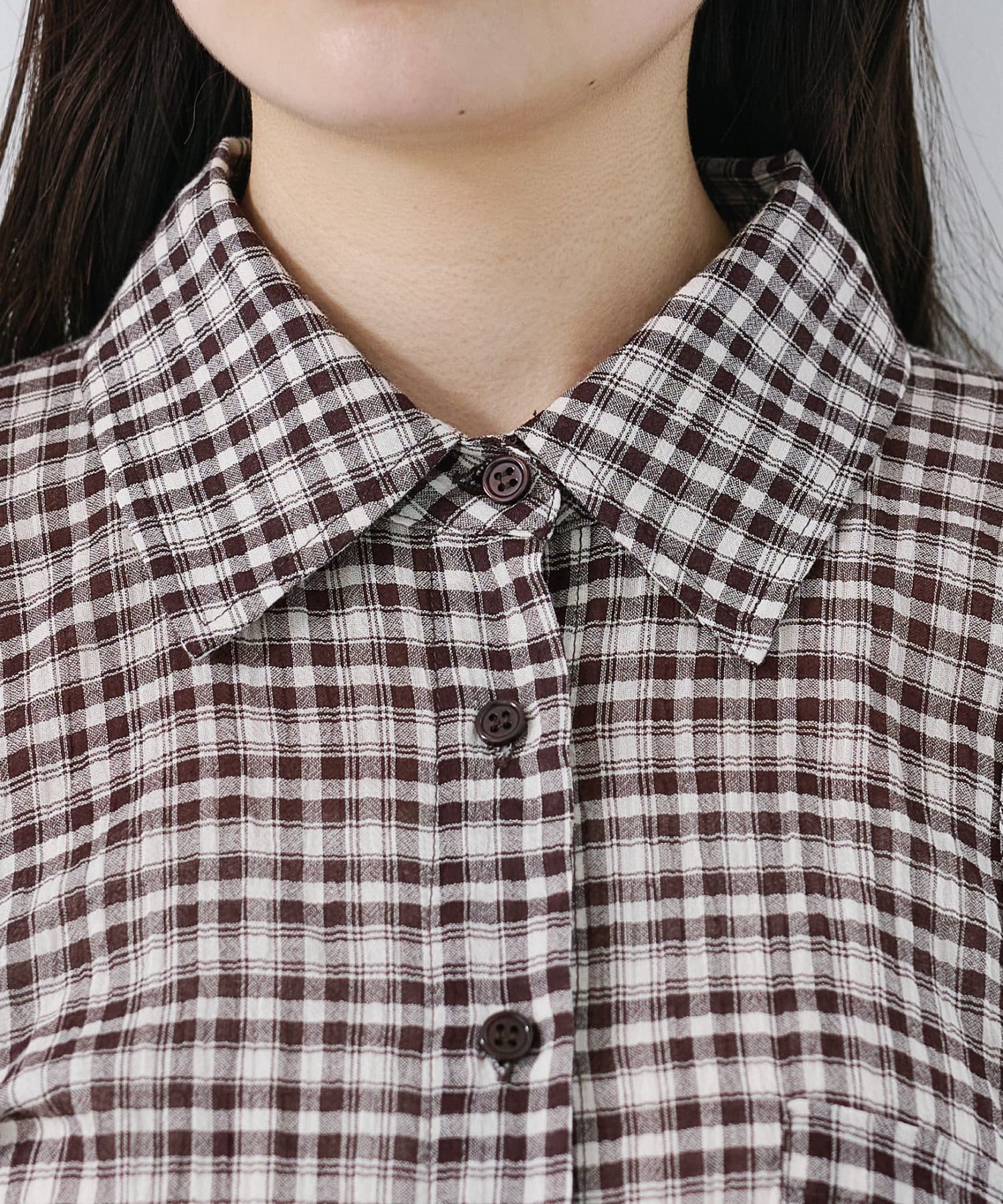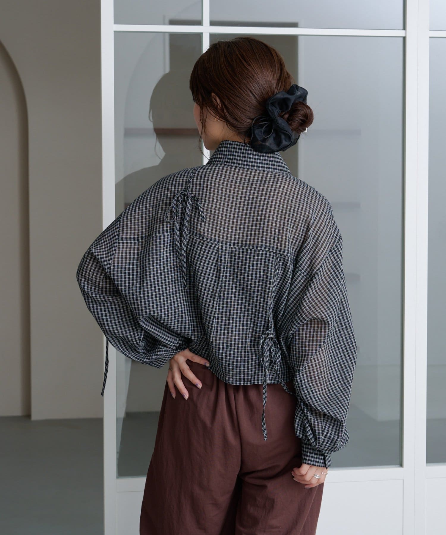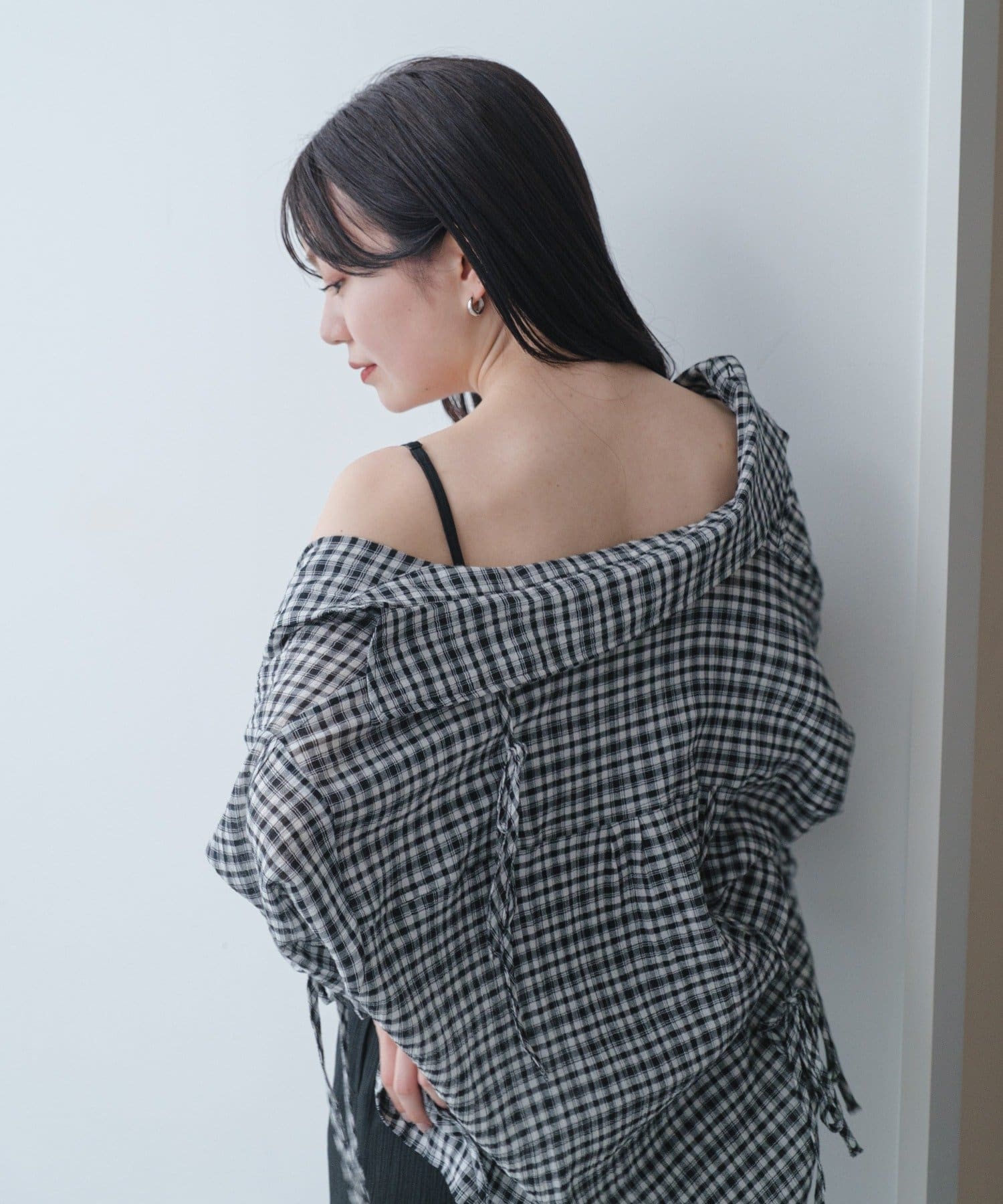 【新色追加/S.Mサイズ展開】チェックギャザーシャツ