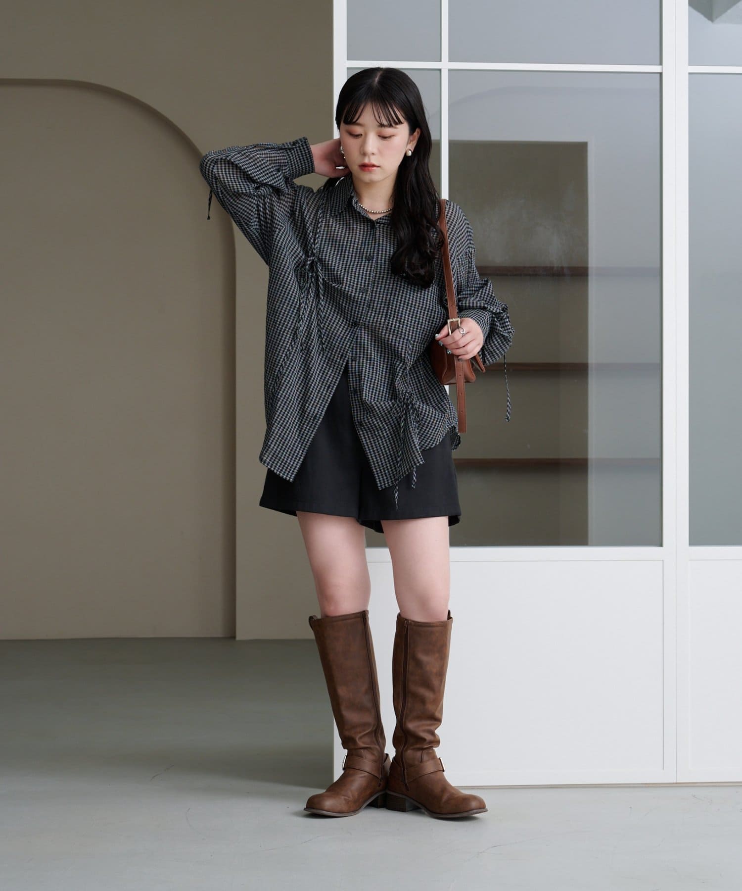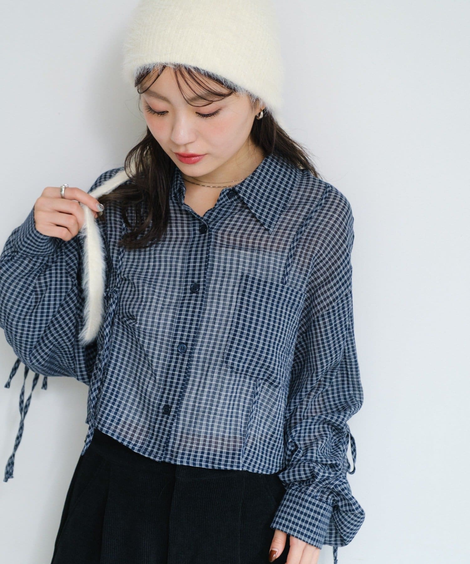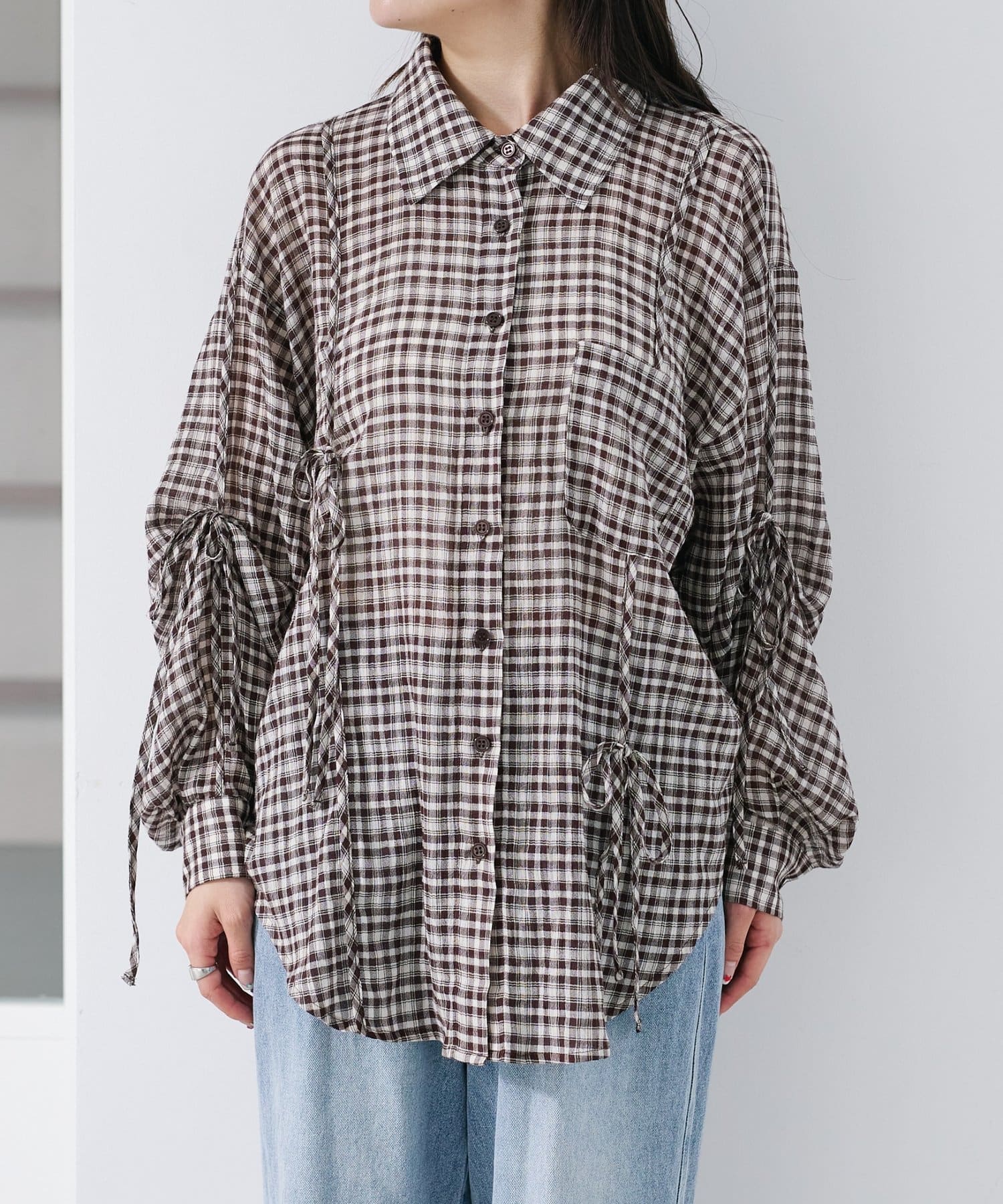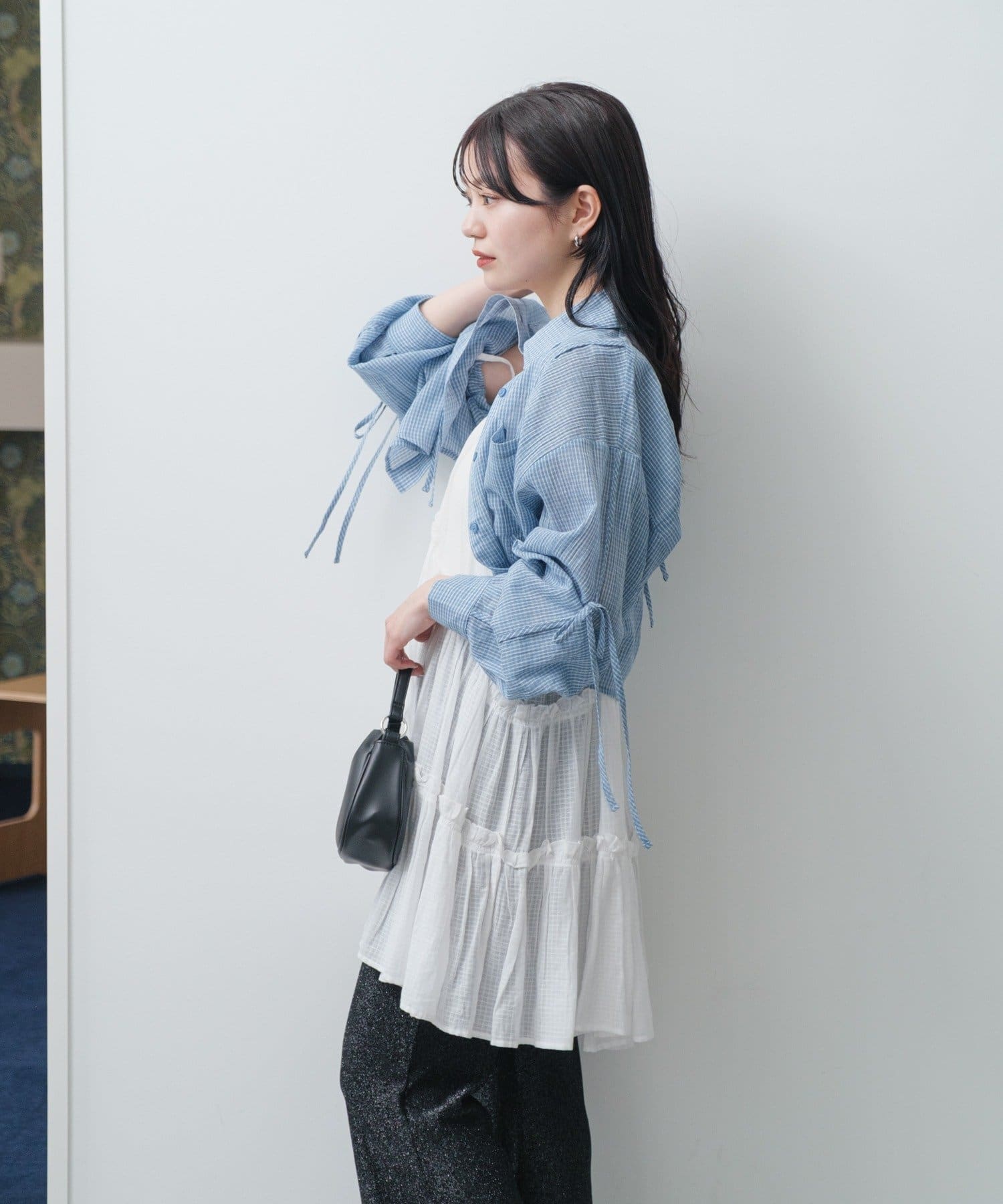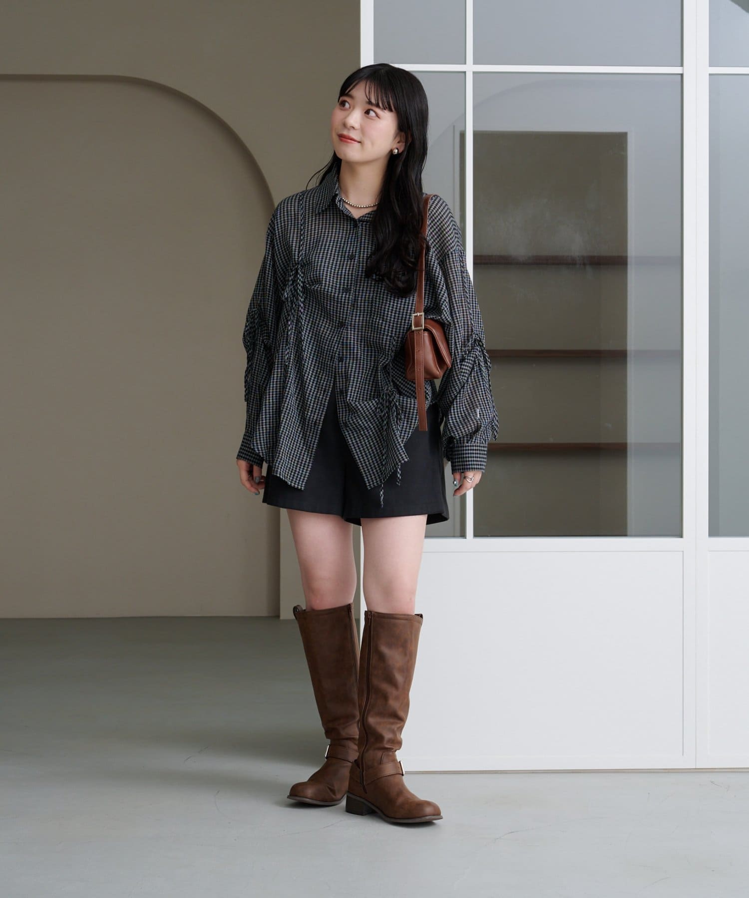 【新色追加/S.Mサイズ展開】チェックギャザーシャツ