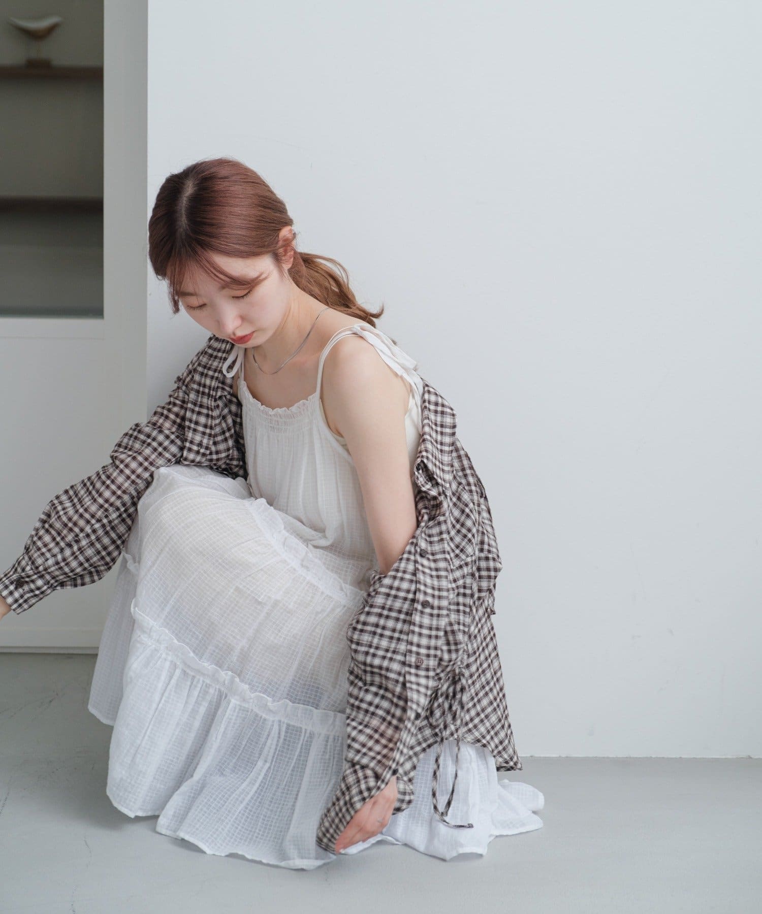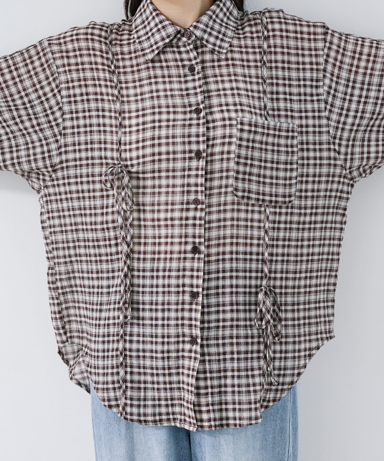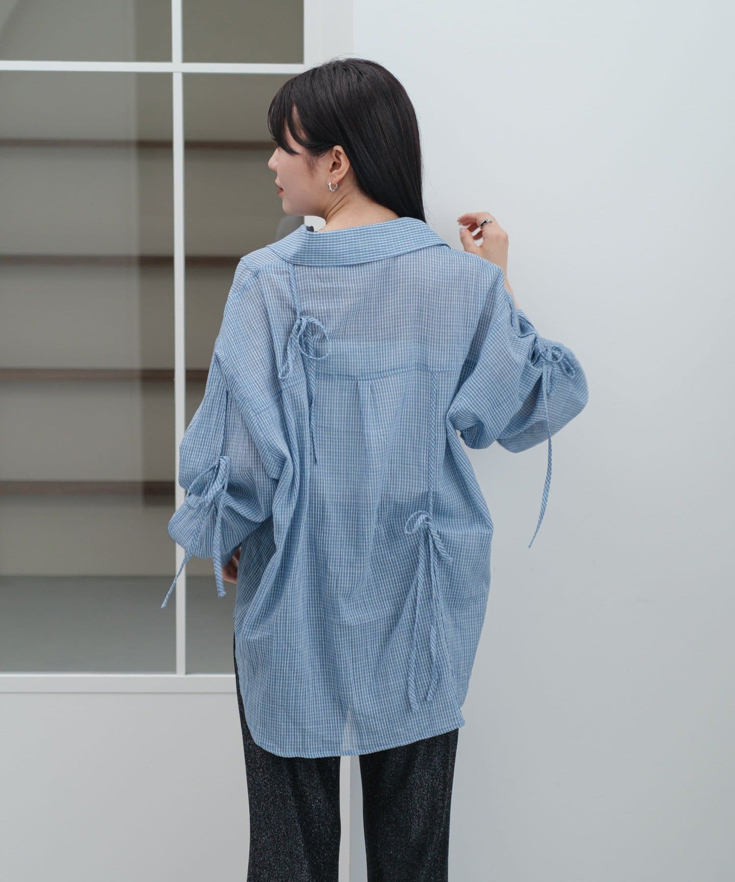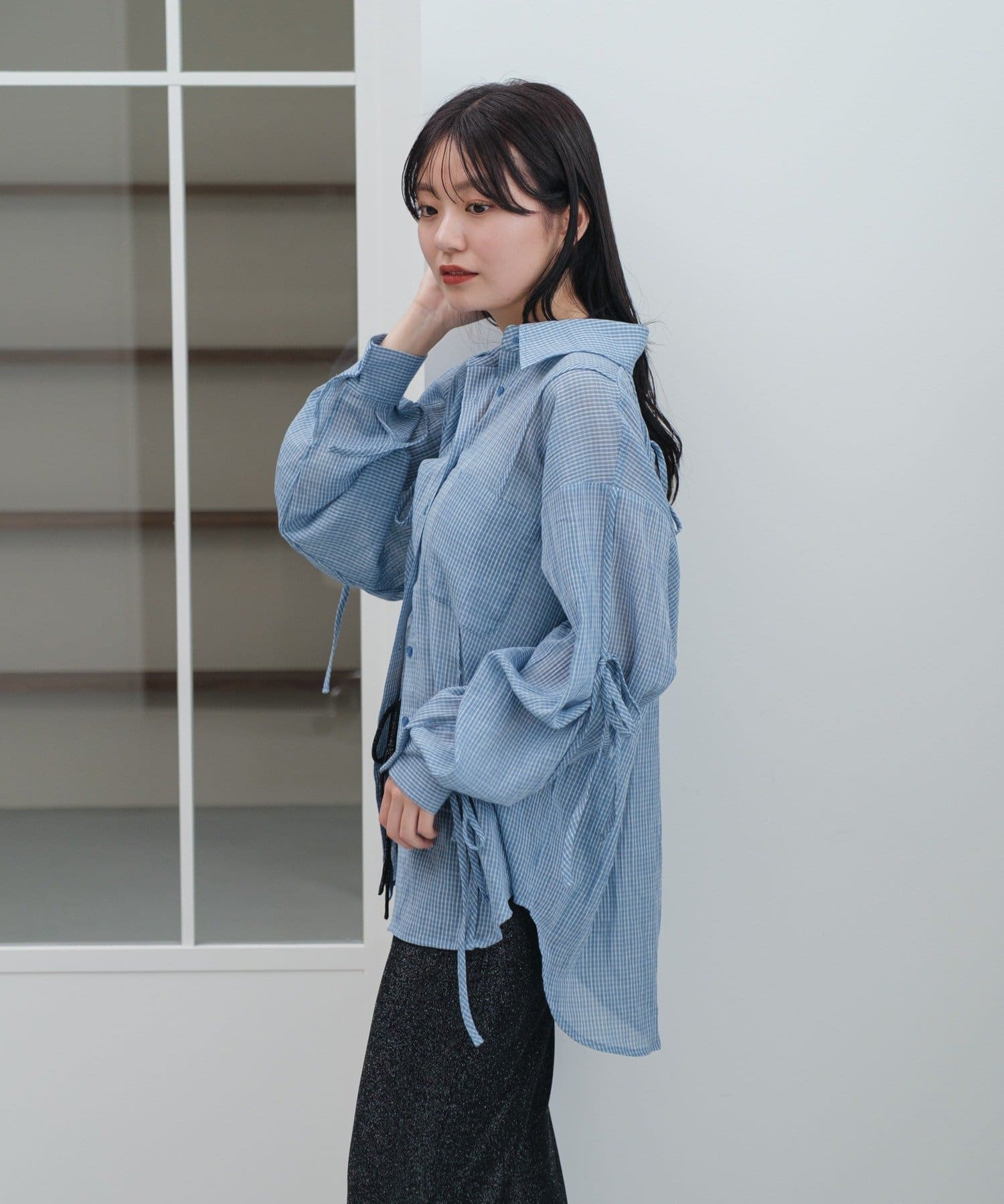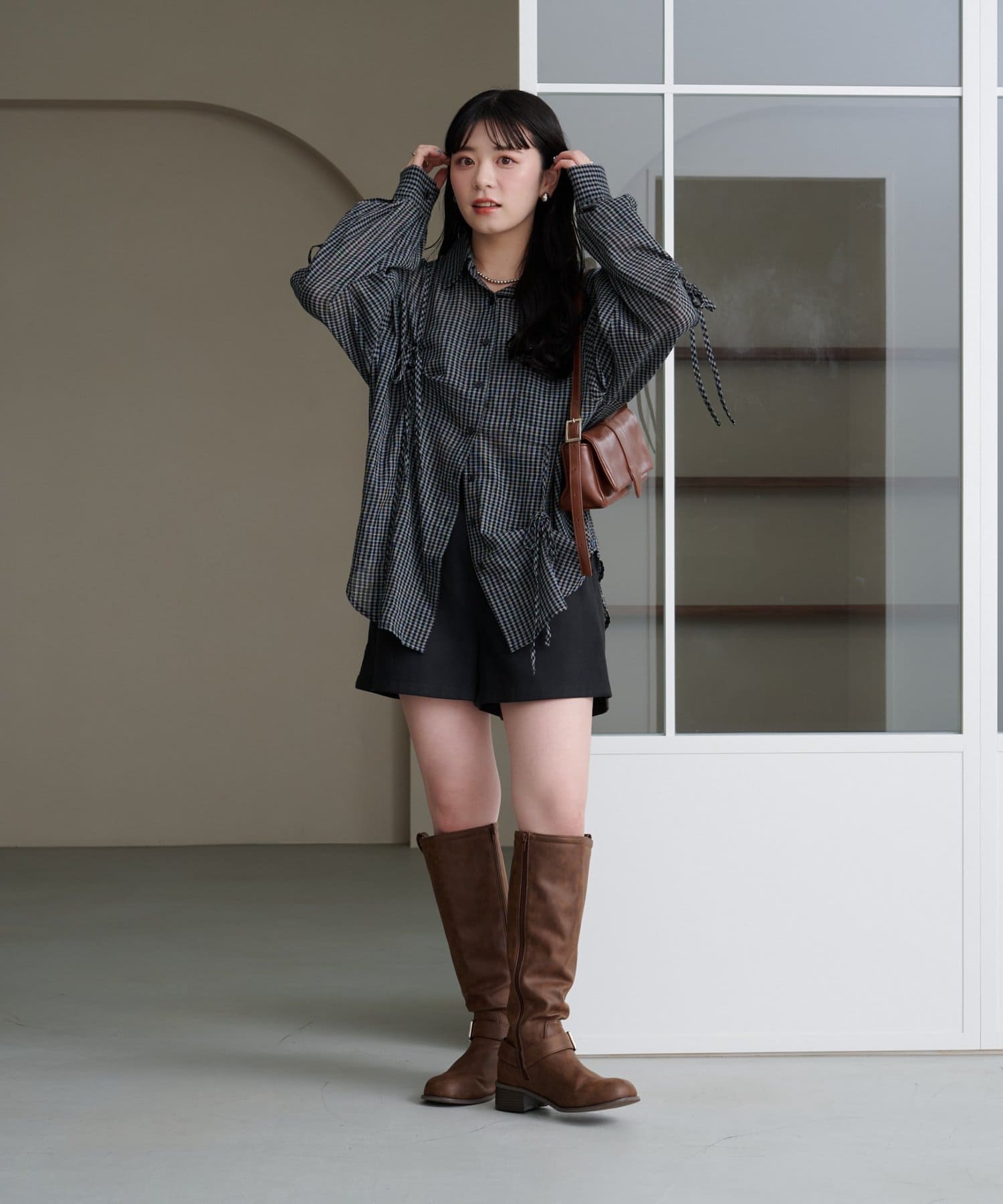 【新色追加/S.Mサイズ展開】チェックギャザーシャツ