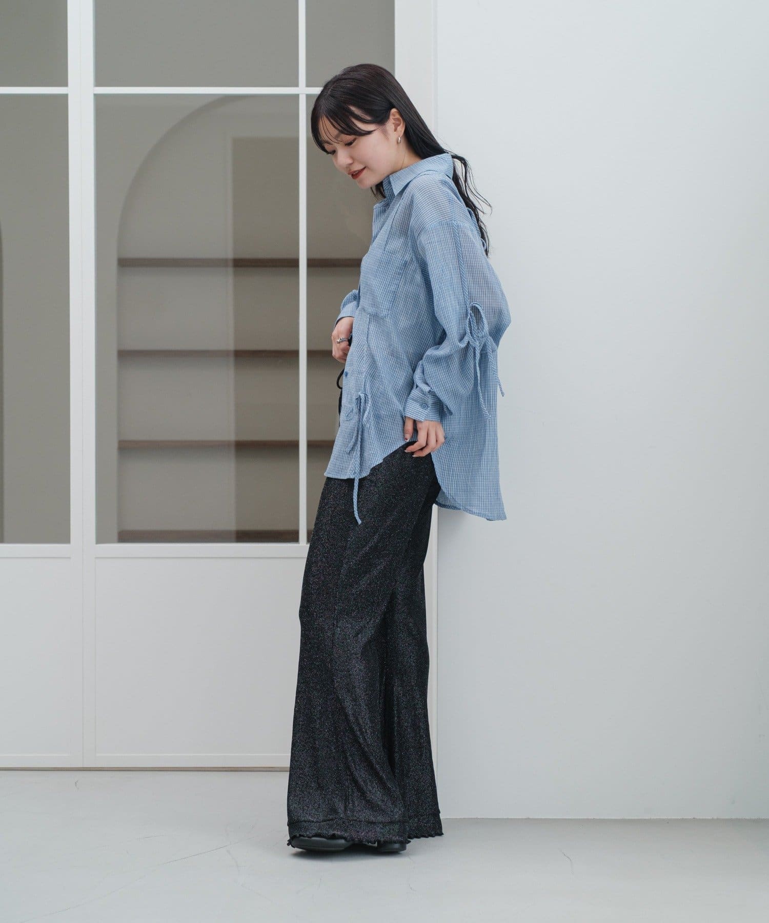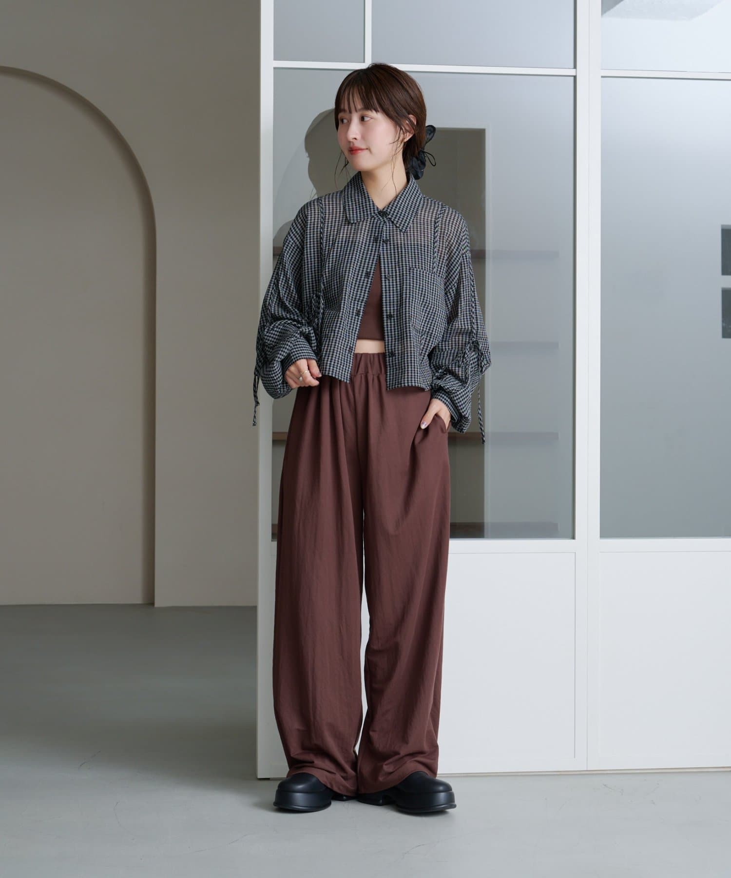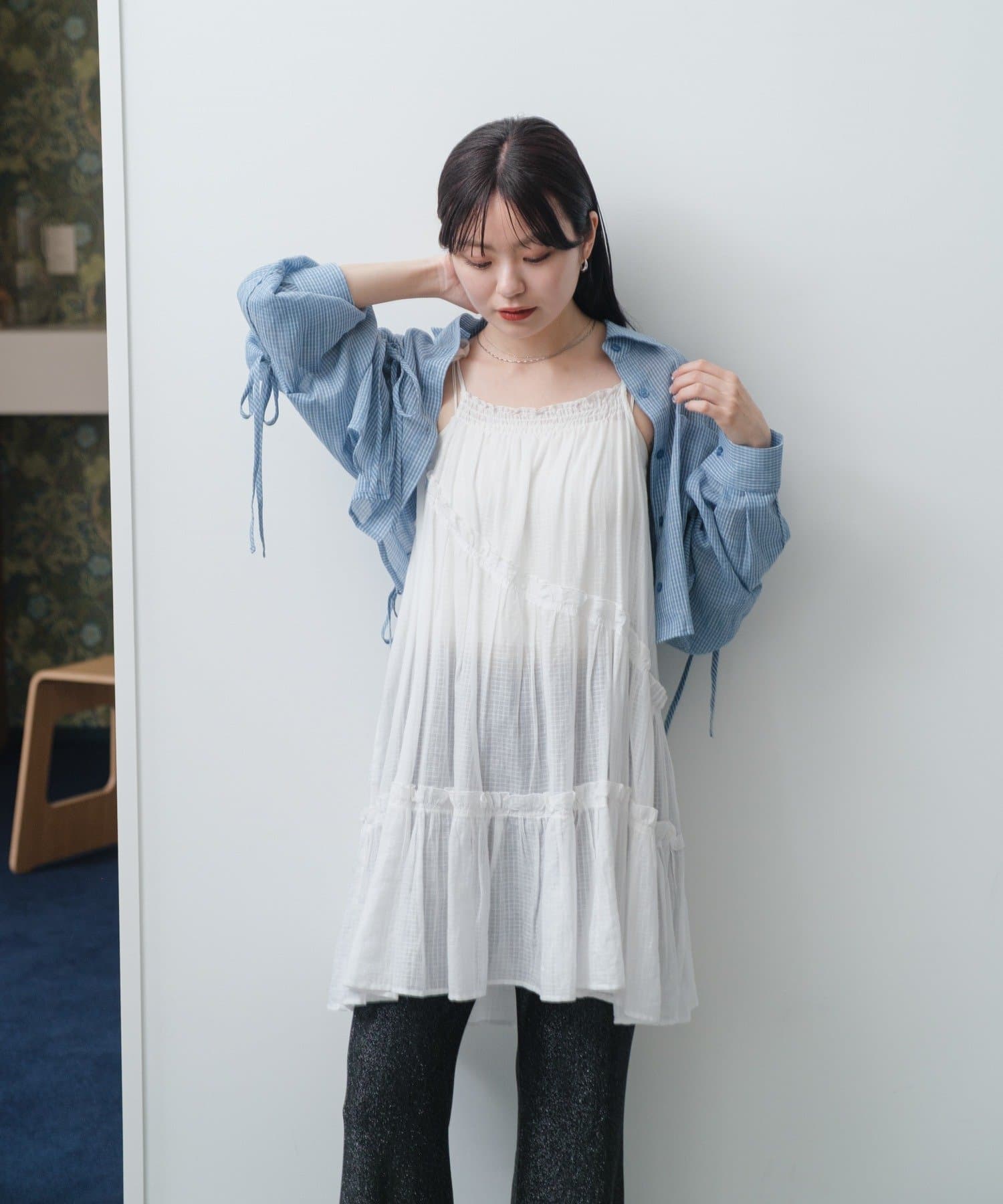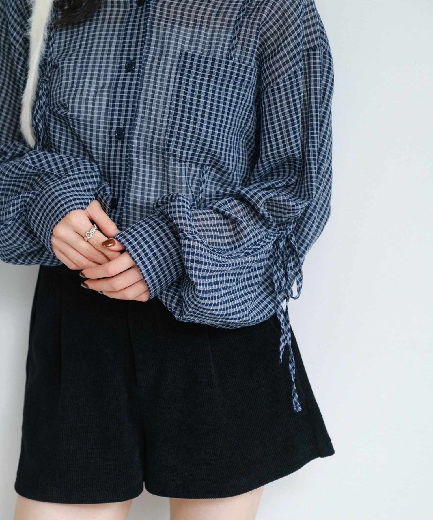 【新色追加/S.Mサイズ展開】チェックギャザーシャツ