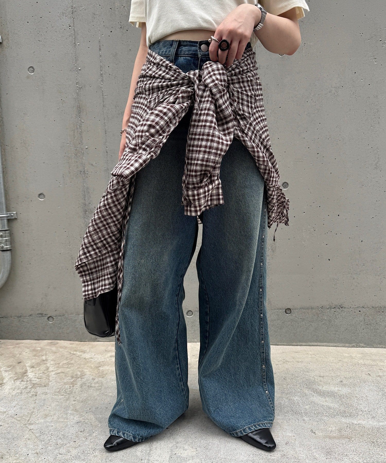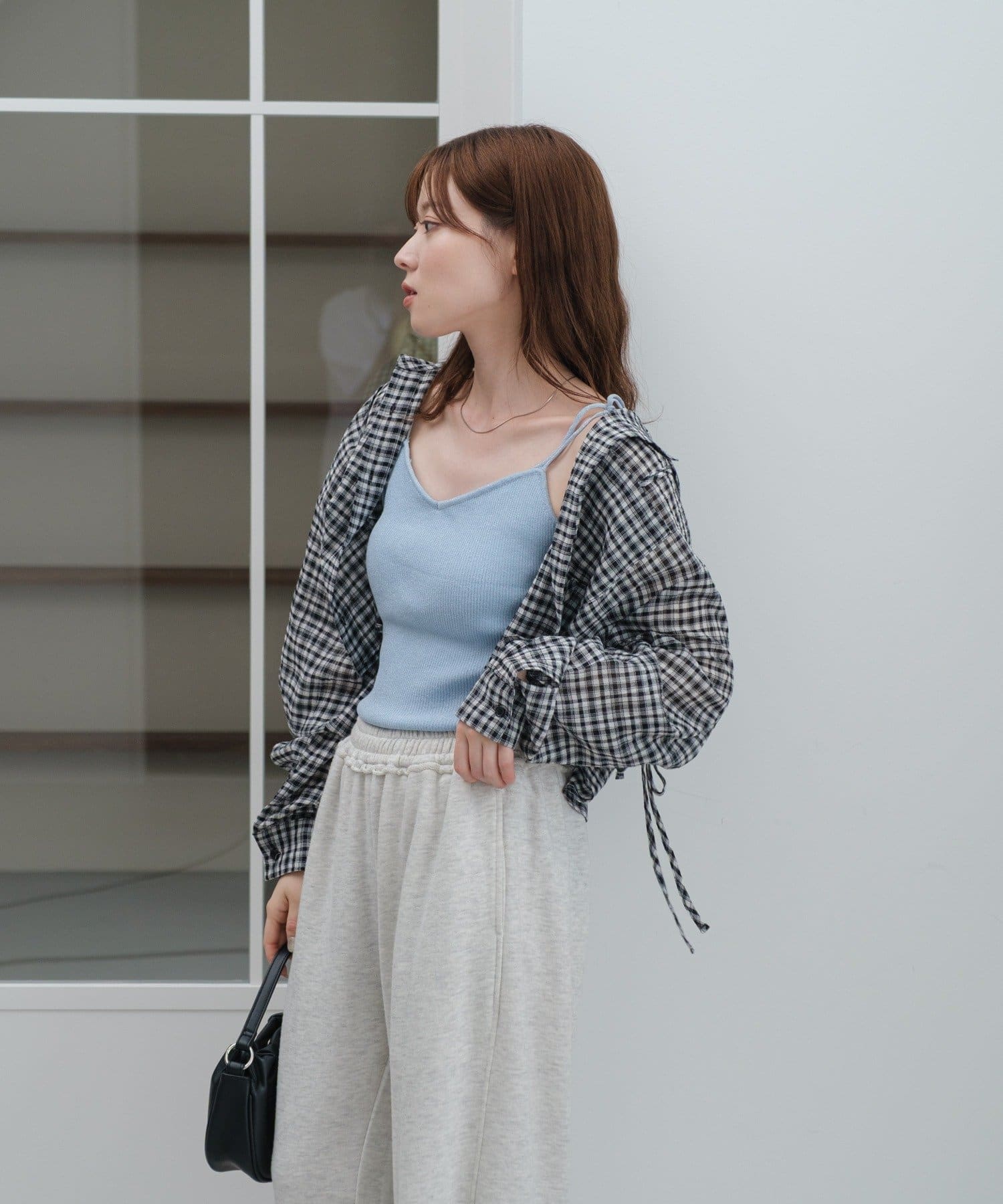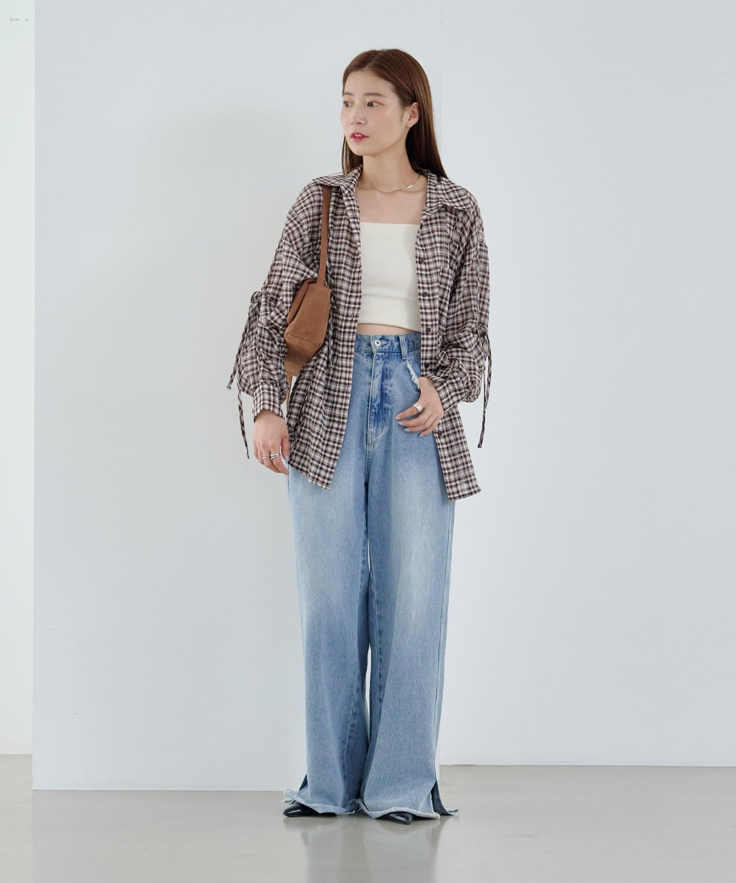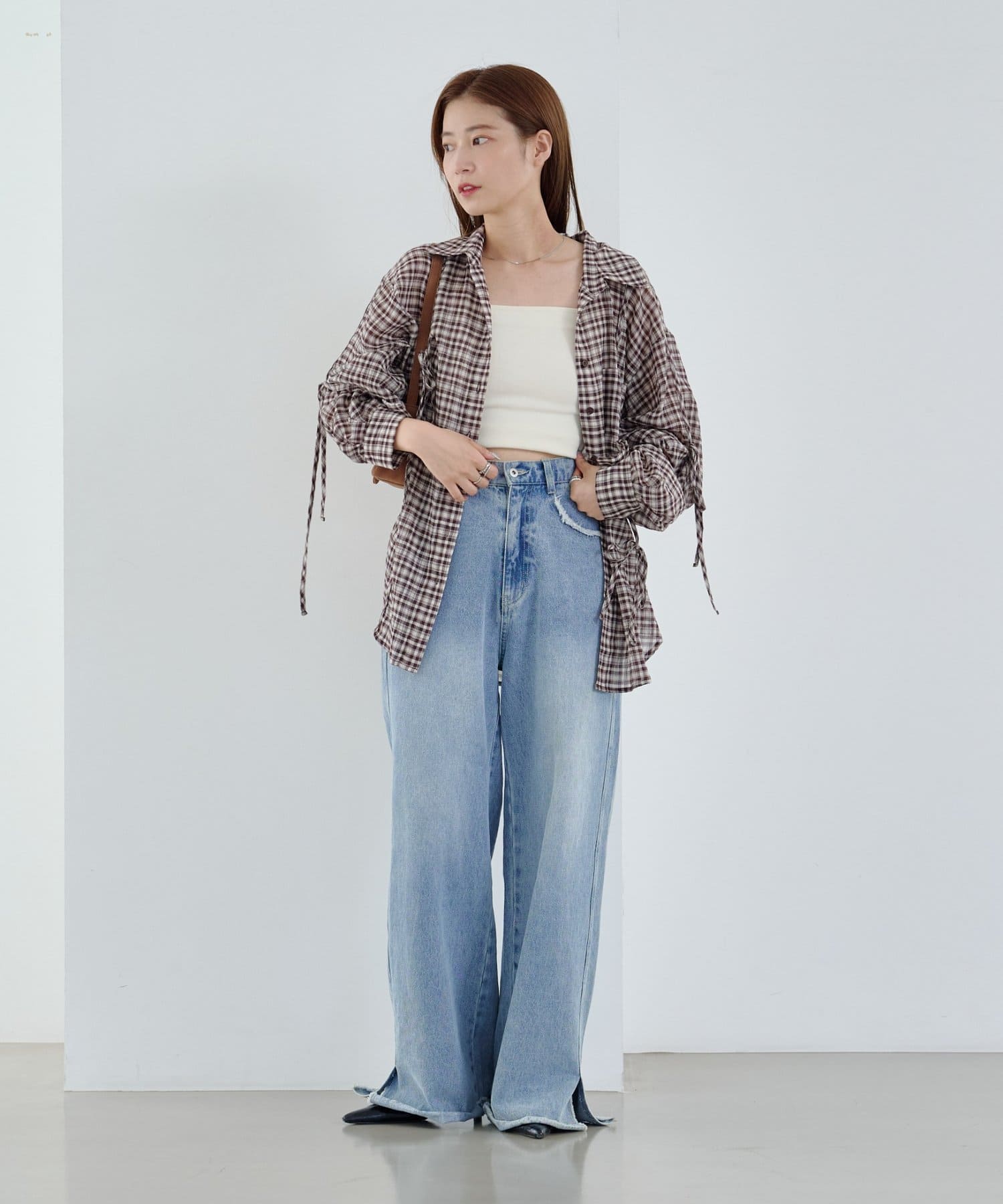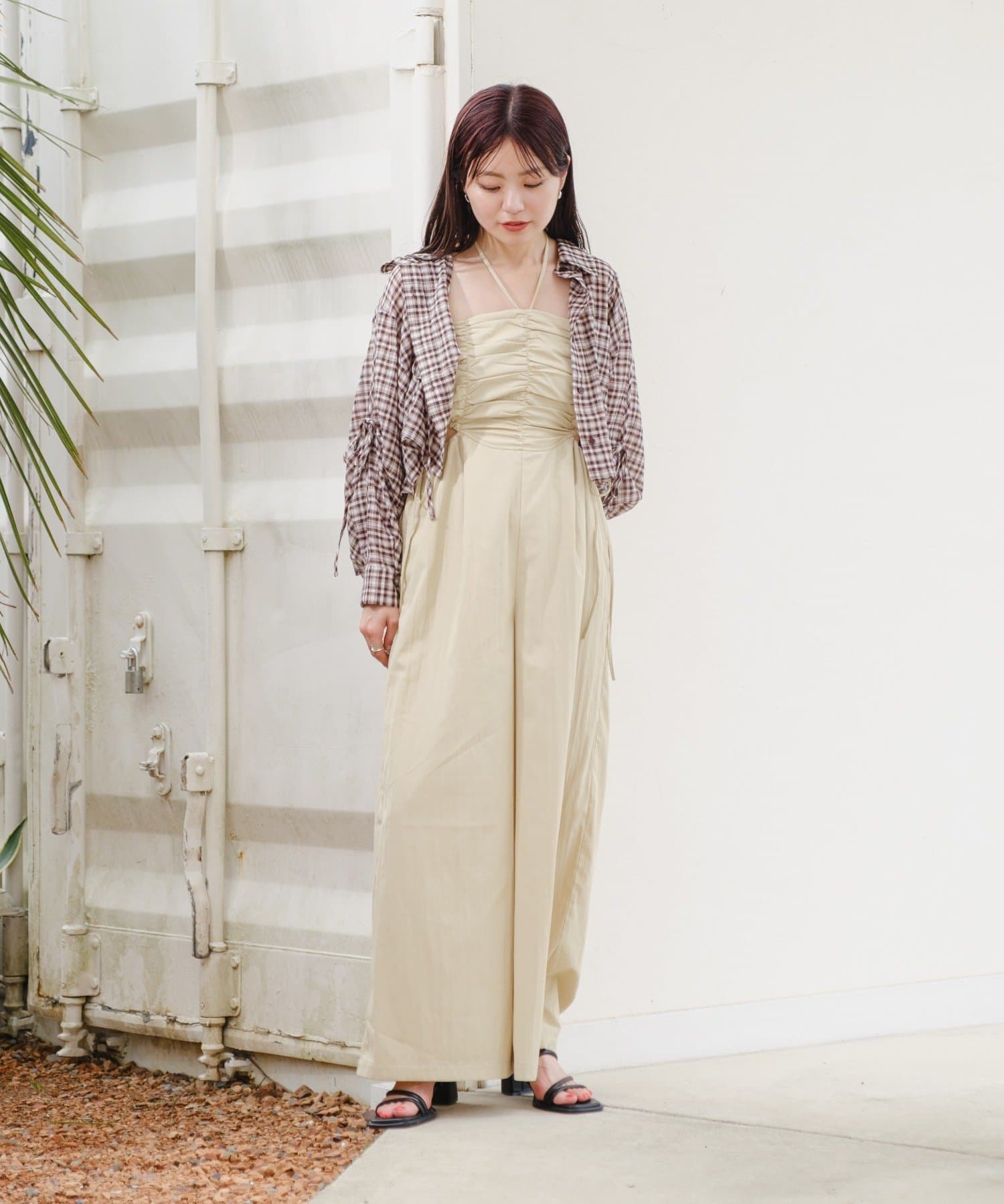【新色追加/S.Mサイズ展開】チェックギャザーシャツ