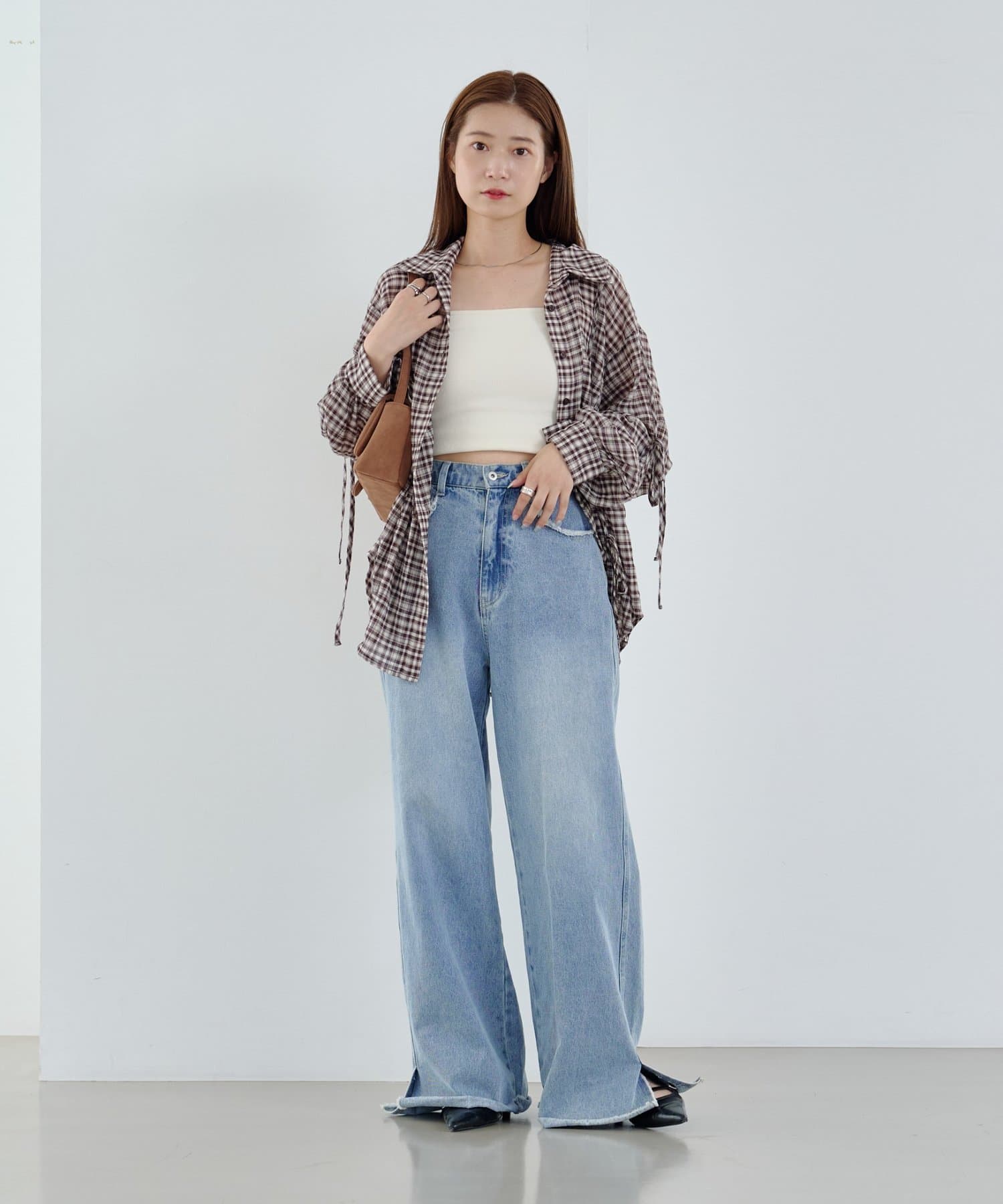 羽織りでも大活躍できるシャツですが、ボタンを閉じてトップス感覚でもお使いただけます。