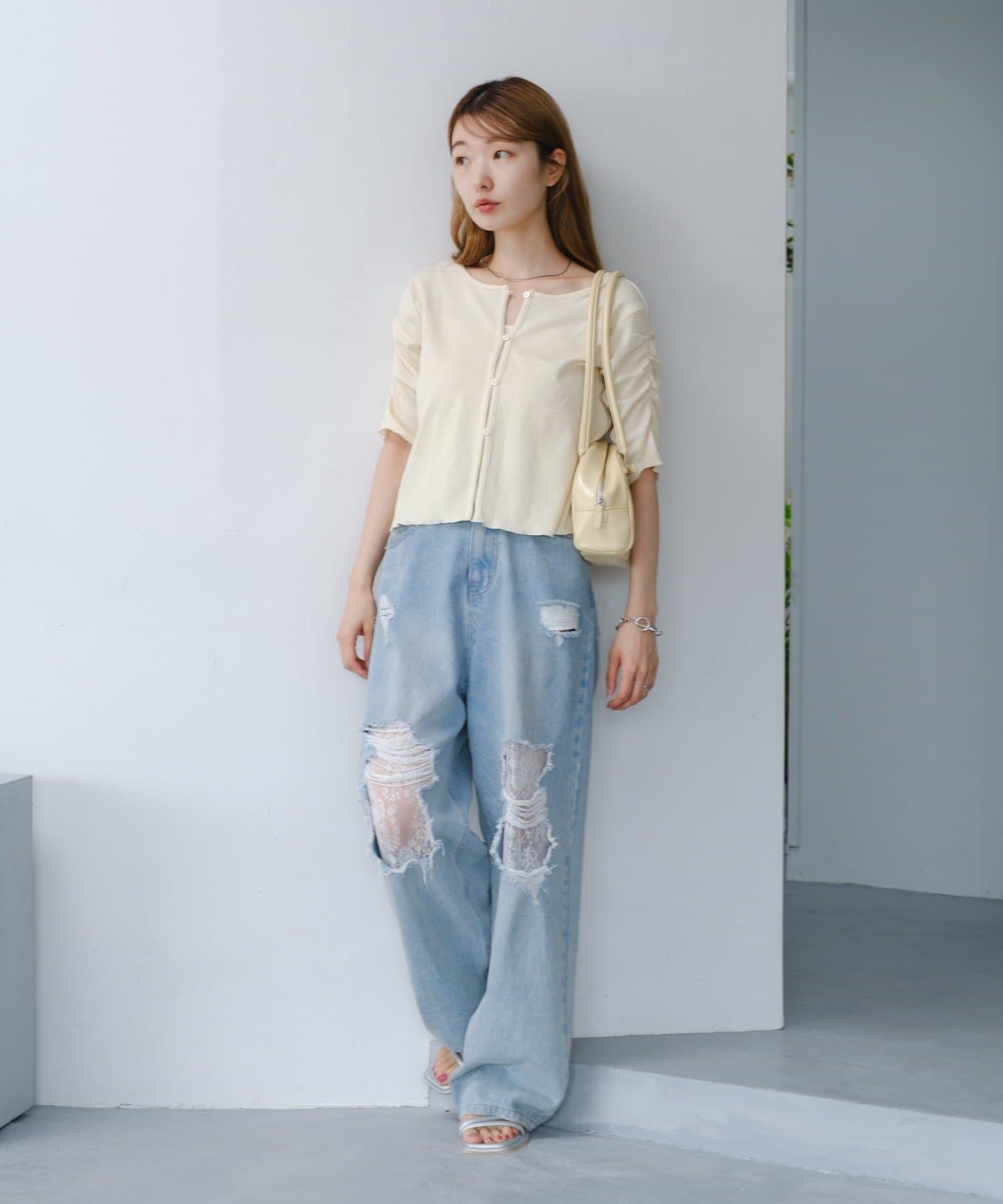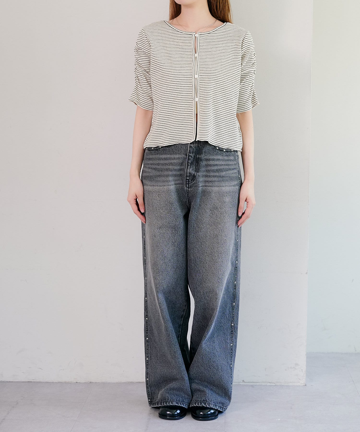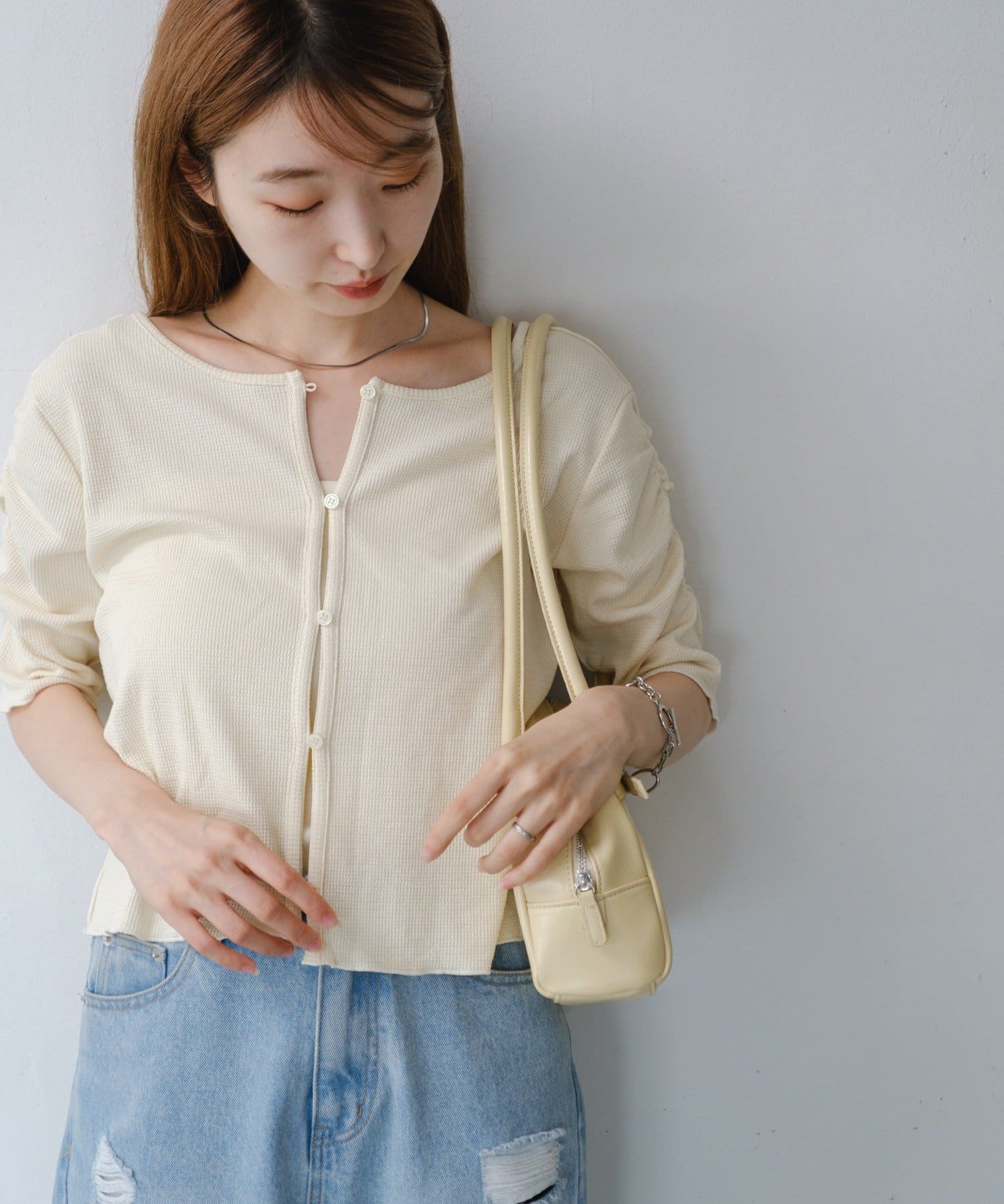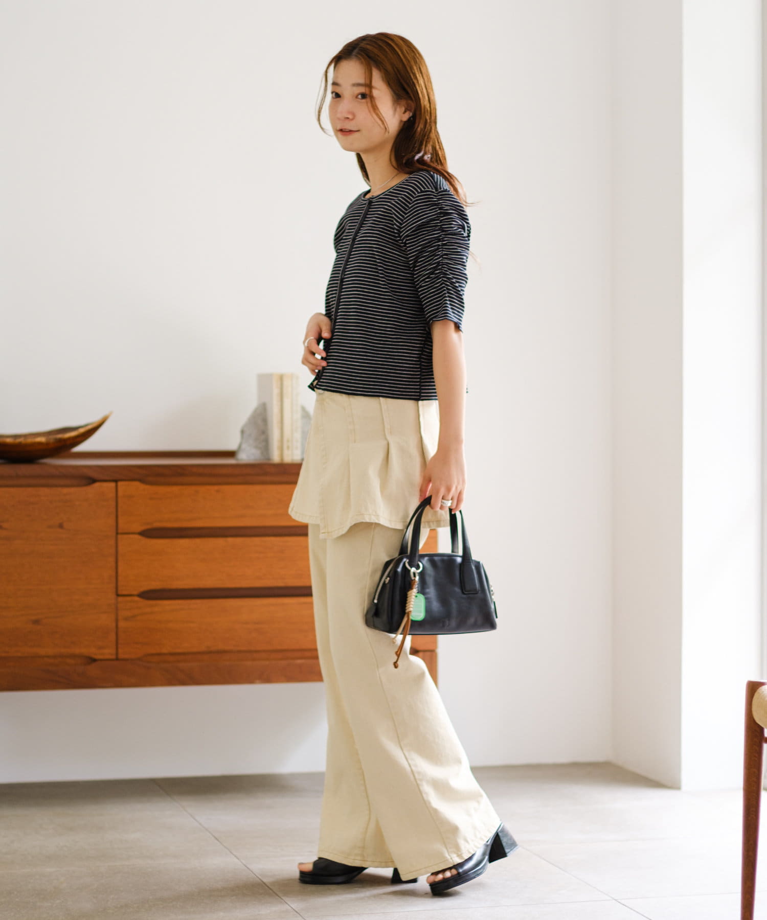コンパクトなデザインなので、ワイドなボトムとの相性が◎