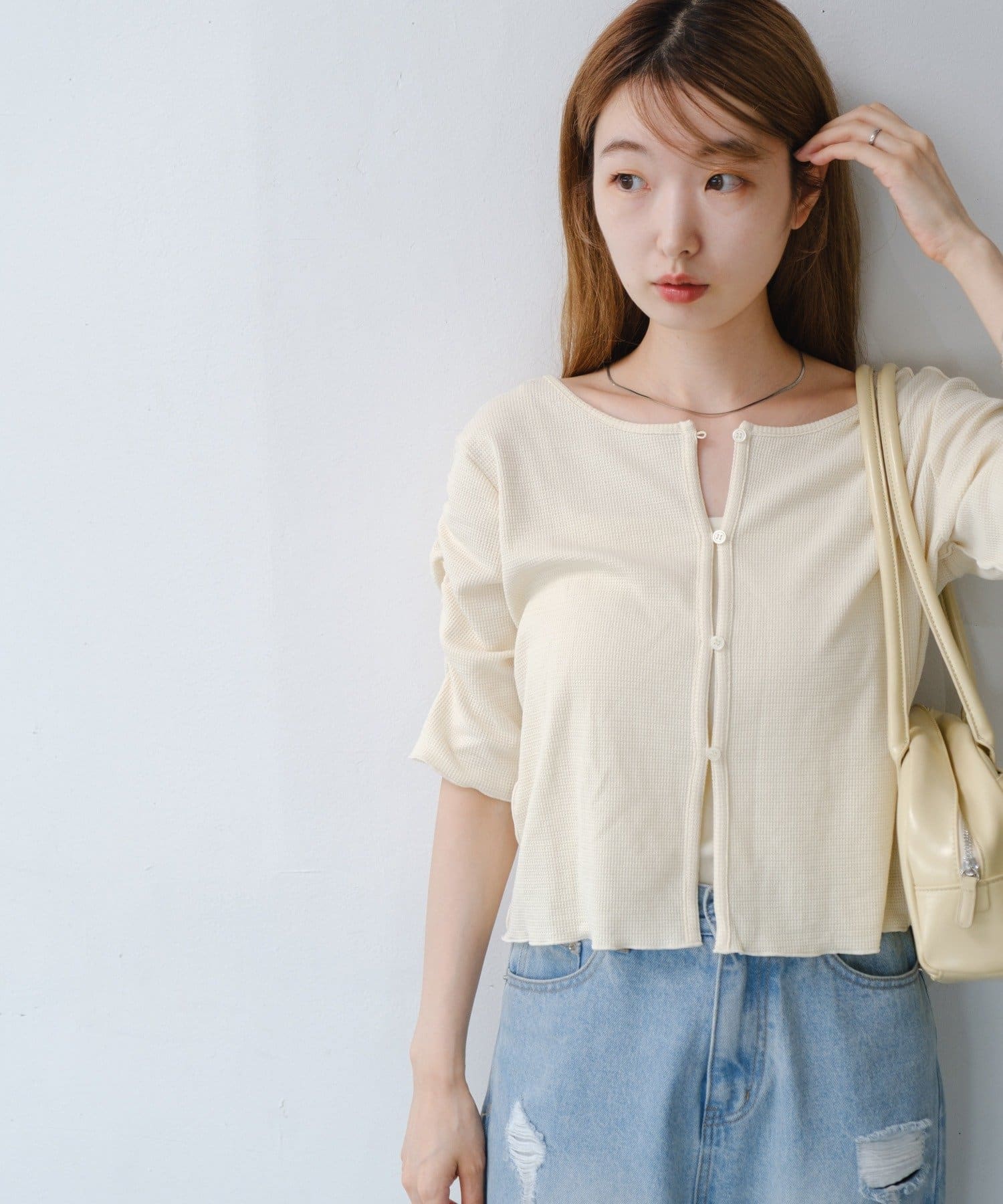 【Kastane】サーマルパフ半袖カーディガン