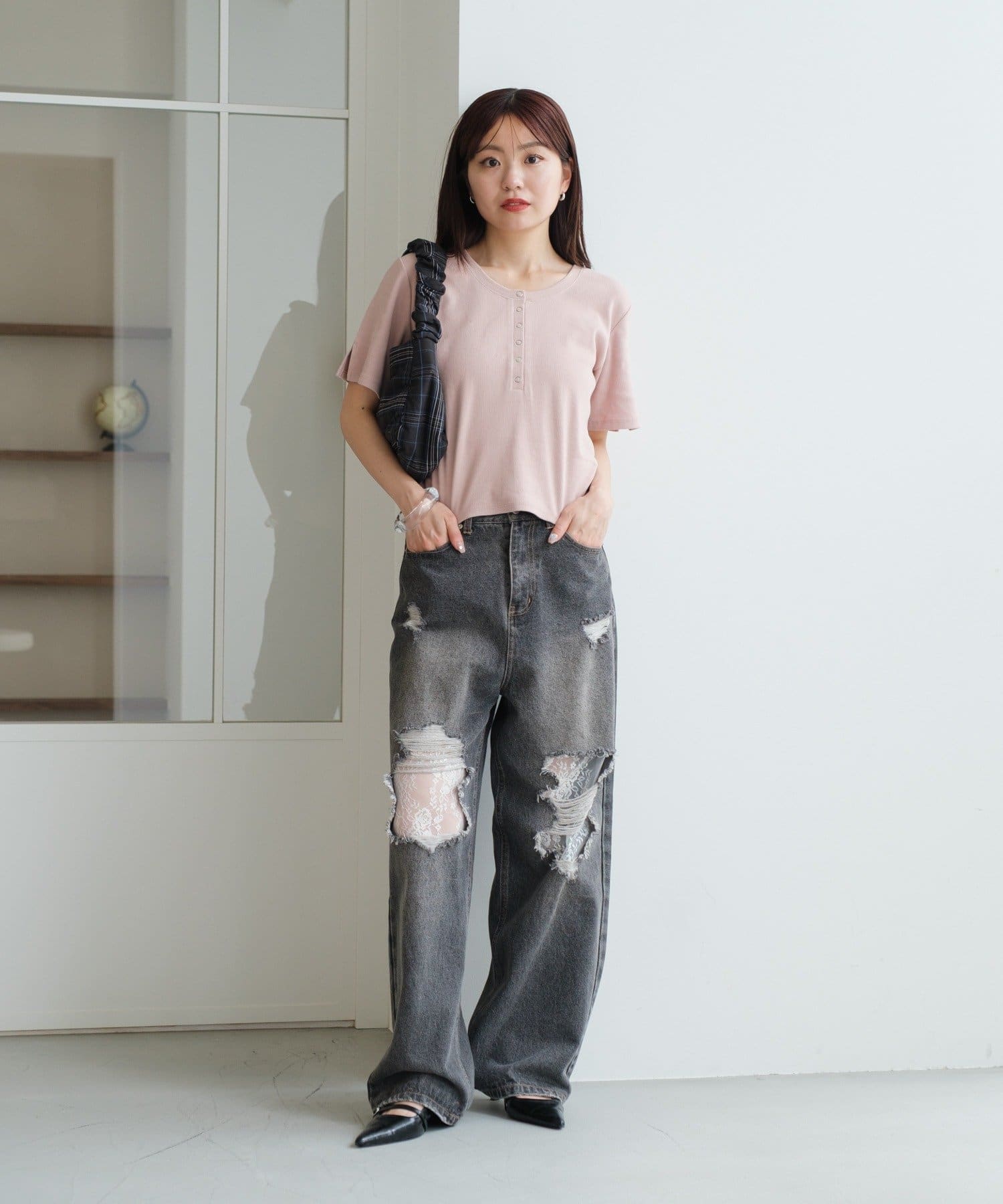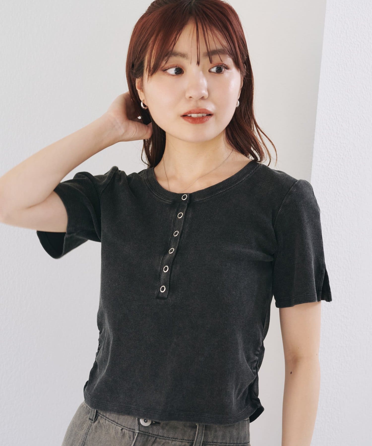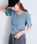 ナチュラルな色落ちが魅力のピグメント染めヘンリーネックTシャツ。