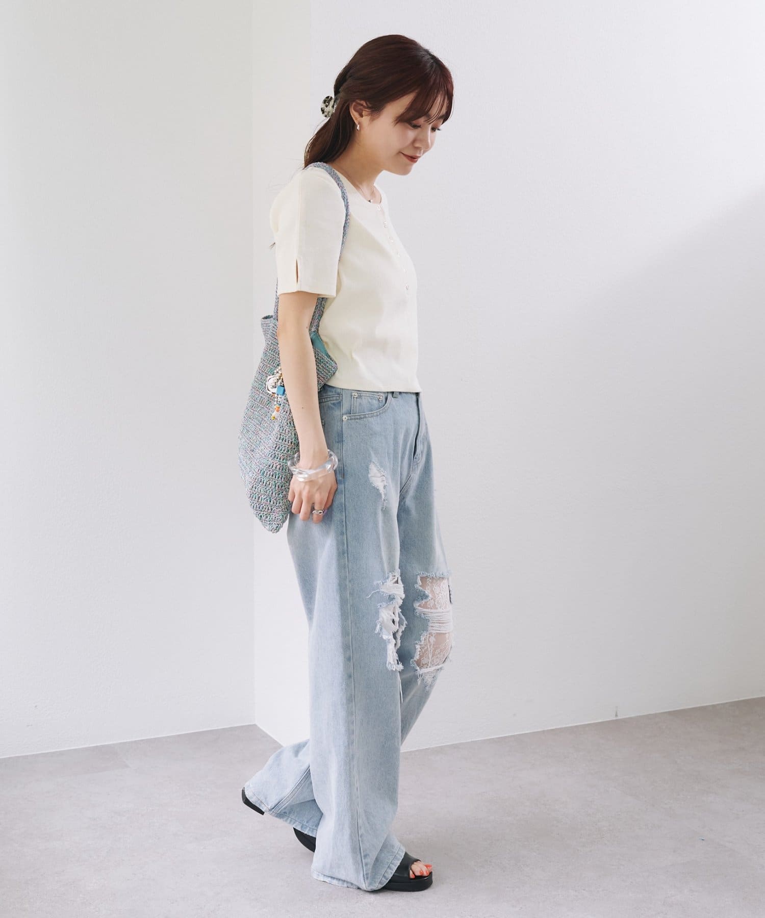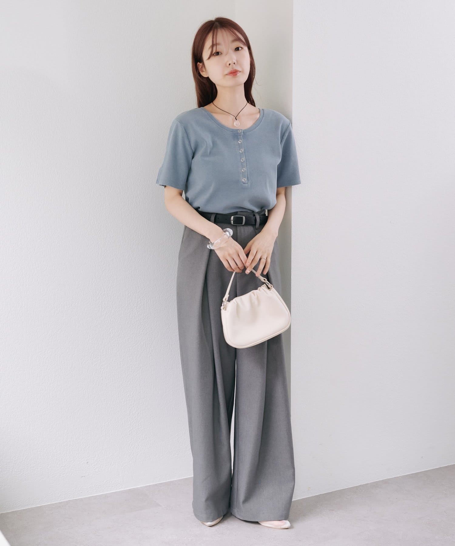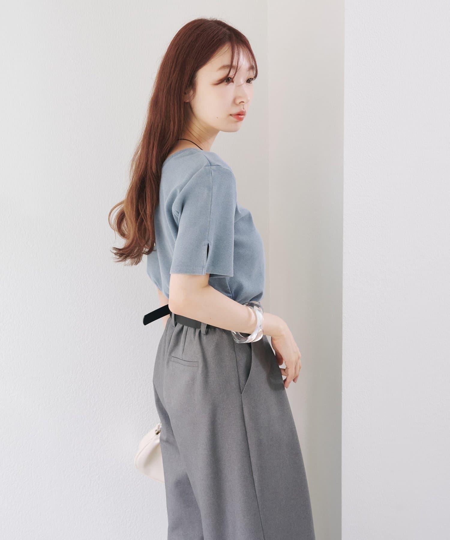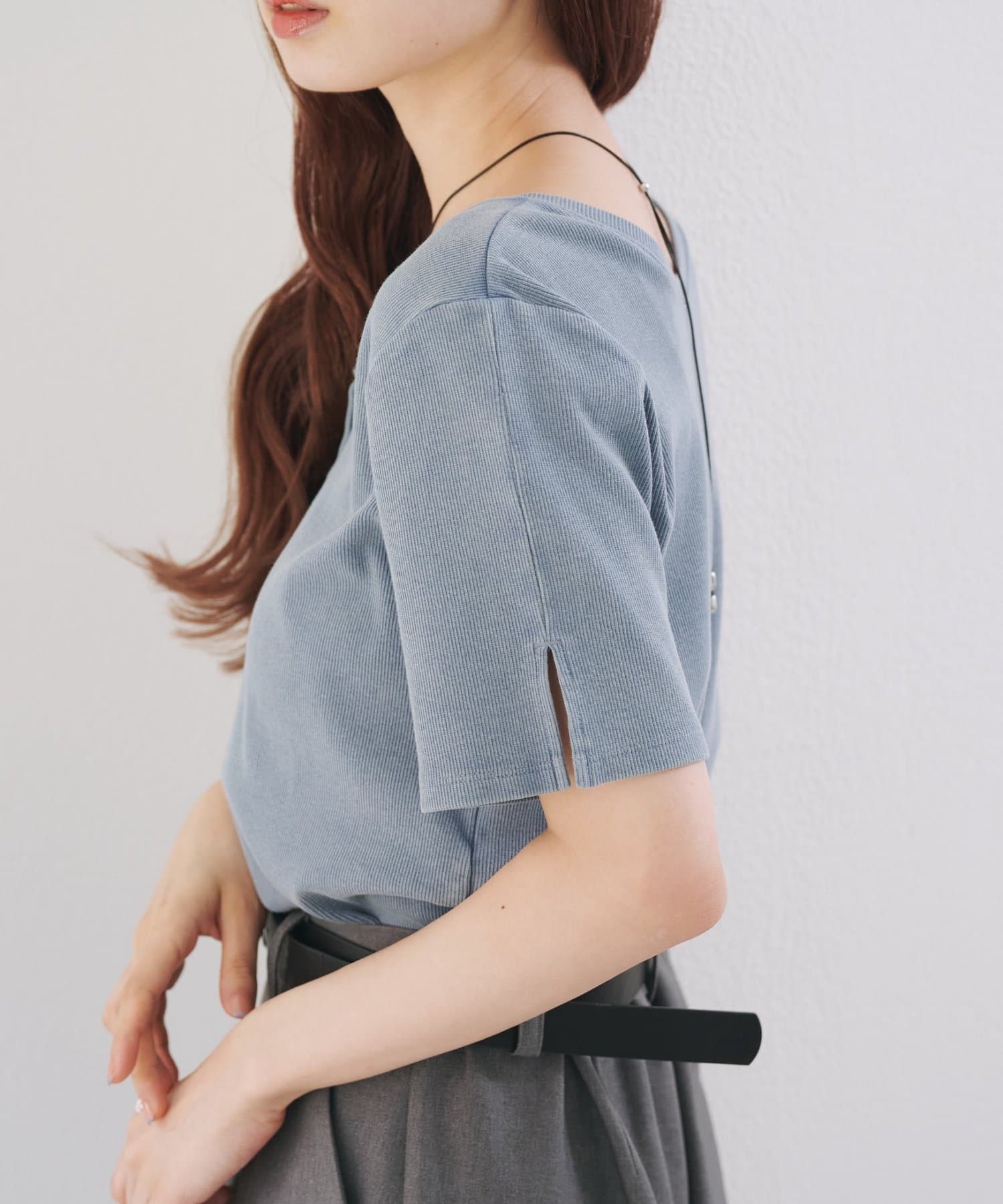 袖口にはさりげないスリット入りで、抜け感も演出。
