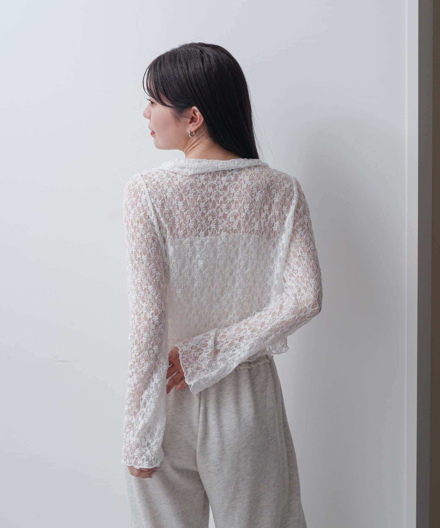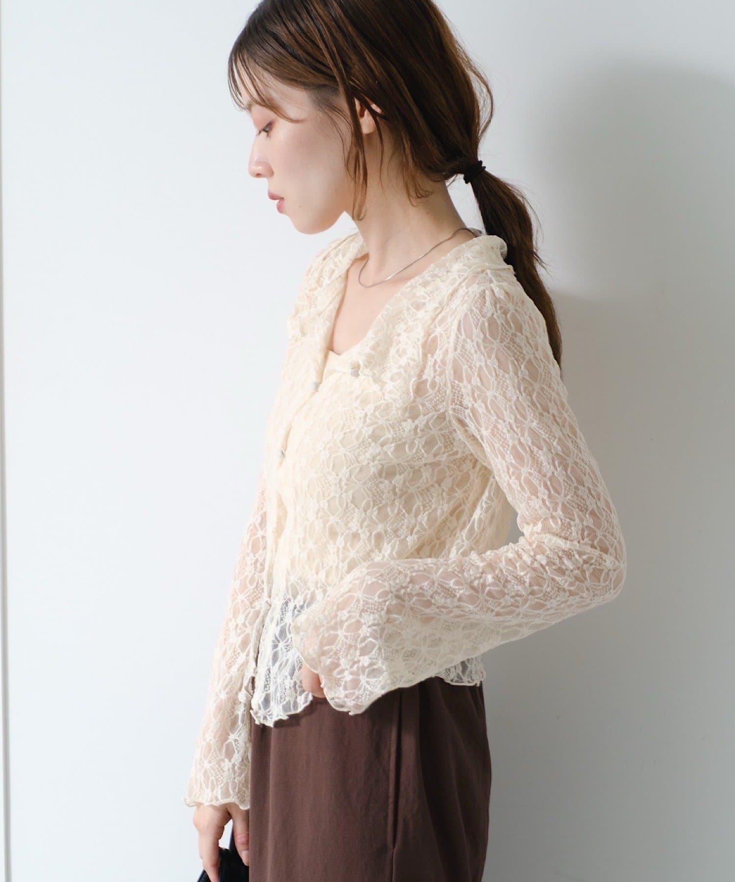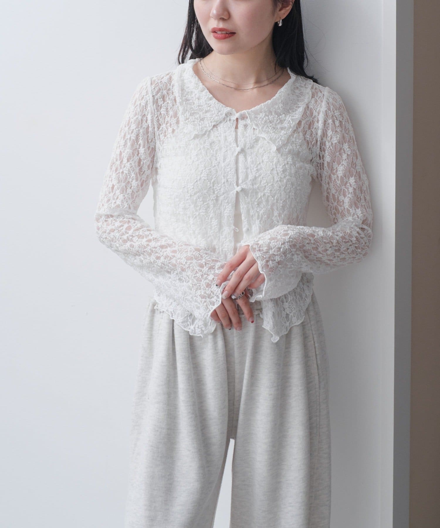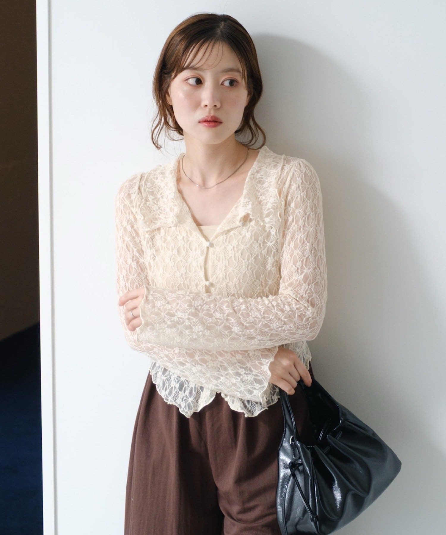 襟付きデザインがとても可愛らしく袖のレースのテクスチャーも上品で、1枚でコーデの主役になるアイテムです🌻
