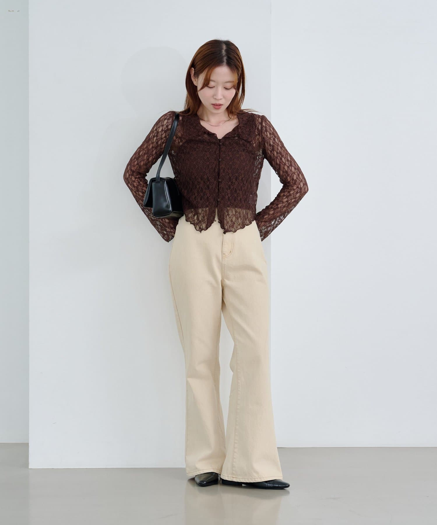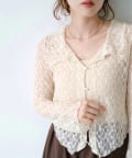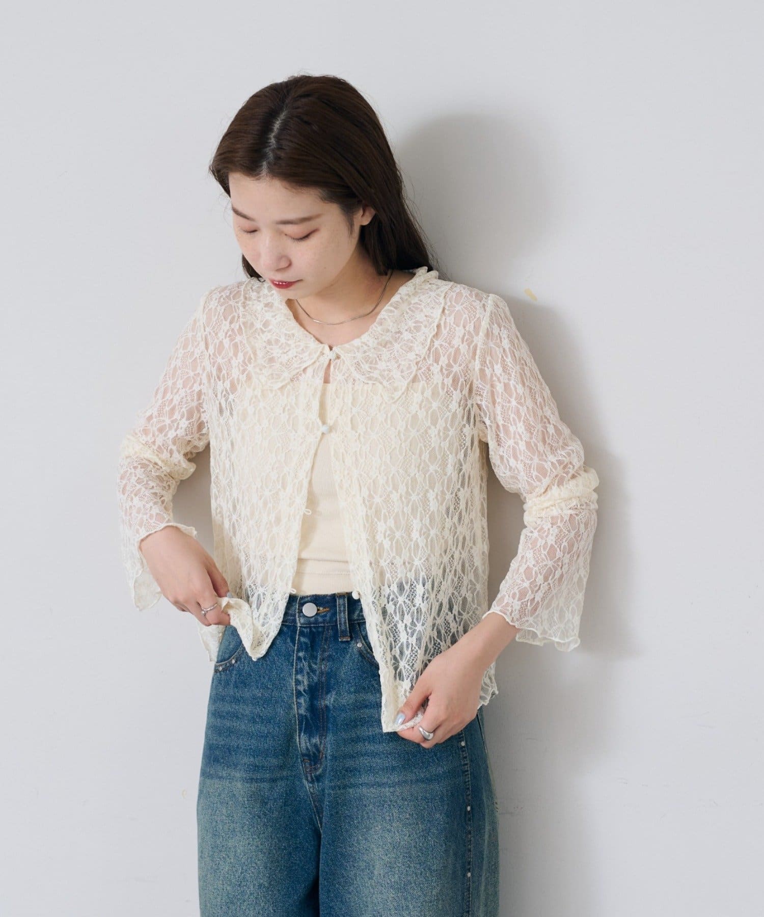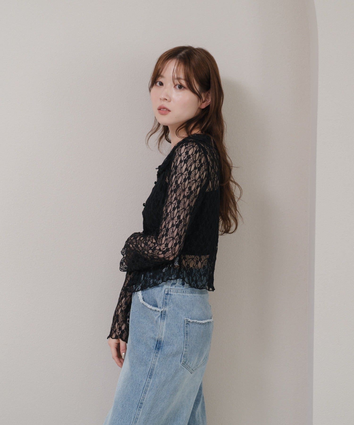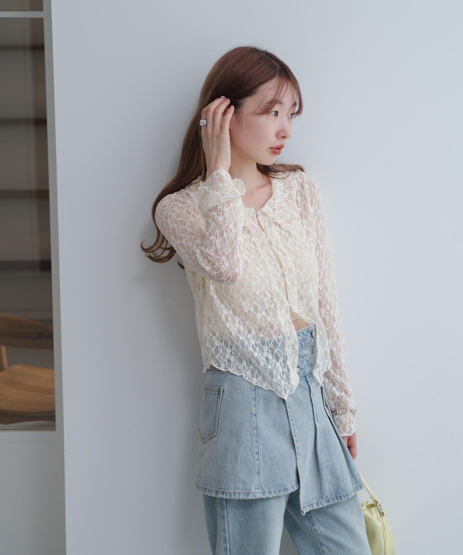 襟付きデザインがとても可愛らしく袖のレースのテクスチャーも上品で、1枚でコーデの主役になるアイテムです🌻
