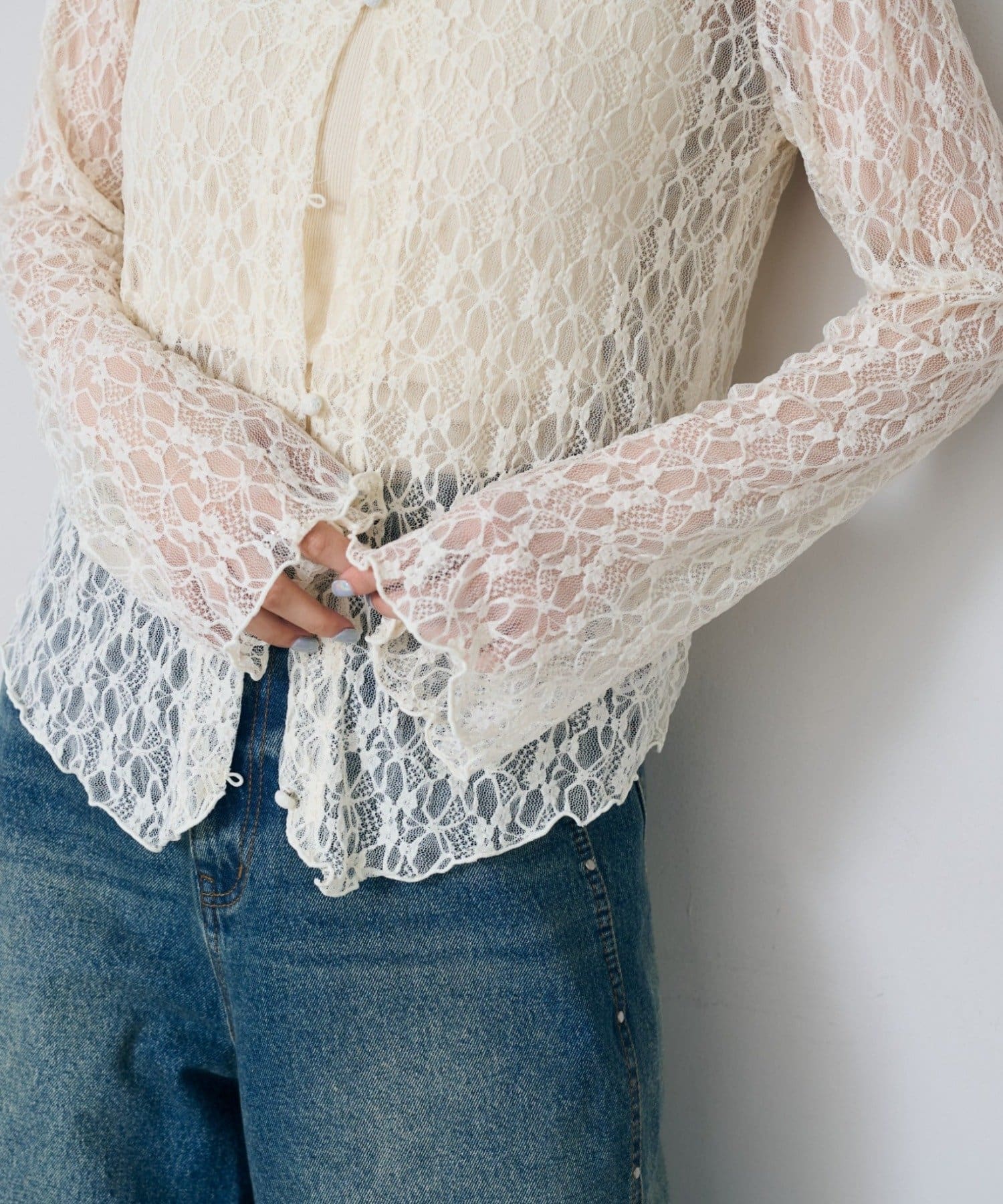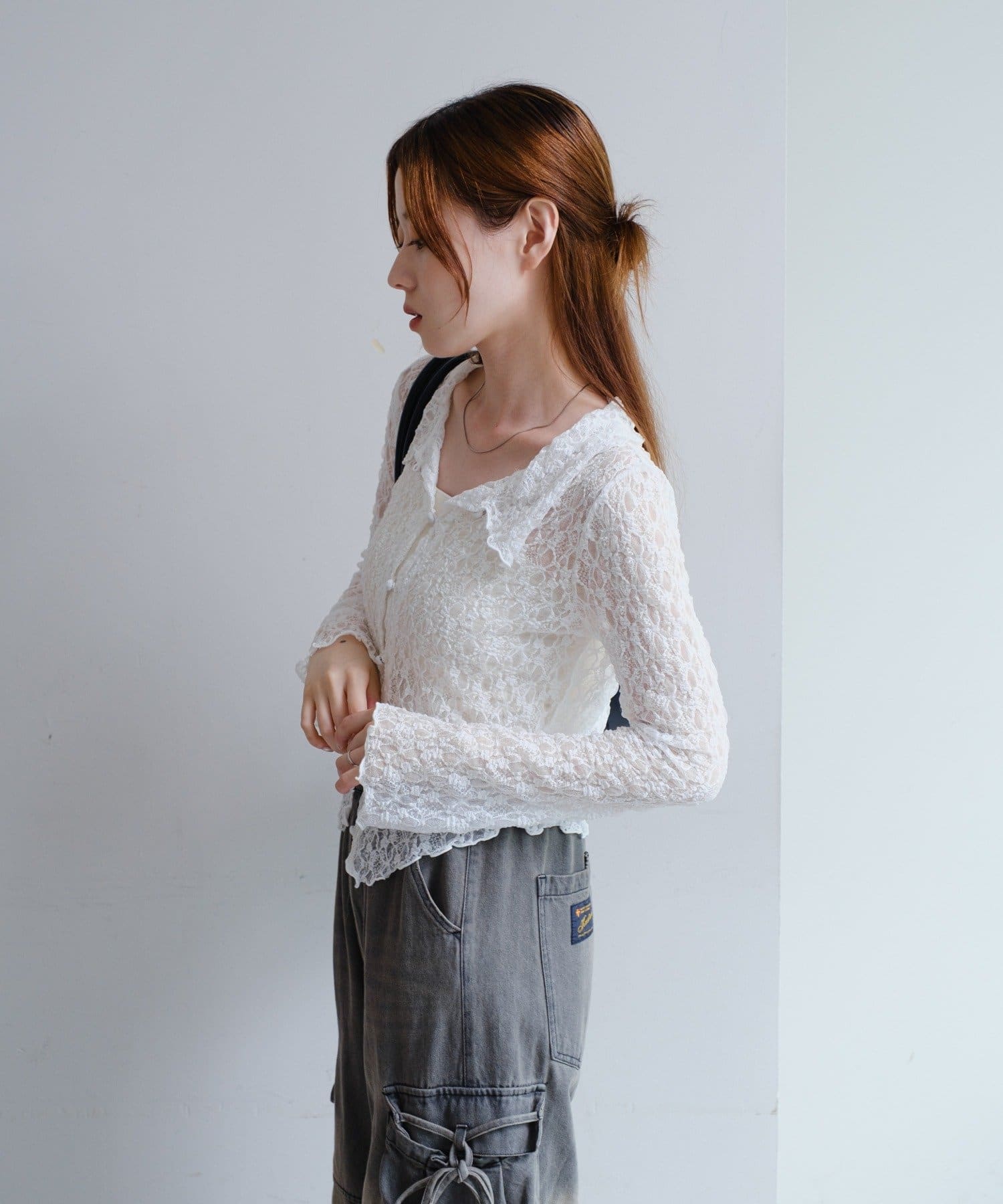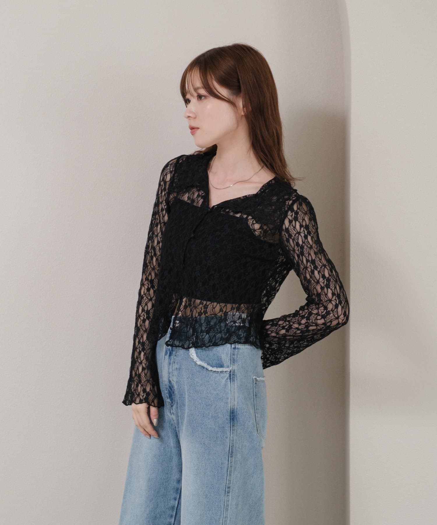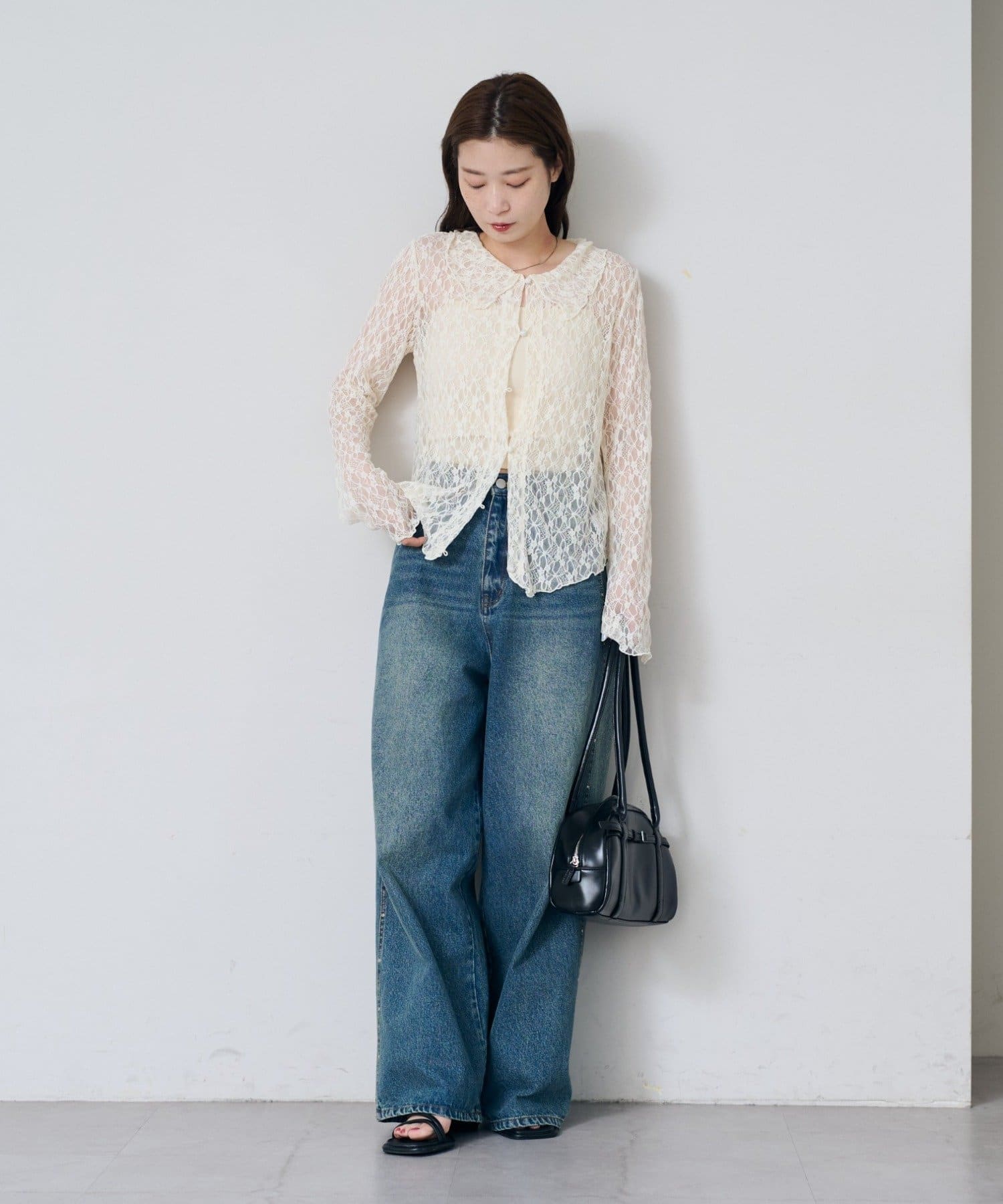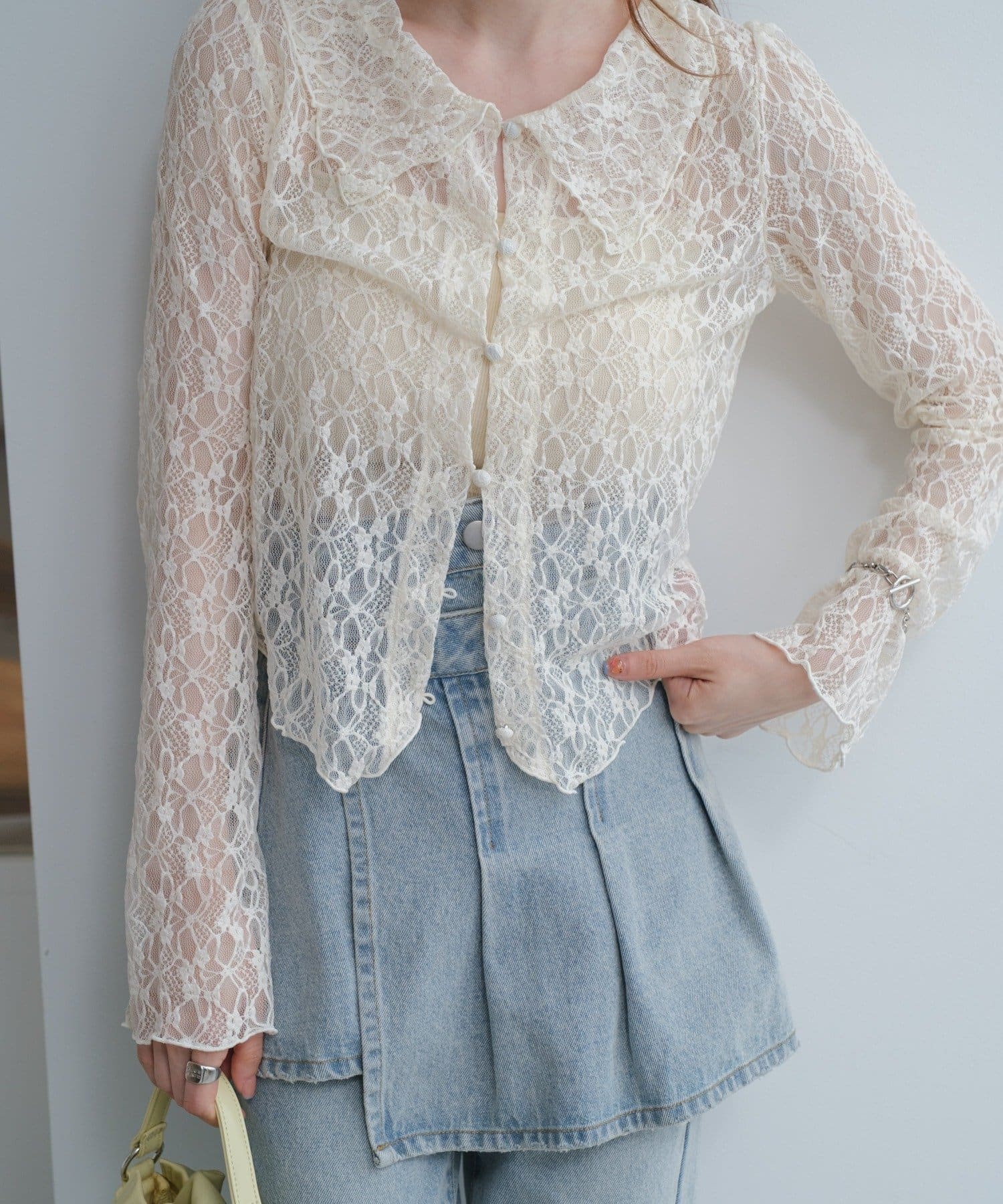 襟付きデザインがとても可愛らしく袖のレースのテクスチャーも上品で、1枚でコーデの主役になるアイテムです🌻
